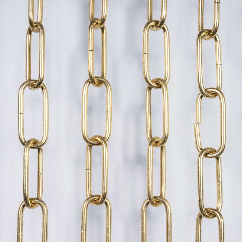 • Brass gallery hook with brass chain and black covered flex.