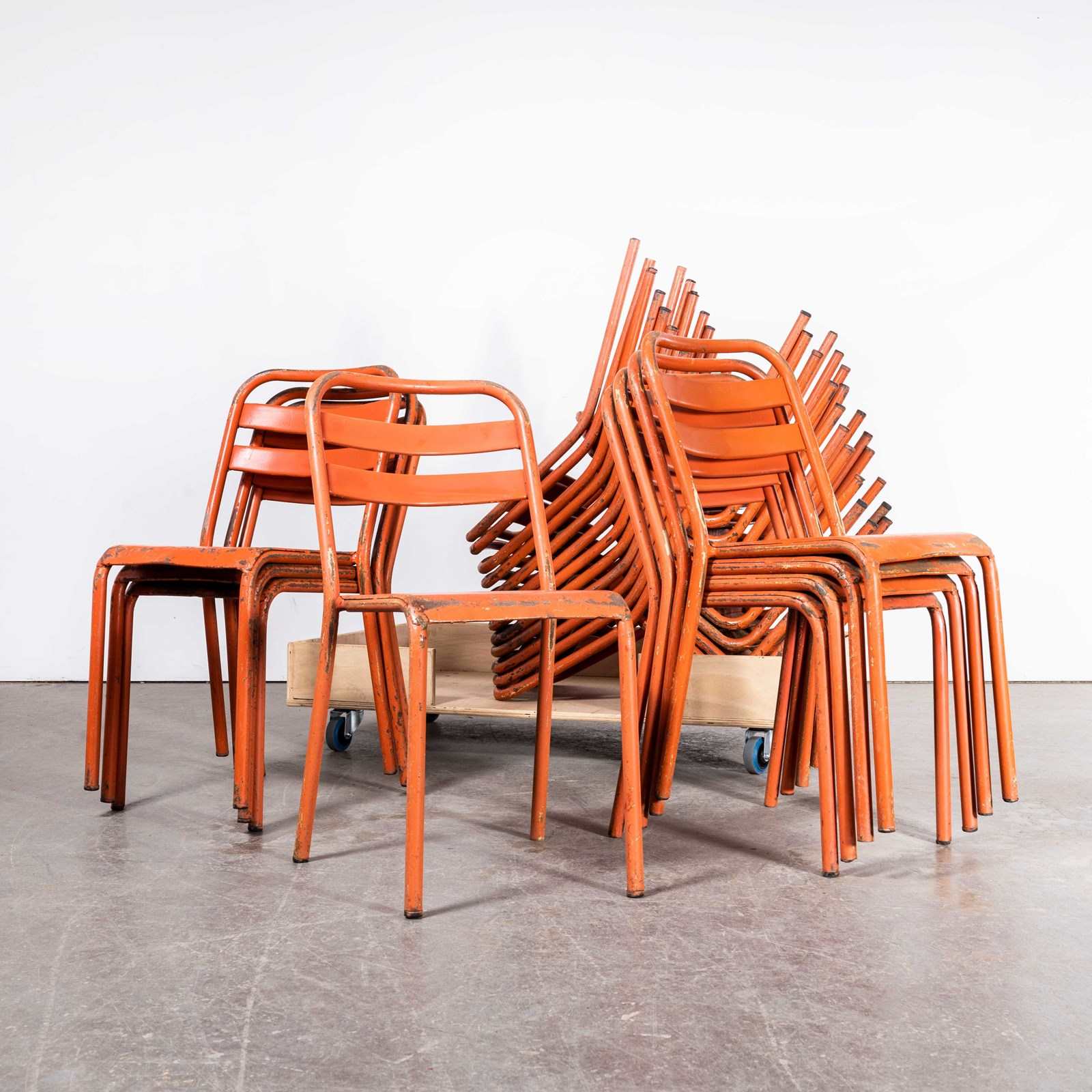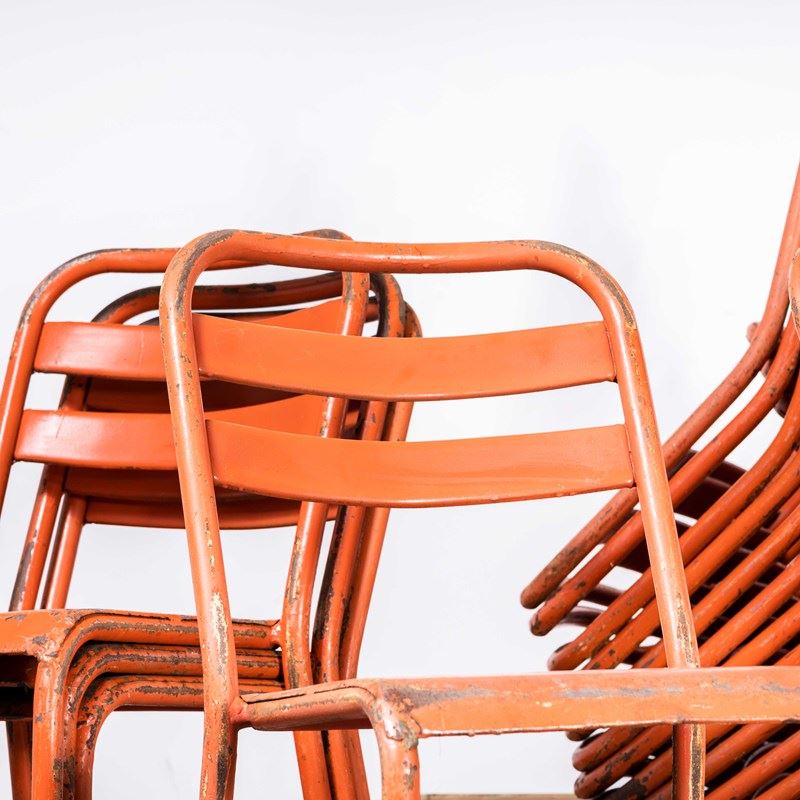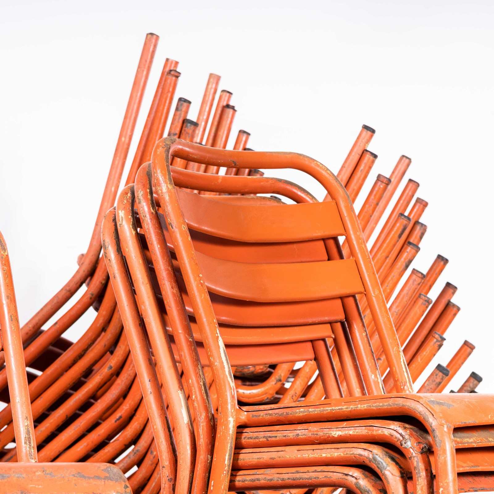 1960'S Original Red French Tolix T2 Metal Outdoor Dining Chairs - Various Quanti