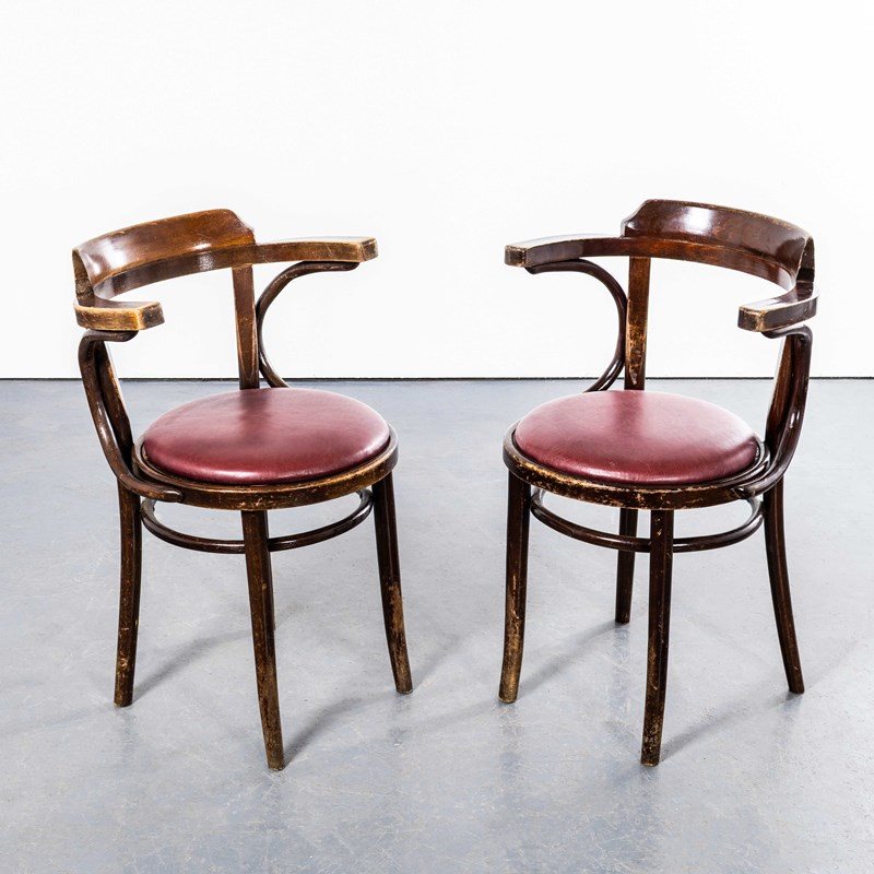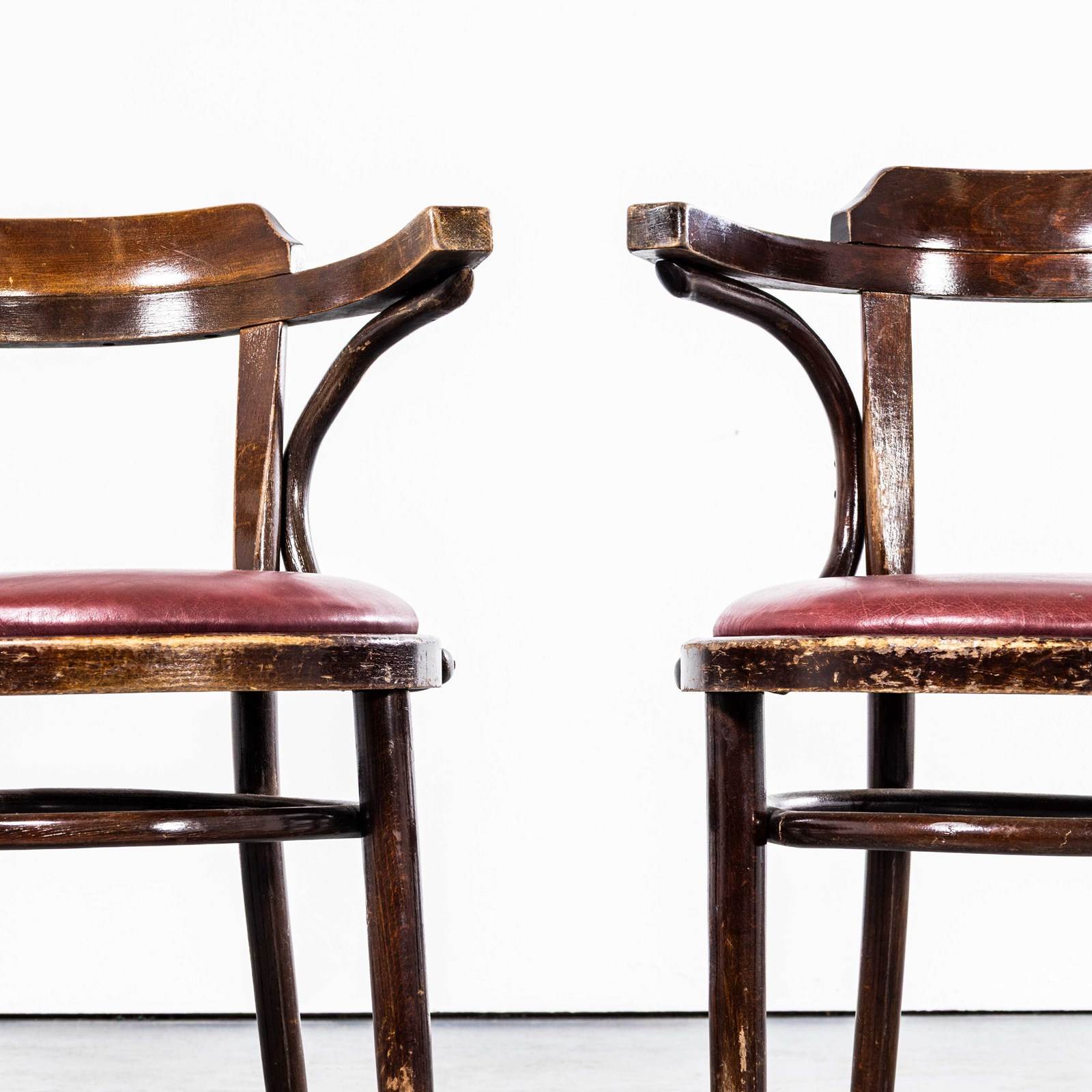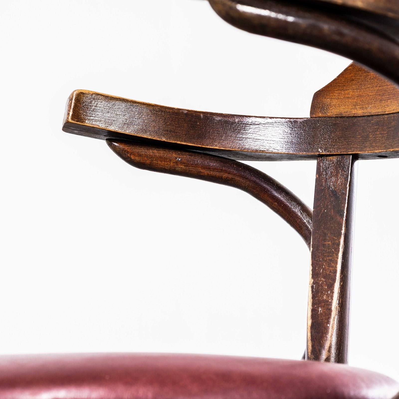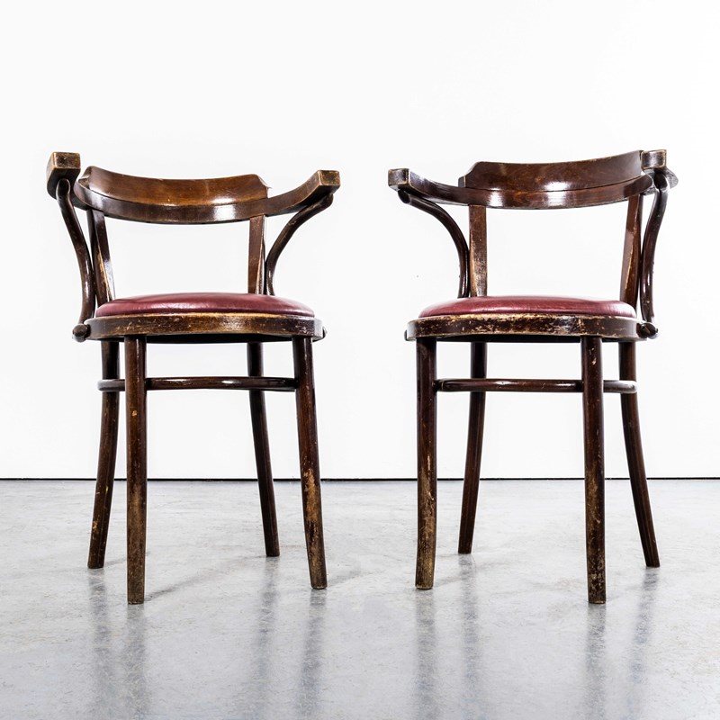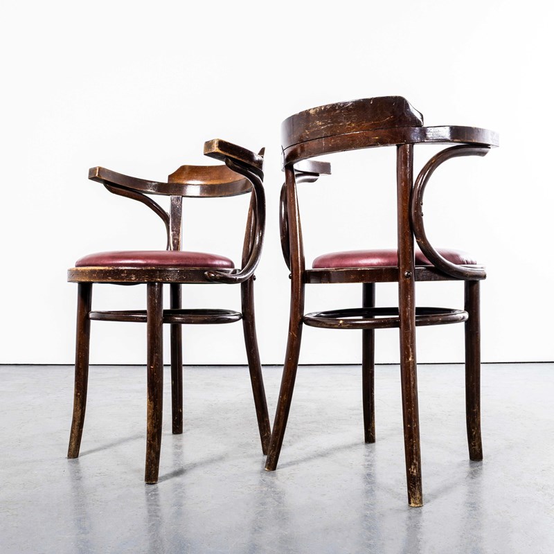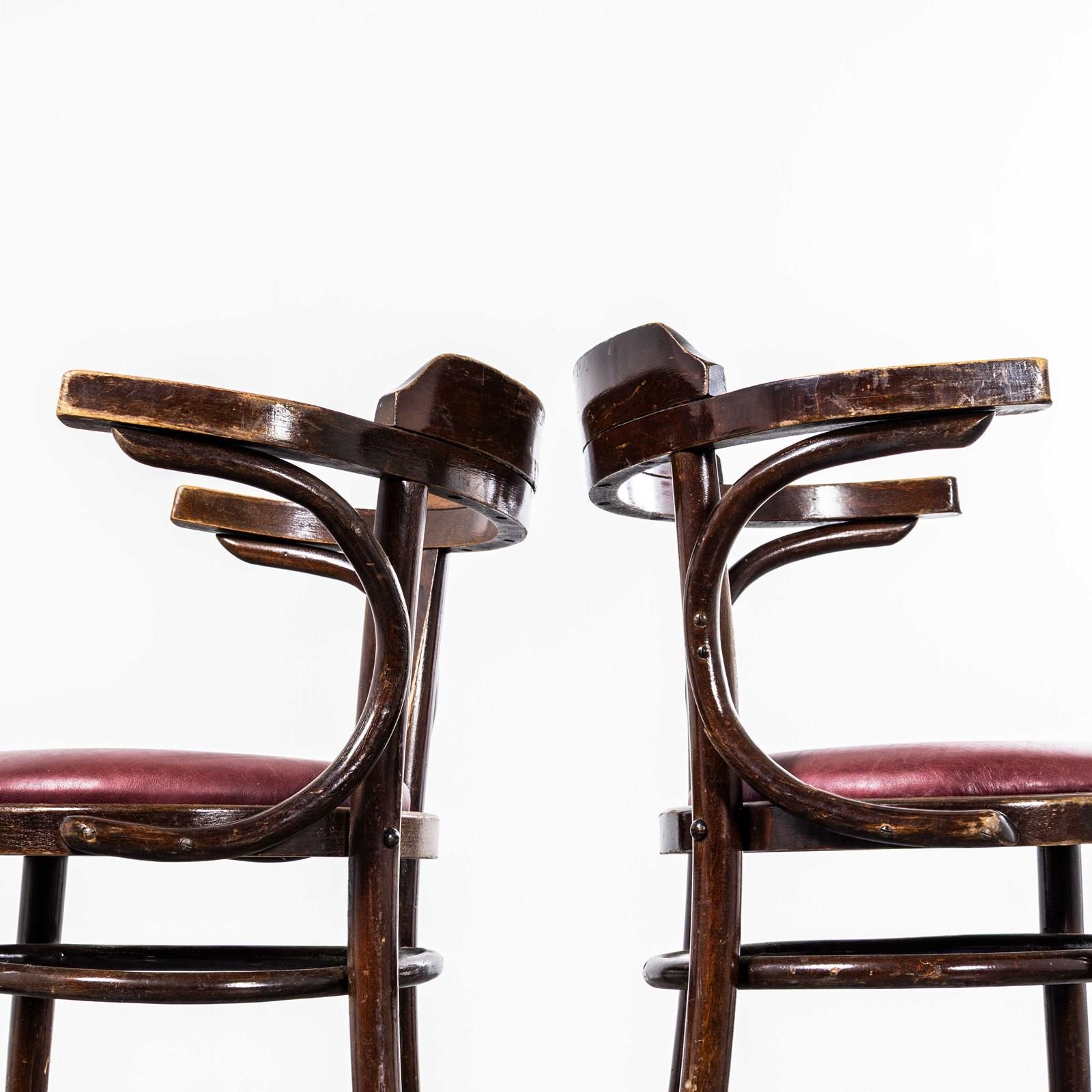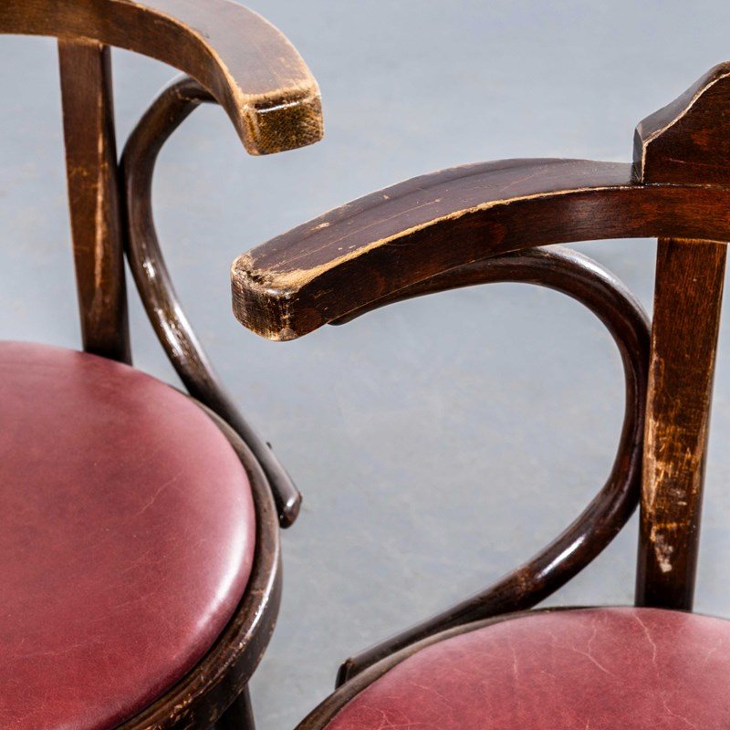 1960'S Original Vintage Bentwood Dining Armchairs - Open Back With Red Padded Se