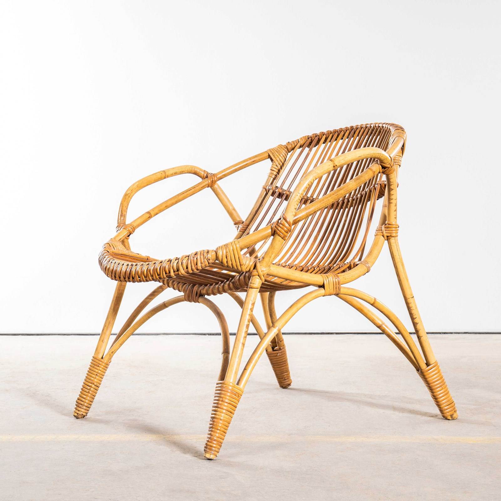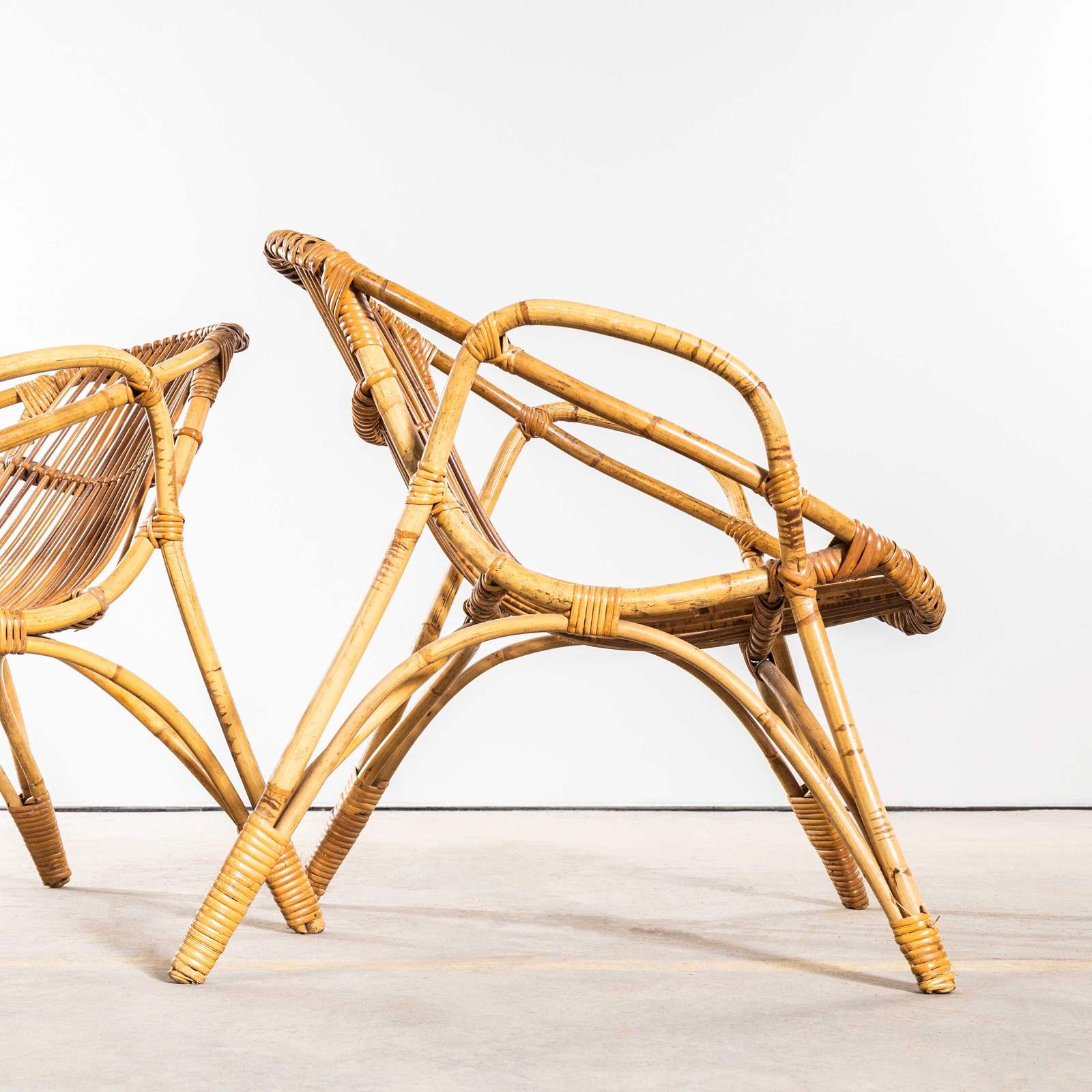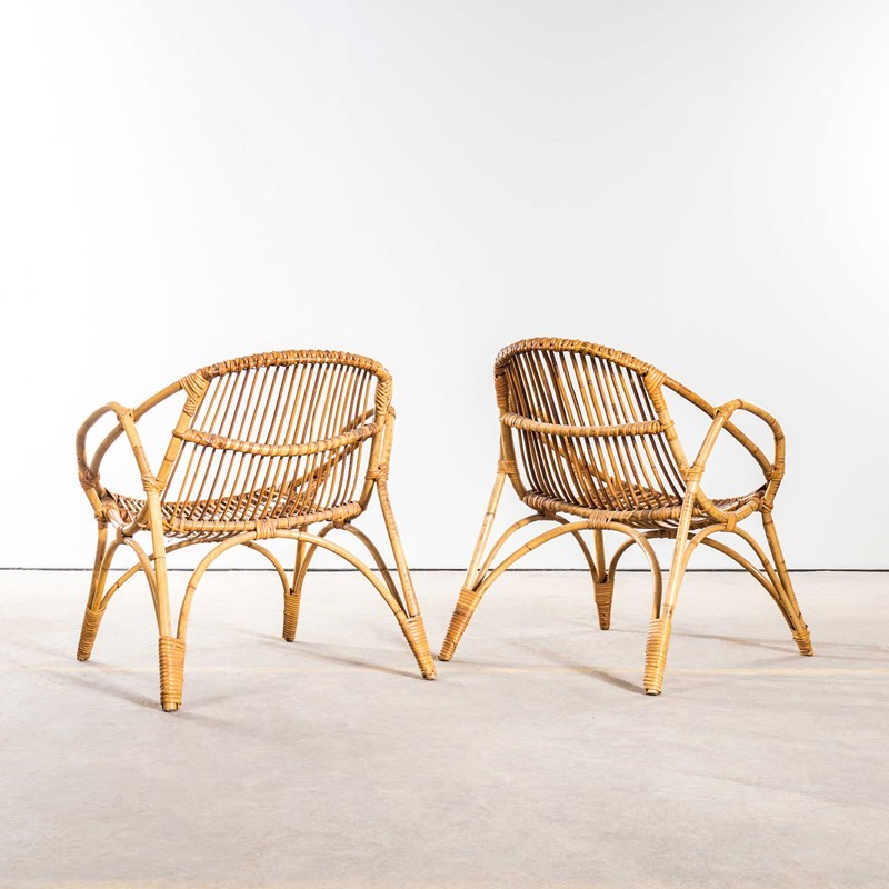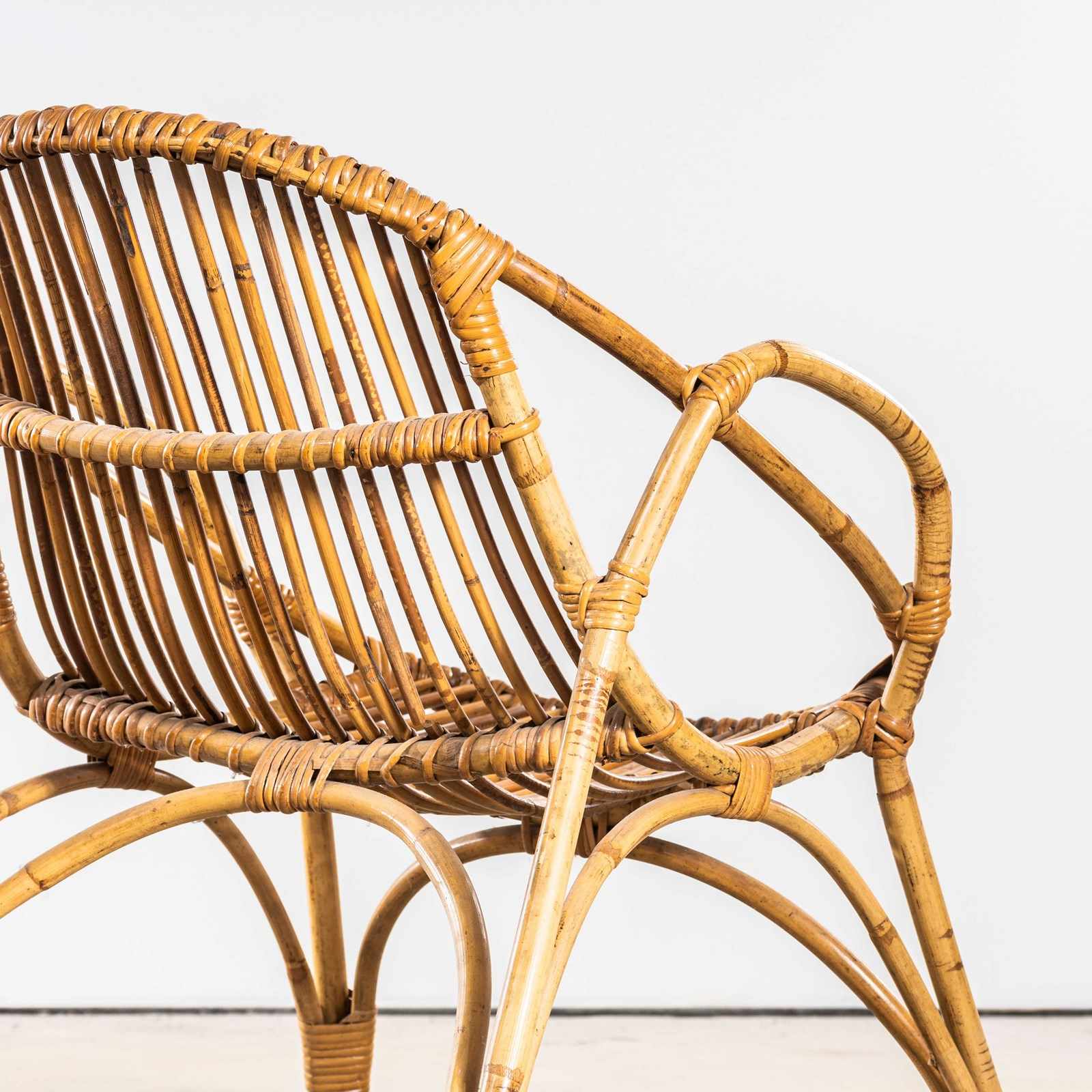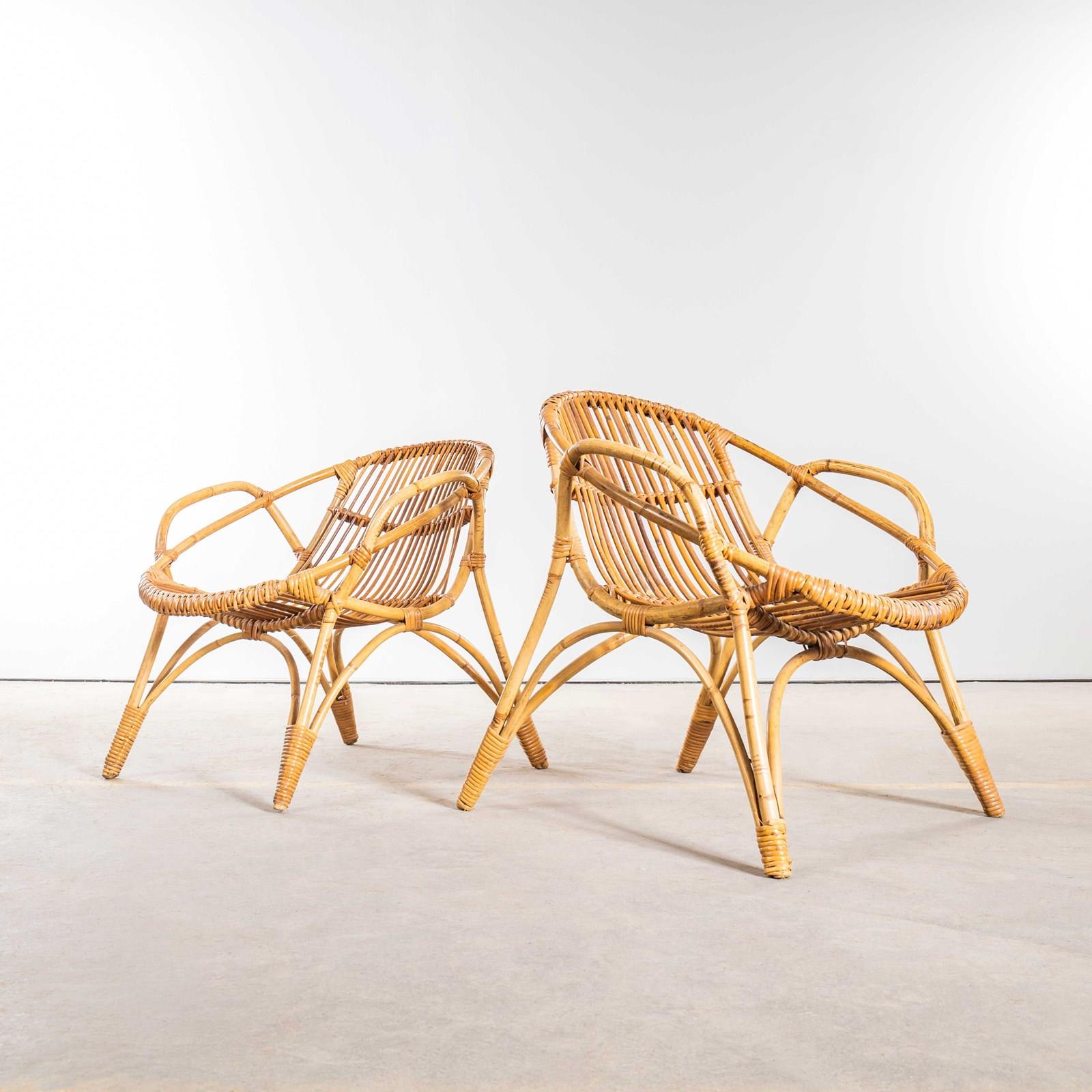 Good simple handmade French chairs from the sixties in very good original condition with superb swooping rattan frames. Listing is for the pair.
