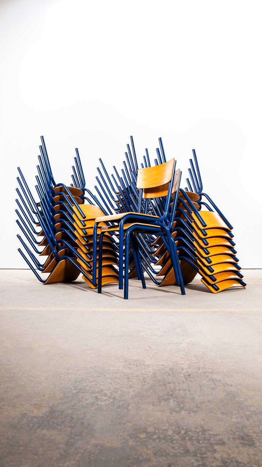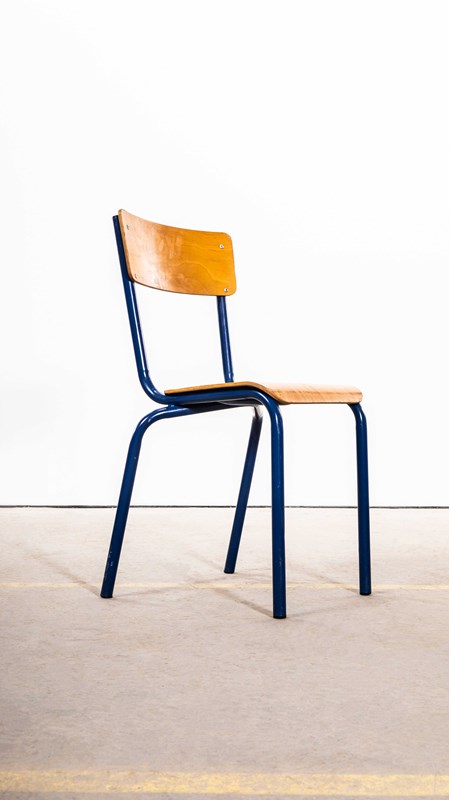One of our most favourite chairs, in 1947 Robert Muller and Gaston Cavaillon created the company that went on to develop arguably the most famous French school chair. Sadly the company no longer exists but vintage chairs can still be found, beautifully made with a strong tubular frame with birch seats and back inserts. Ours date from the 1960’s and are in excellent condition with vivid sea blue frames. We service and rejuvenate all our chairs individually before they leave our workshop and we deliver chairs of excellent quality.