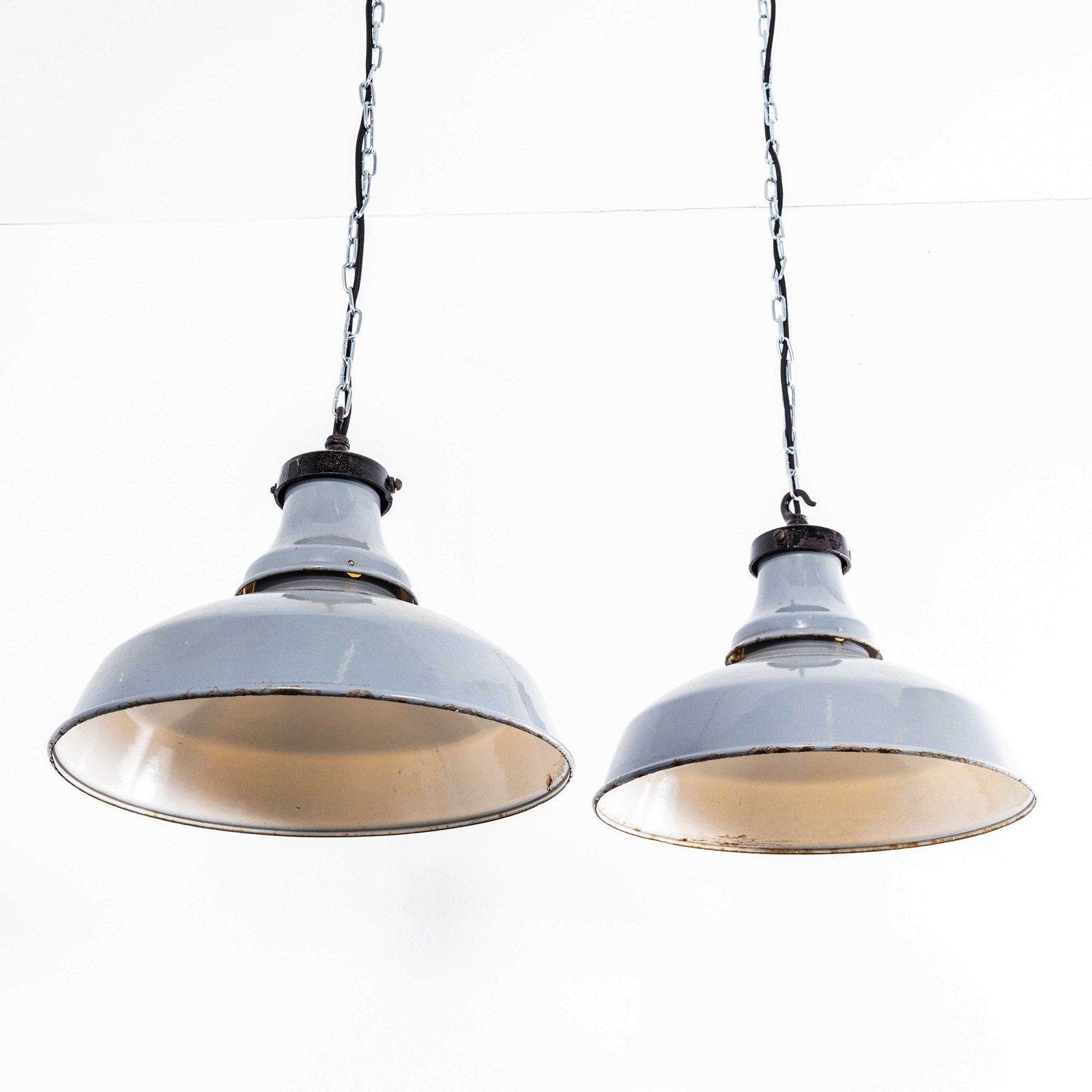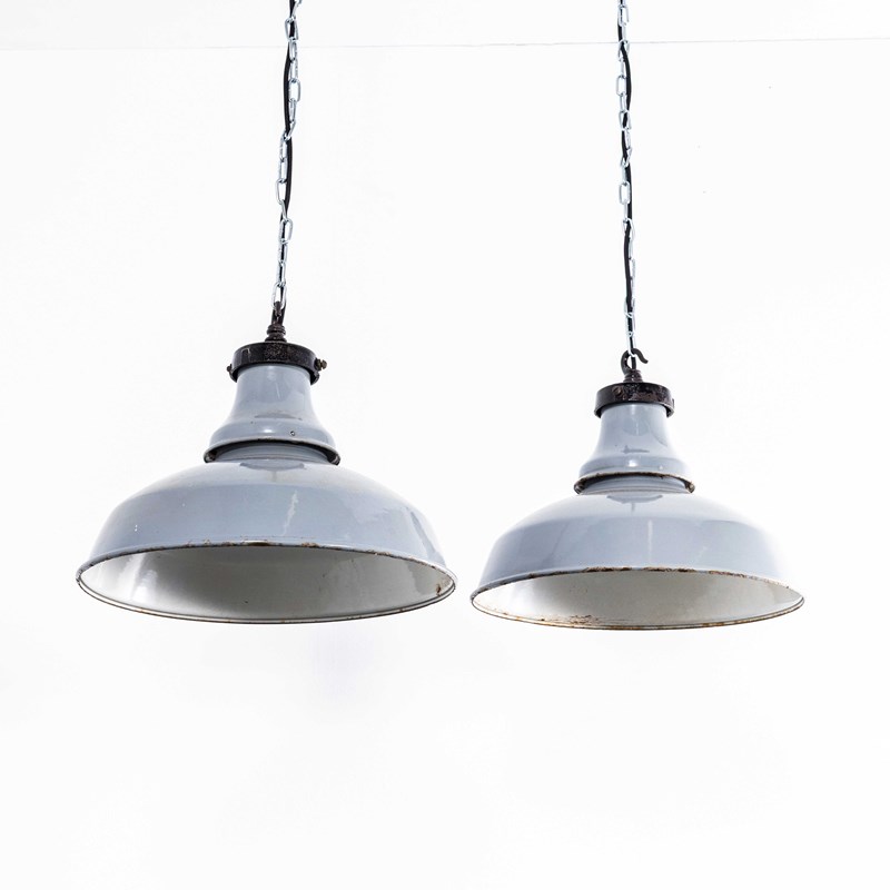 1960’S Shallow Domed GEC Enamelled Pendant Lamps – 16 Inch – Pair