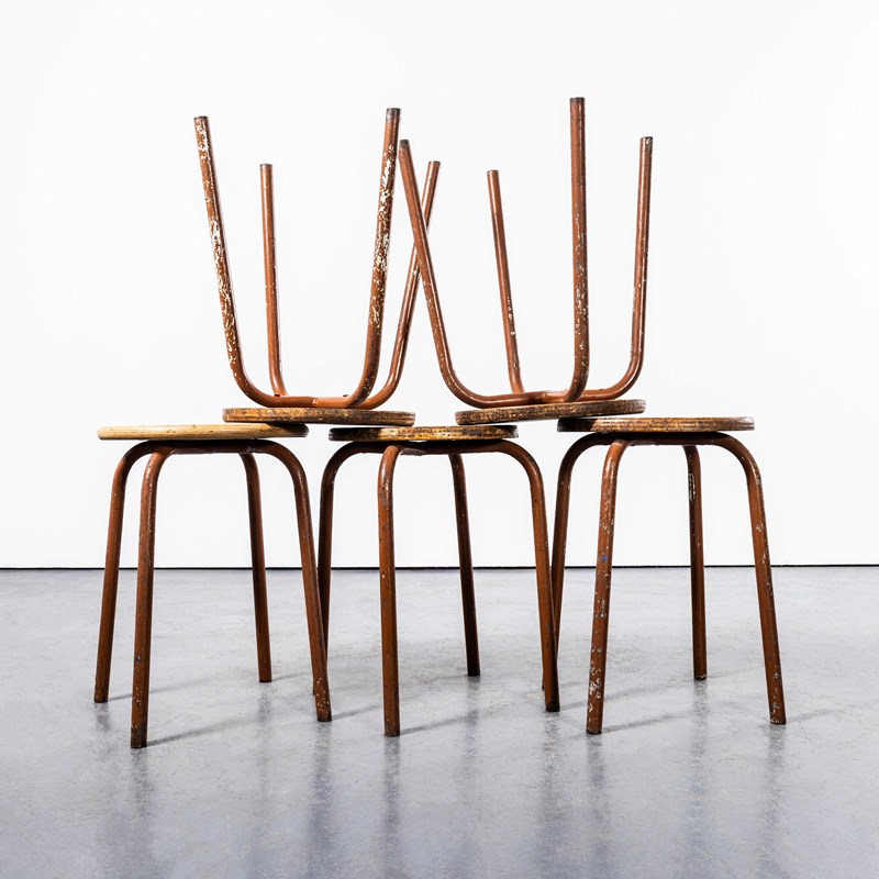 1960'S Simple French Stacking Muddy Brown Stools - Set Of Five