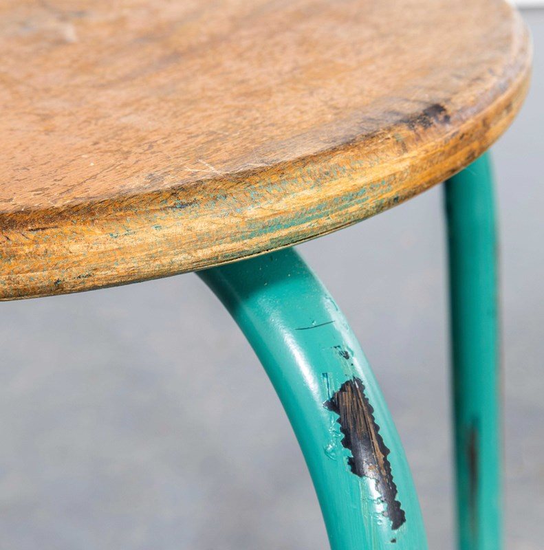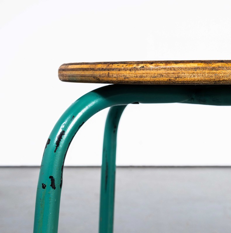 French school stool, solid beech laminated top with strong metal base. Original stool in great condition. Seat Height 46cm.