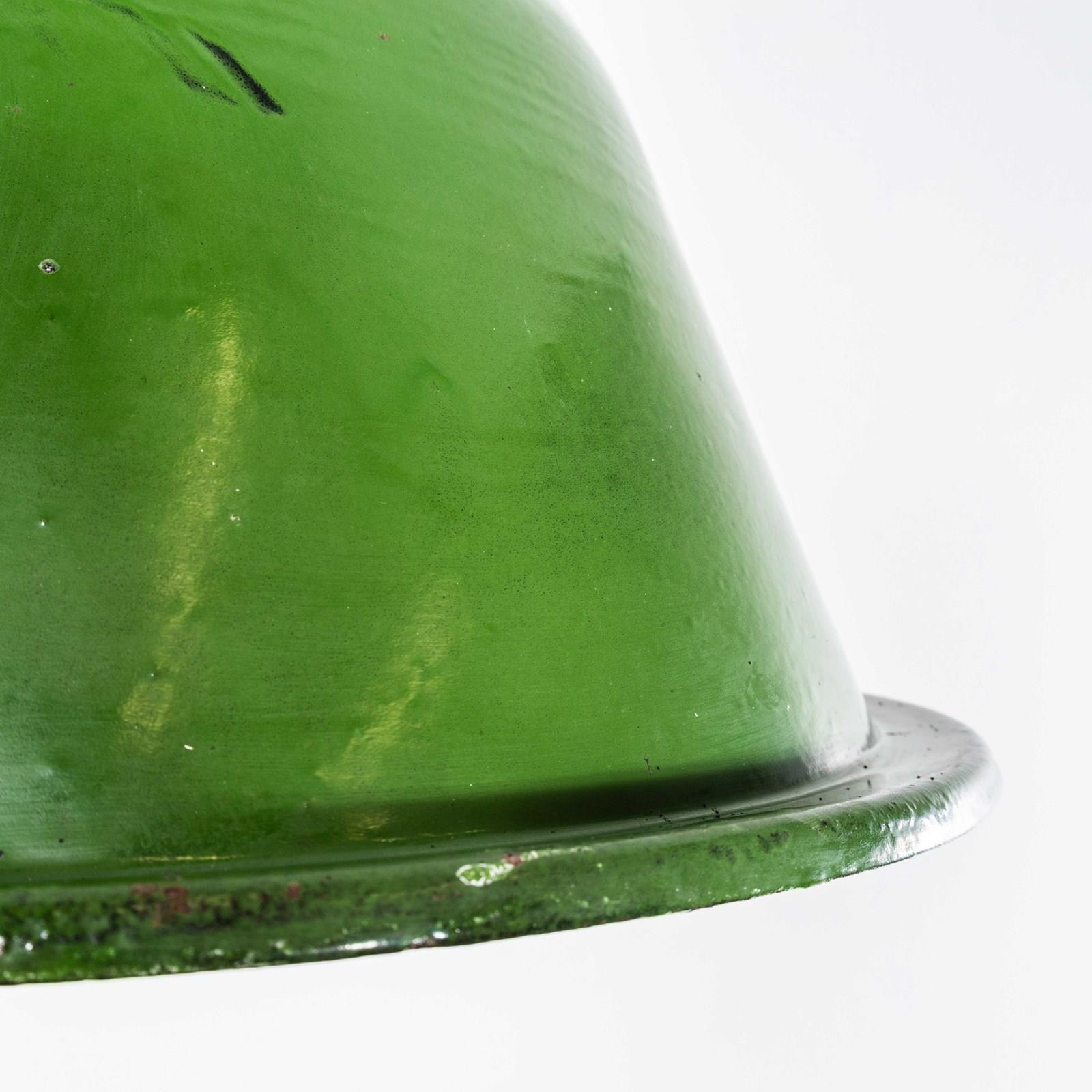 1960’s Very Large Green Enamel Industrial Pendant Lamps.