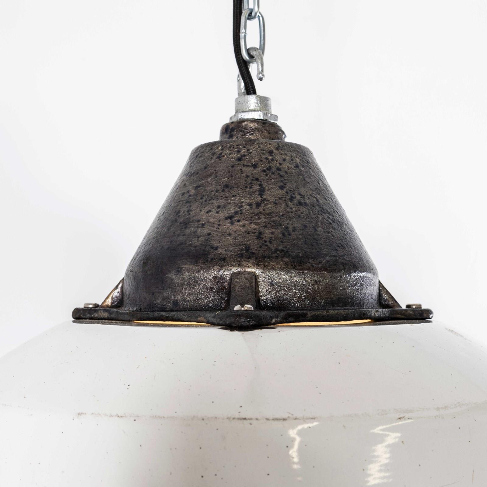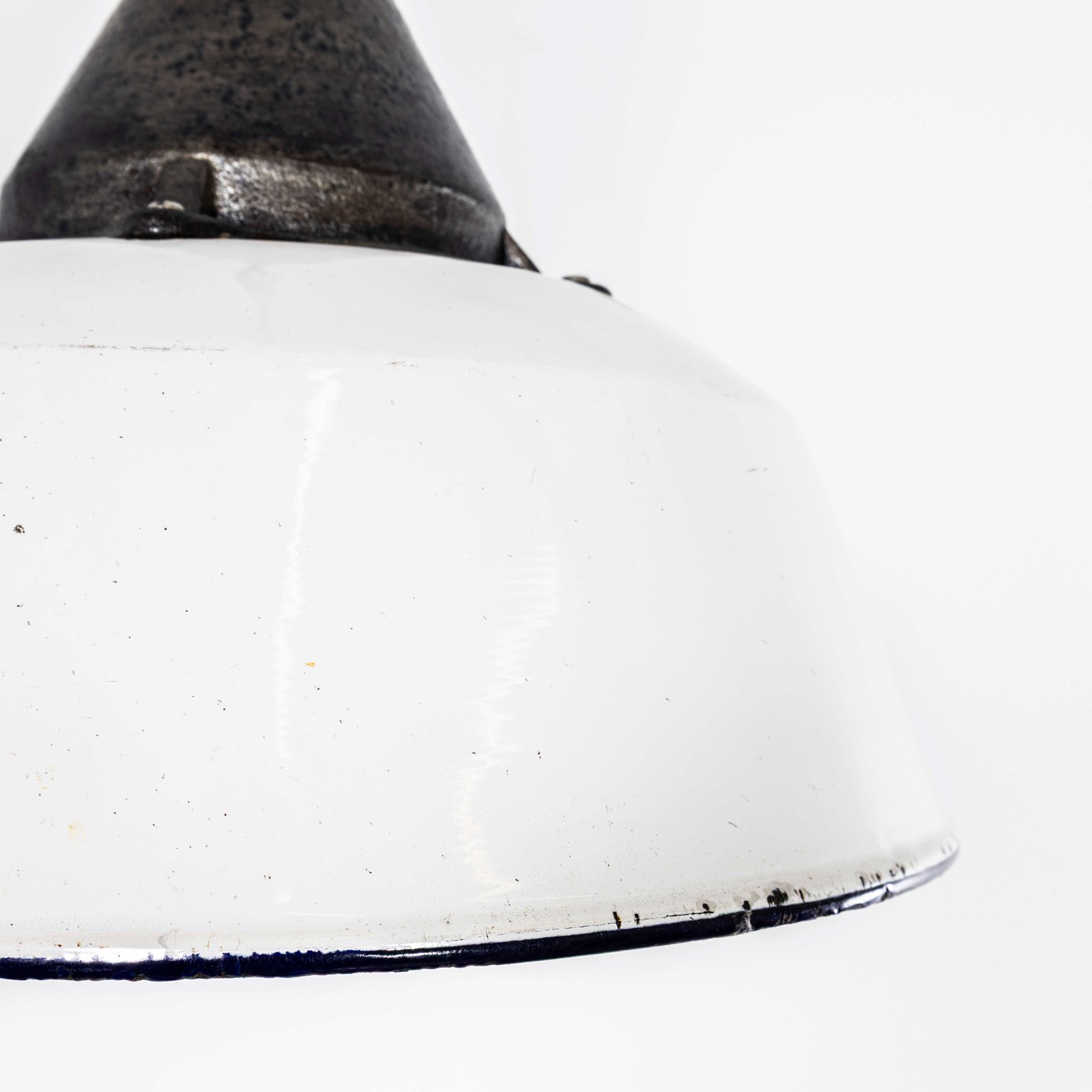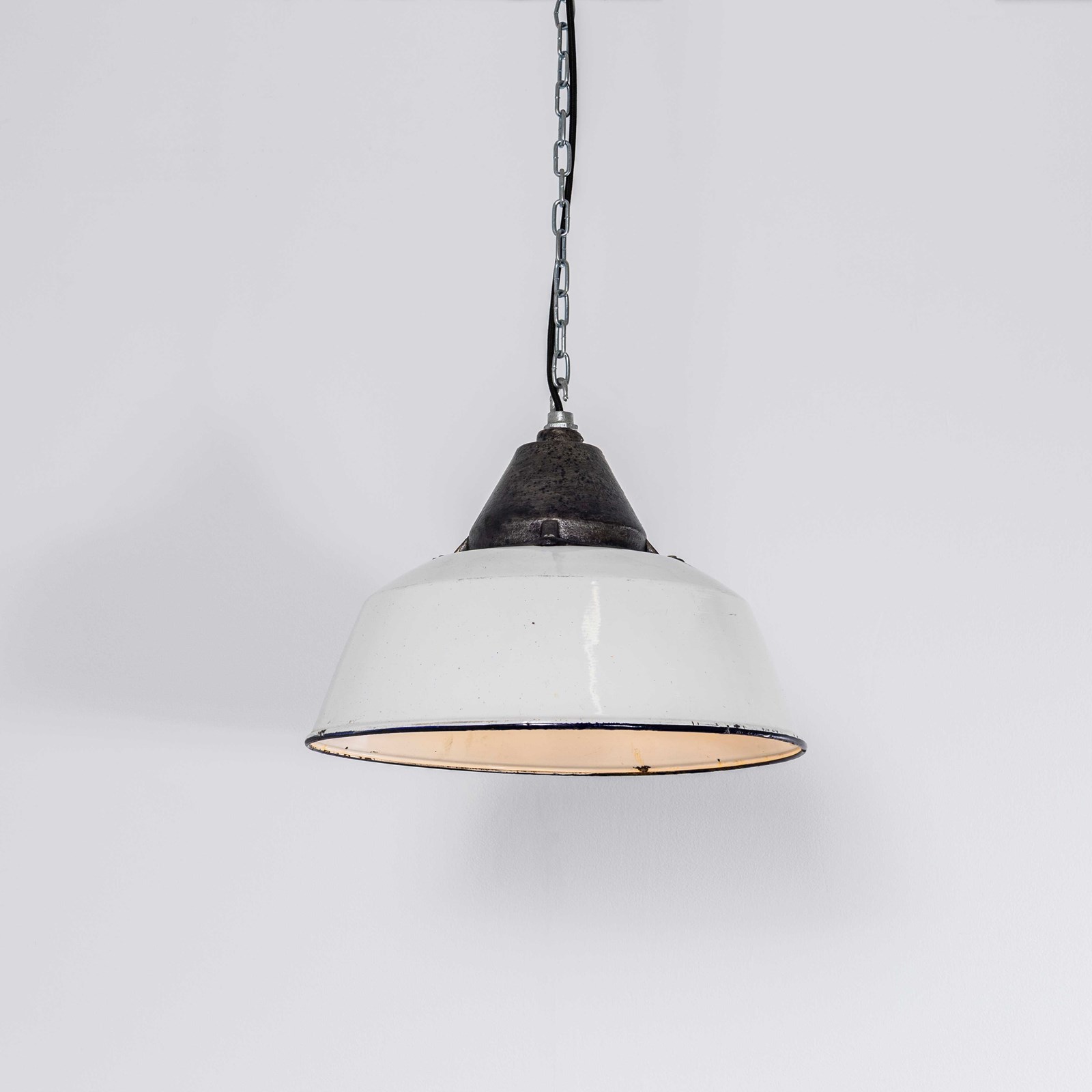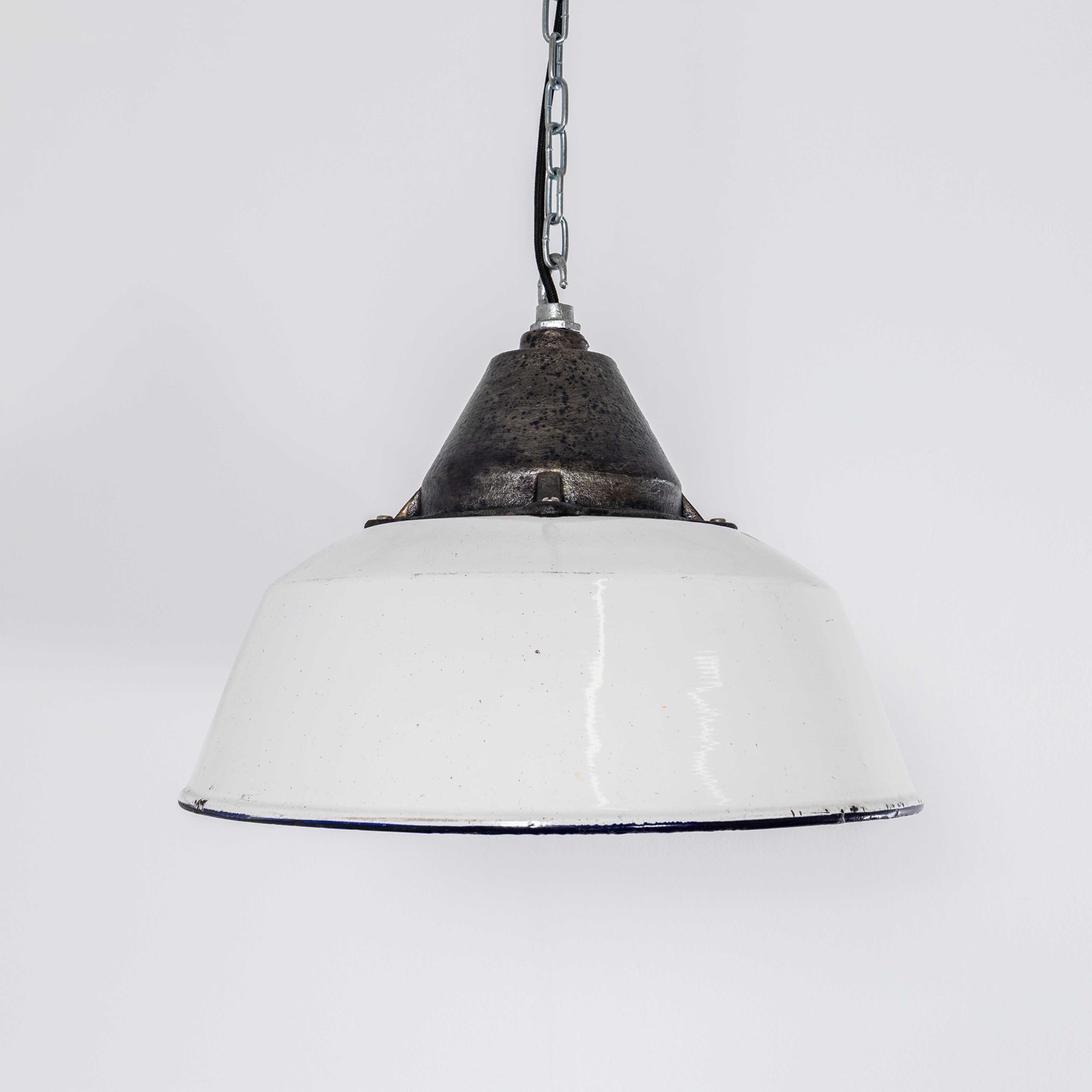 1960'S White Cast Top Enamel Industrial Pendant Lamp