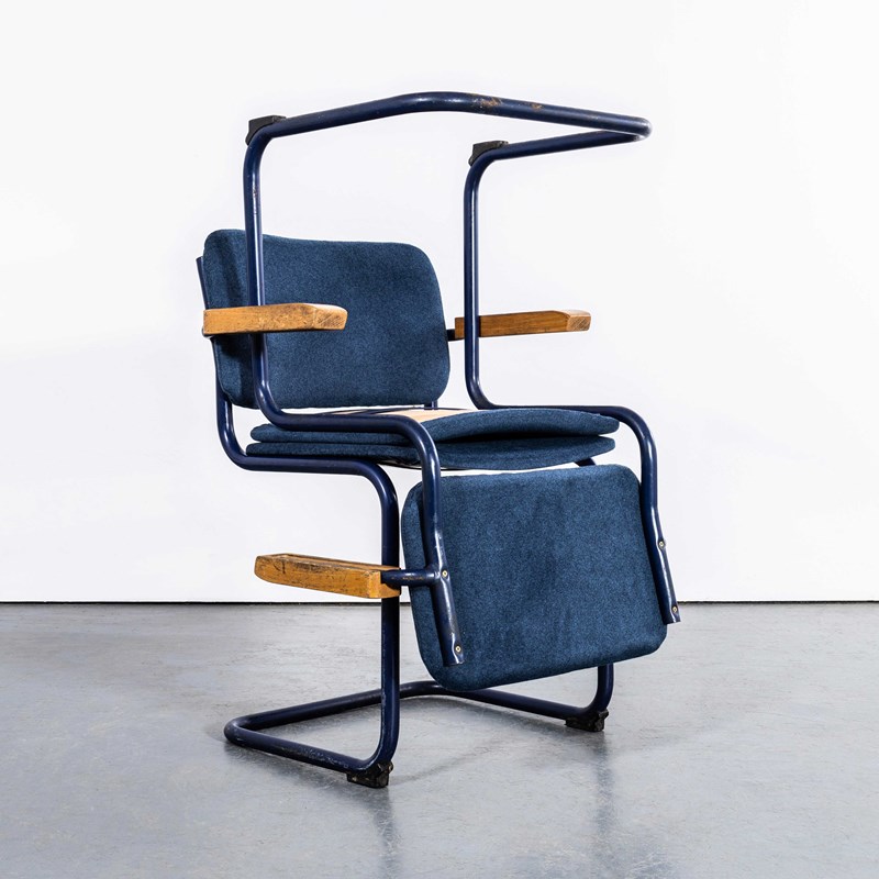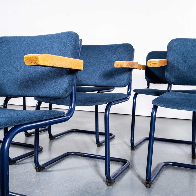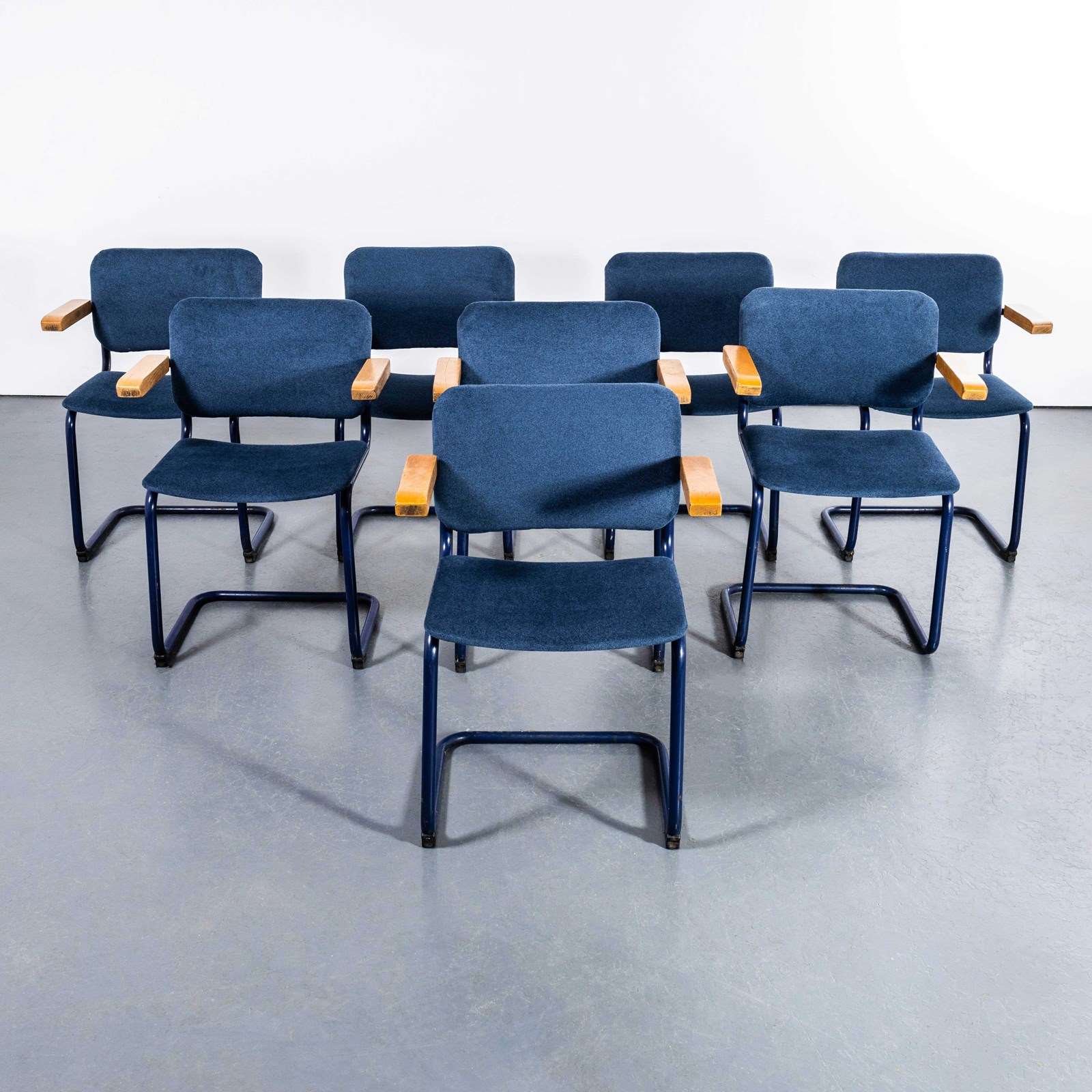 1970'S Cantilever Blue Frame Chair With Denim Blue Upholstery - Set Of Eight