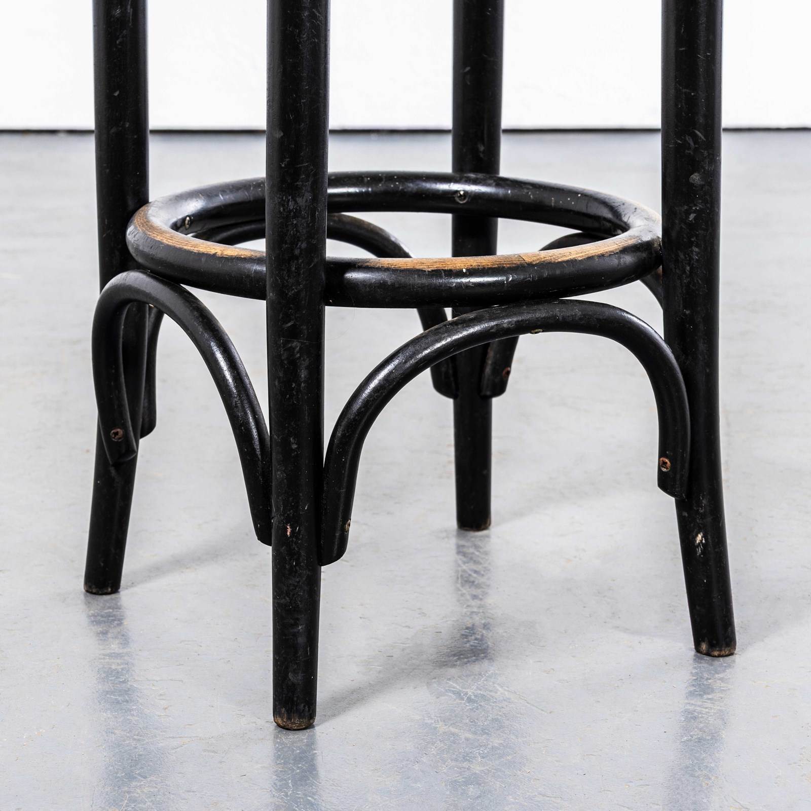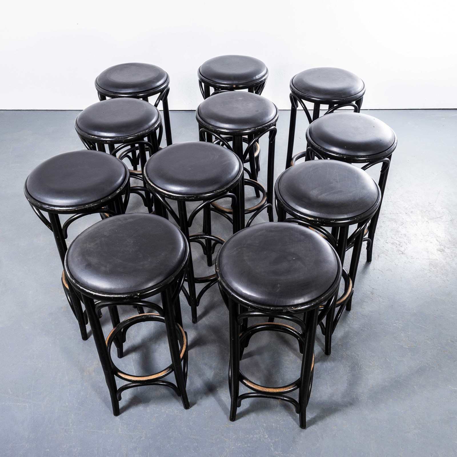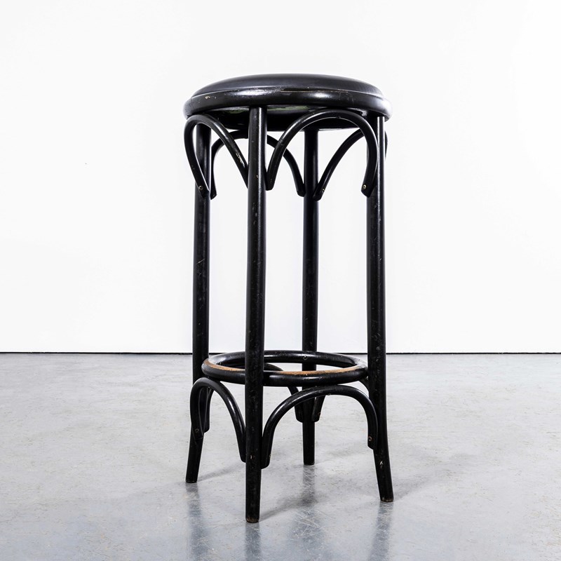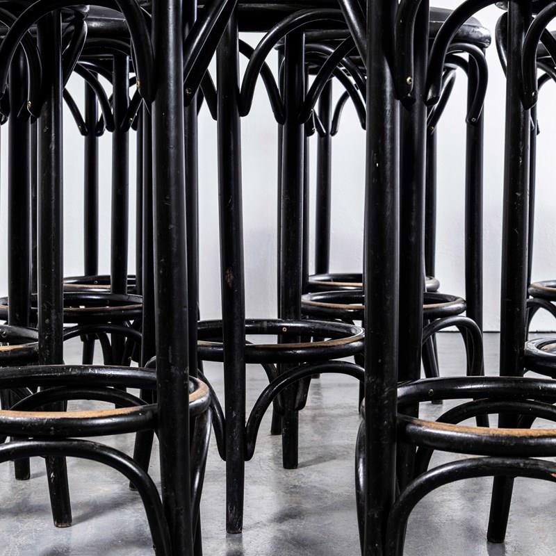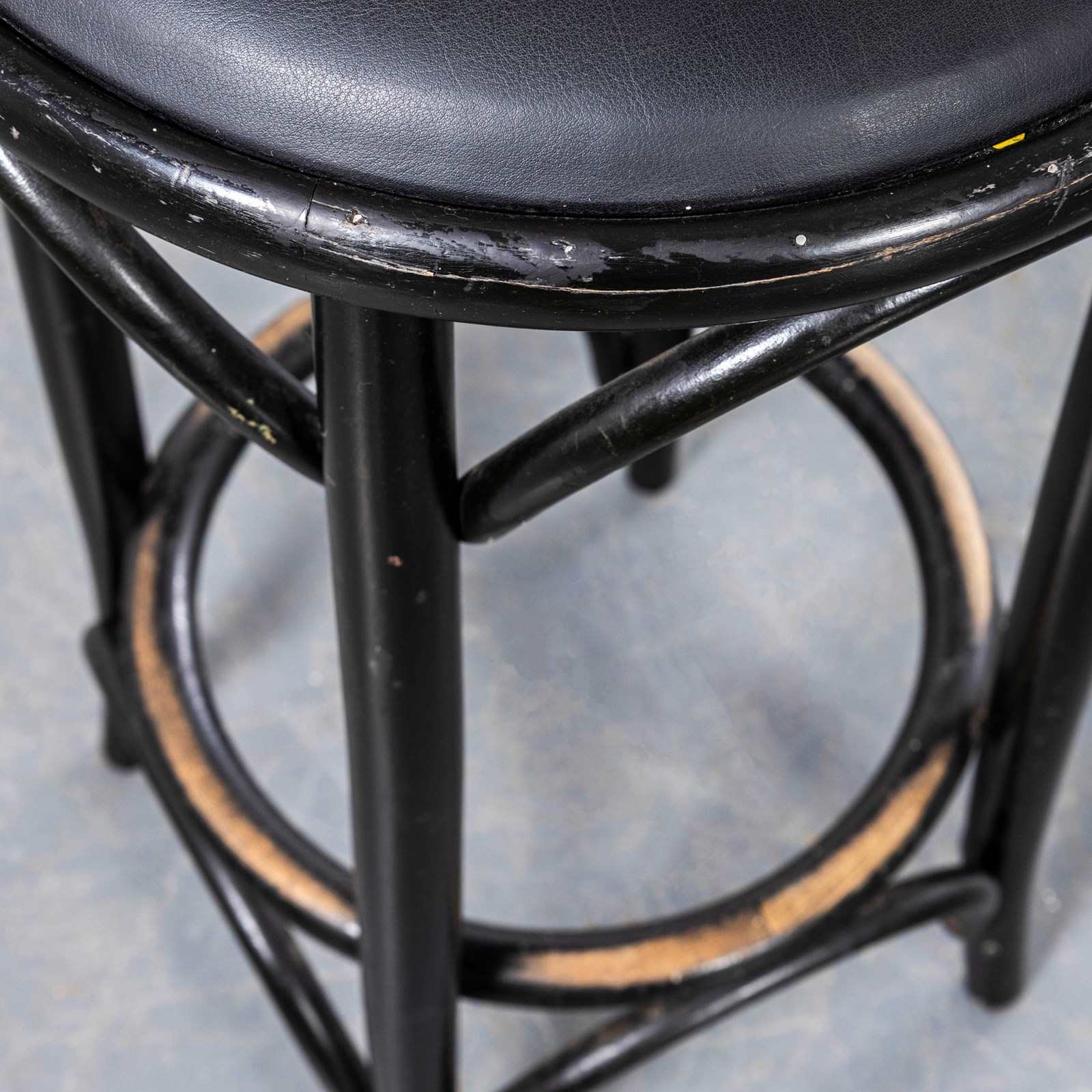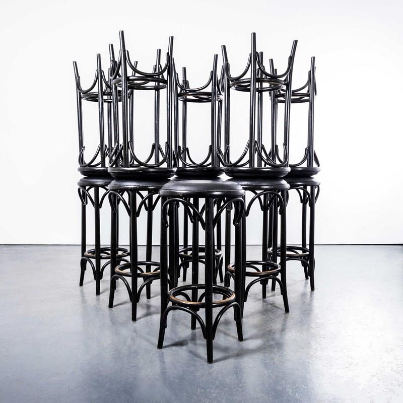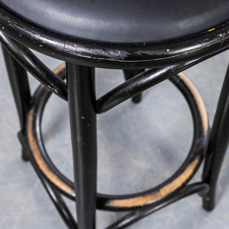 Good quality batch of classic bentwood bar stools in an ebonised finish. The stools were made in Eastern Europe using solid steam bent beech, they are in excellent condition. The stools retain the original black upholstery in good condition. Each stool is serviced individually in our own workshops.