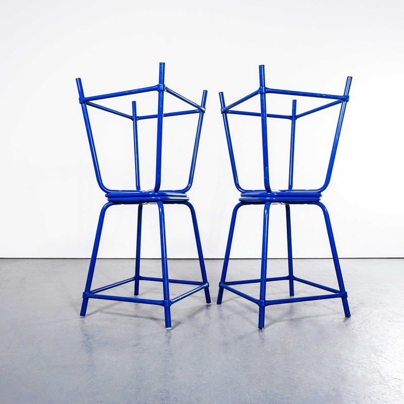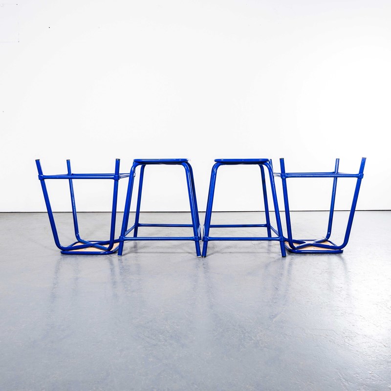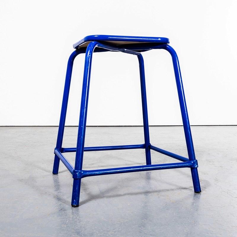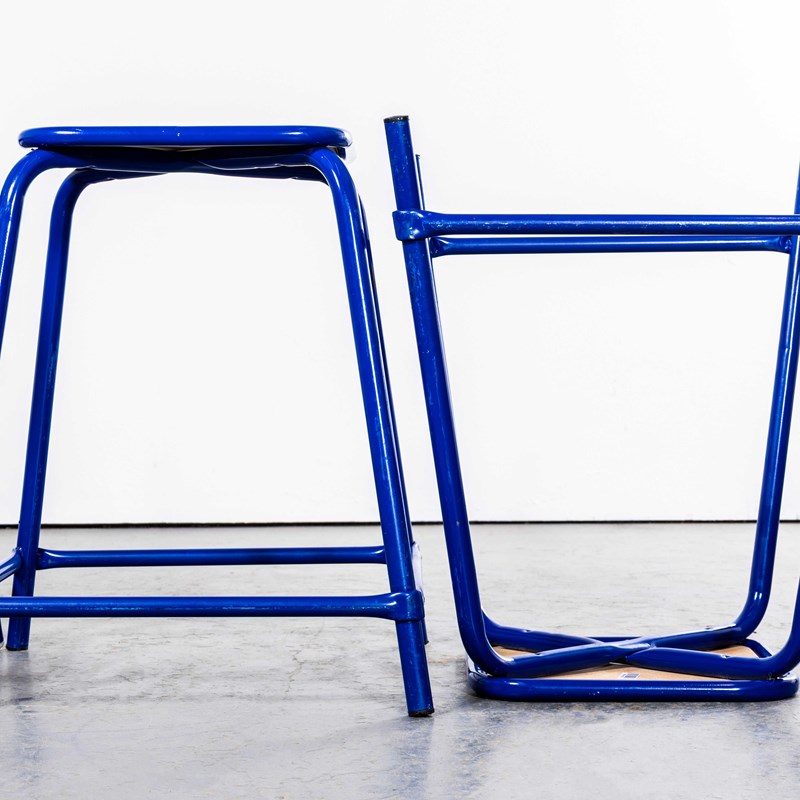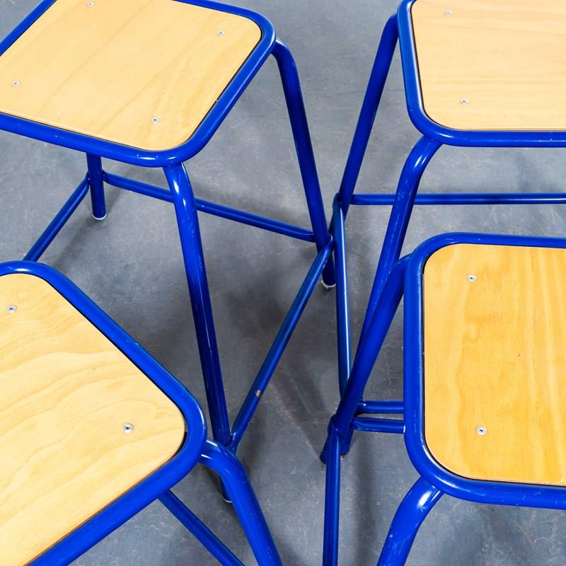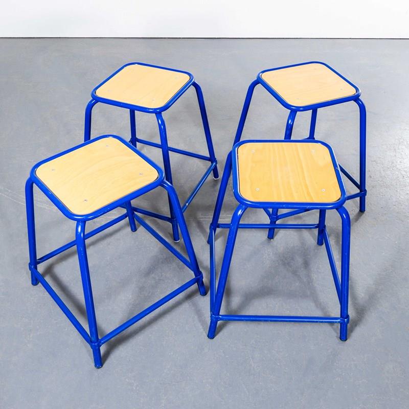 1970’s French Bright Blue Laboratory Stools – Set Of Four.