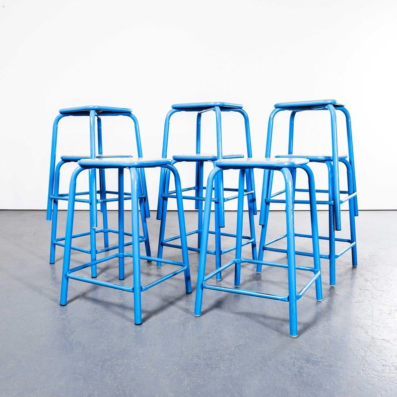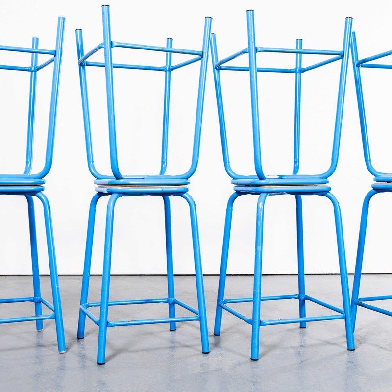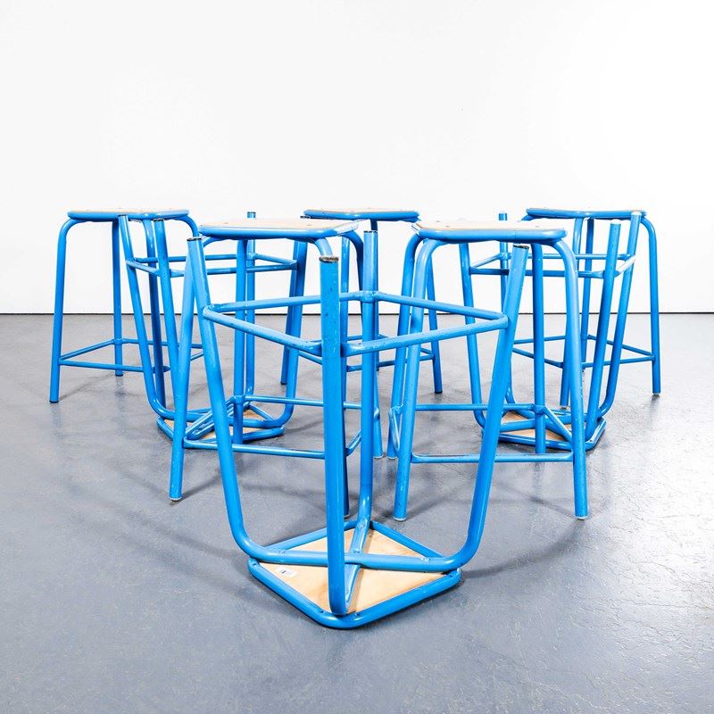 1970’S French Light Blue Laboratory Stools – Set Of Eight