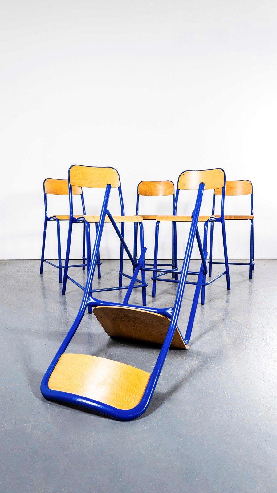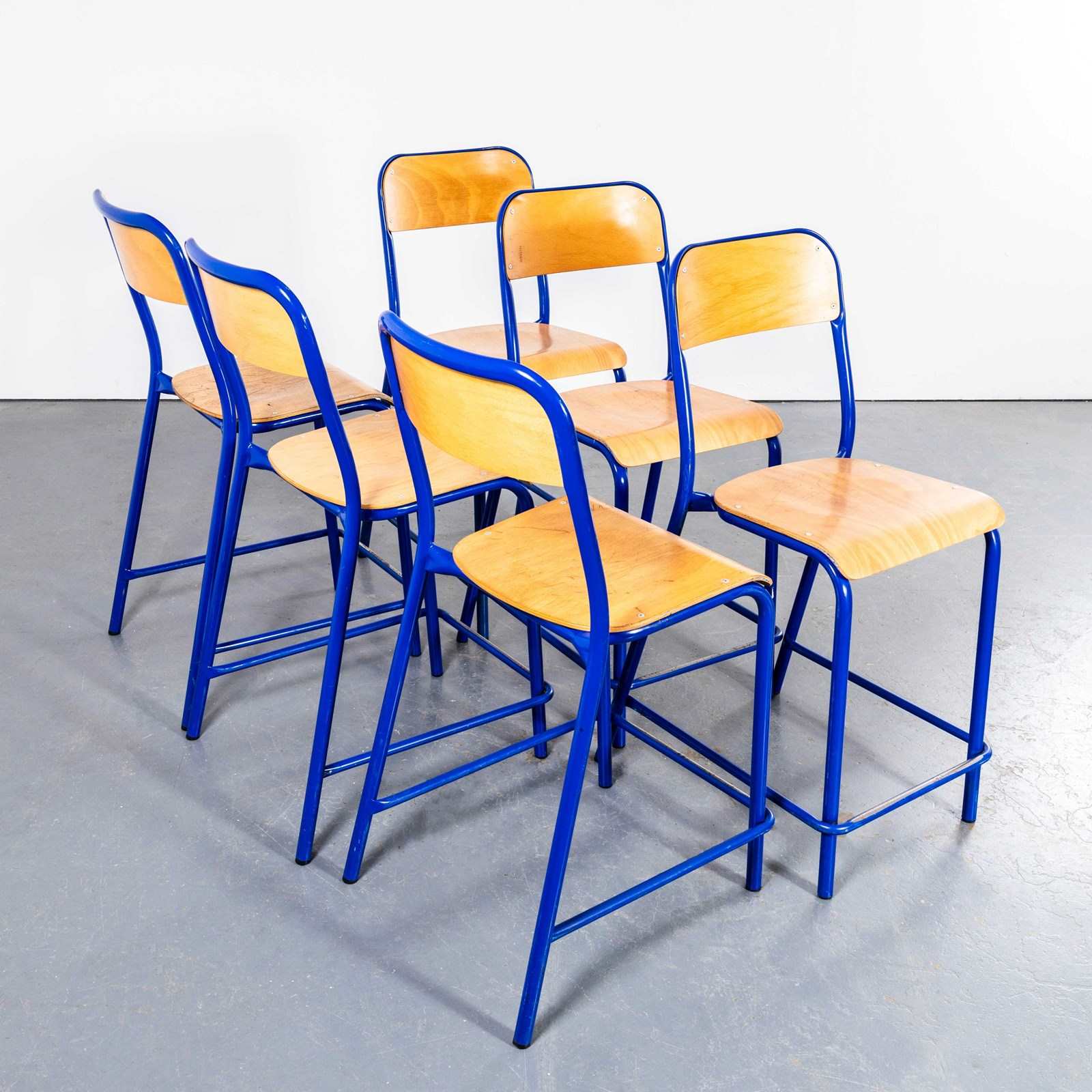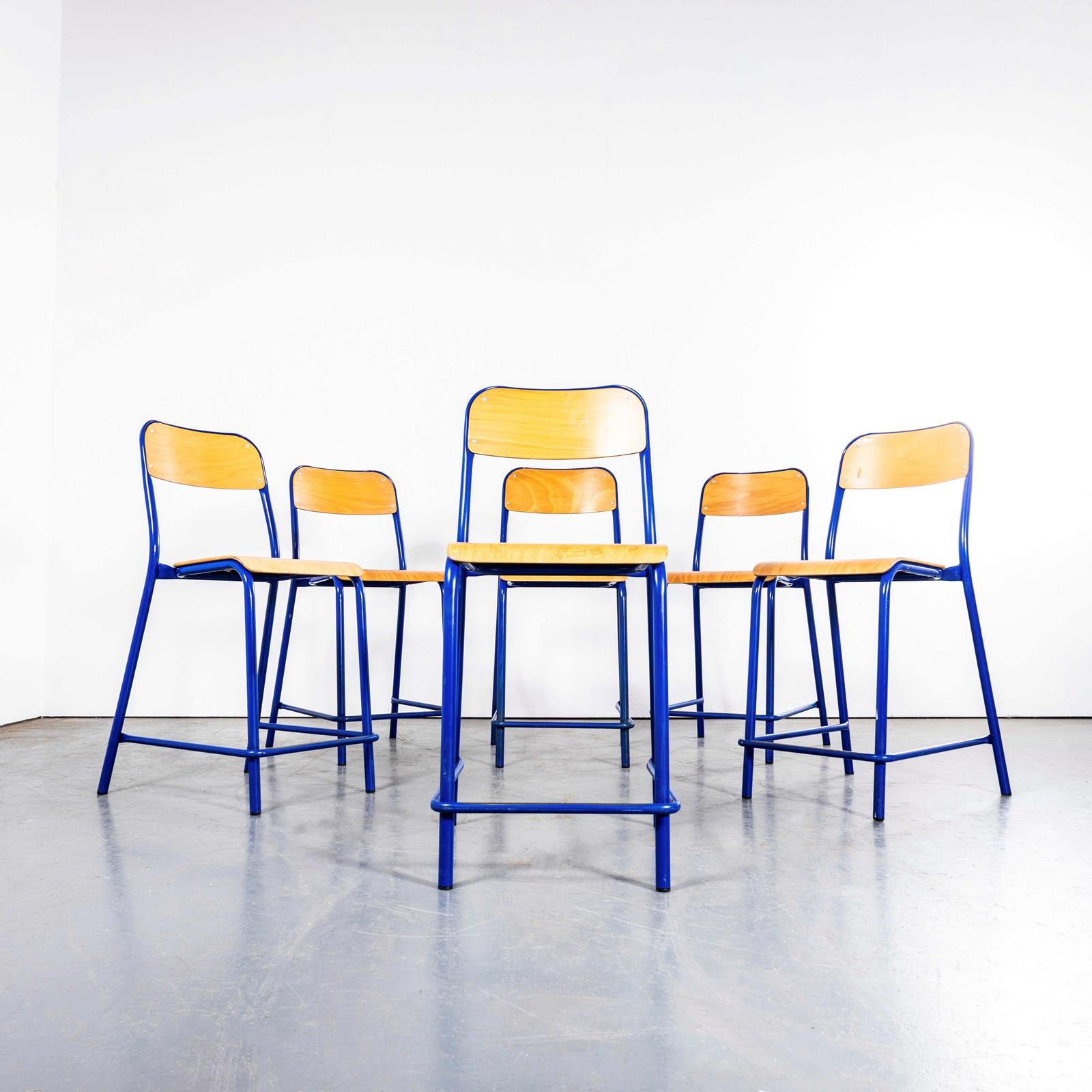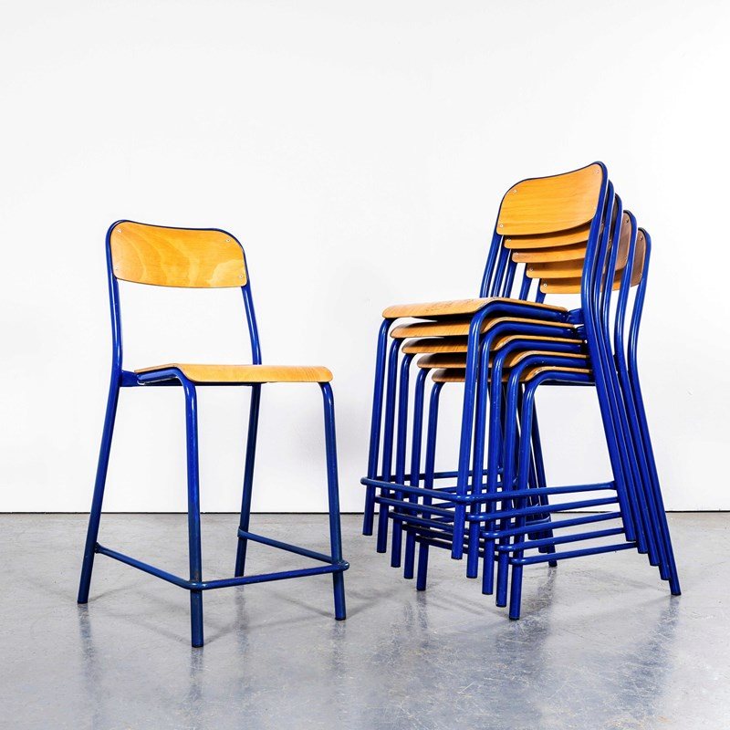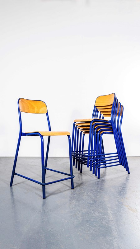 1970’s French Mullca Blue Stacking D Back High Bar Chair/Stool – Set Of Six.