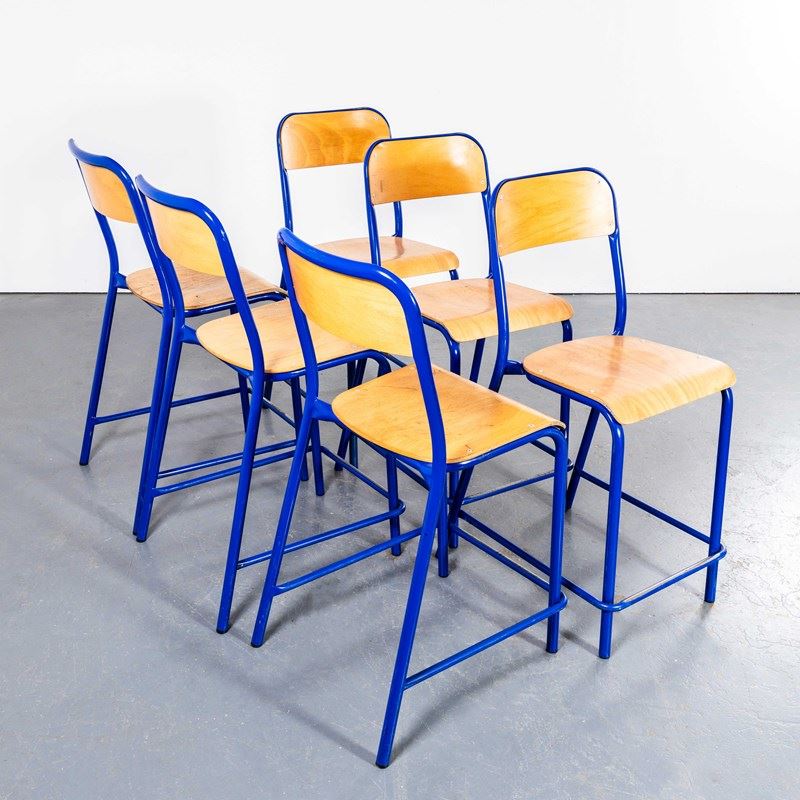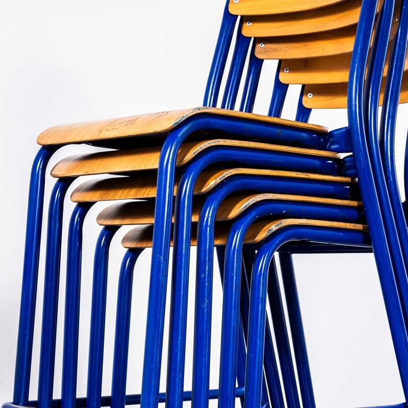 One of our most favourite chair makrers, in 1947 Robert Muller and Gaston Cavaillon created the company that went on to develop arguably the most famous French school chair. Sadly the company no longer exists but vintage chairs can still be found, beautifully made with a strong tubular frame with birch seats and back inserts. Ours date from the 1970’s and are in excellent condition with vivid blue frames. We service and rejuvenate all our chairs individually before they leave our workshop and we deliver chairs of excellent quality.