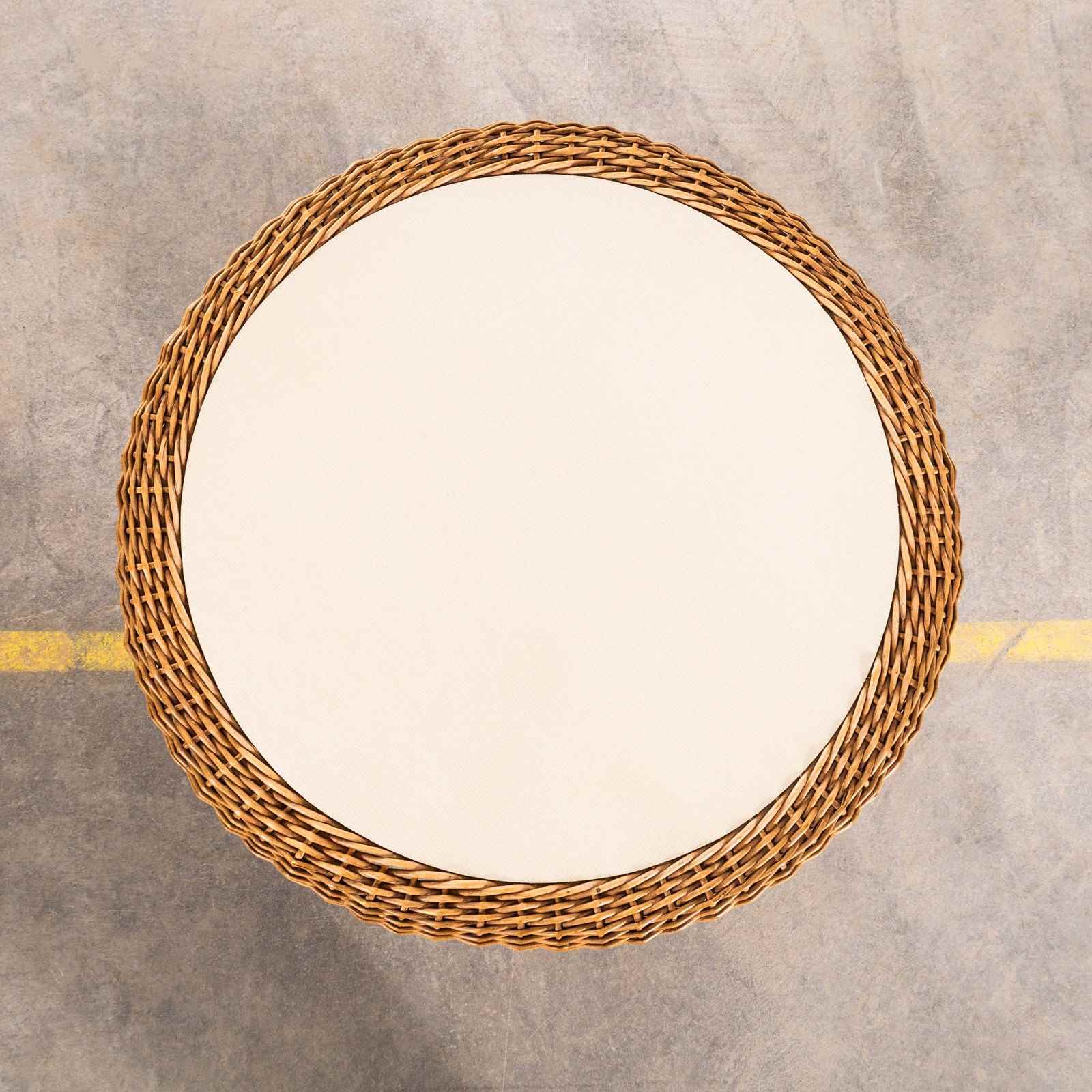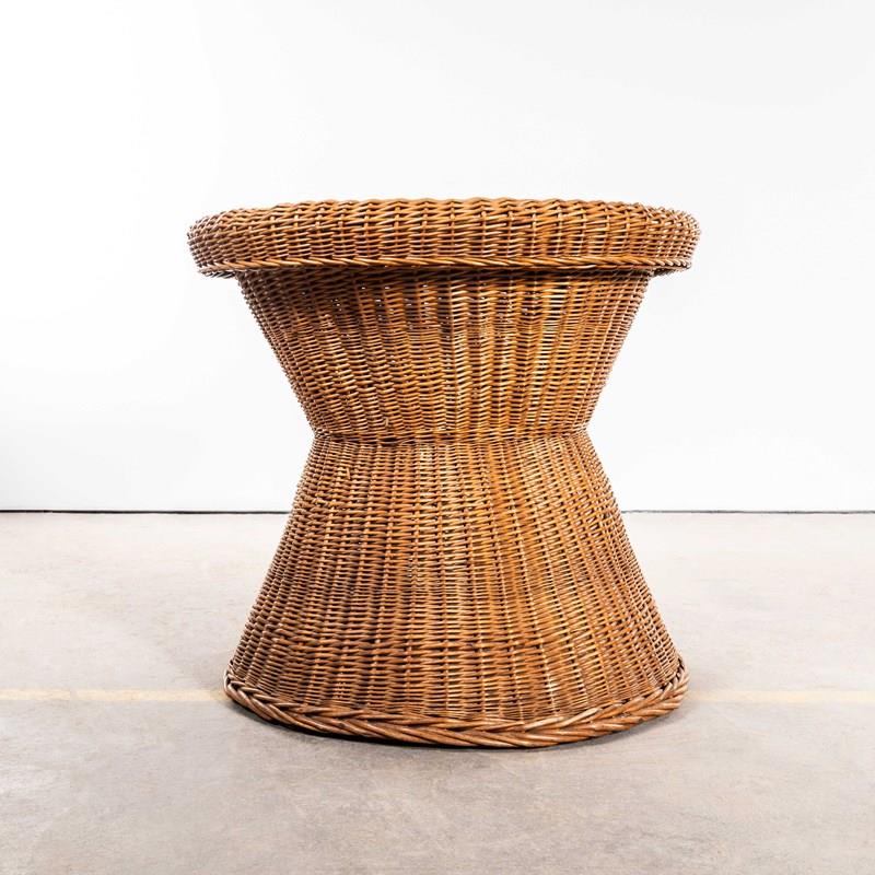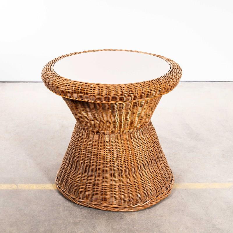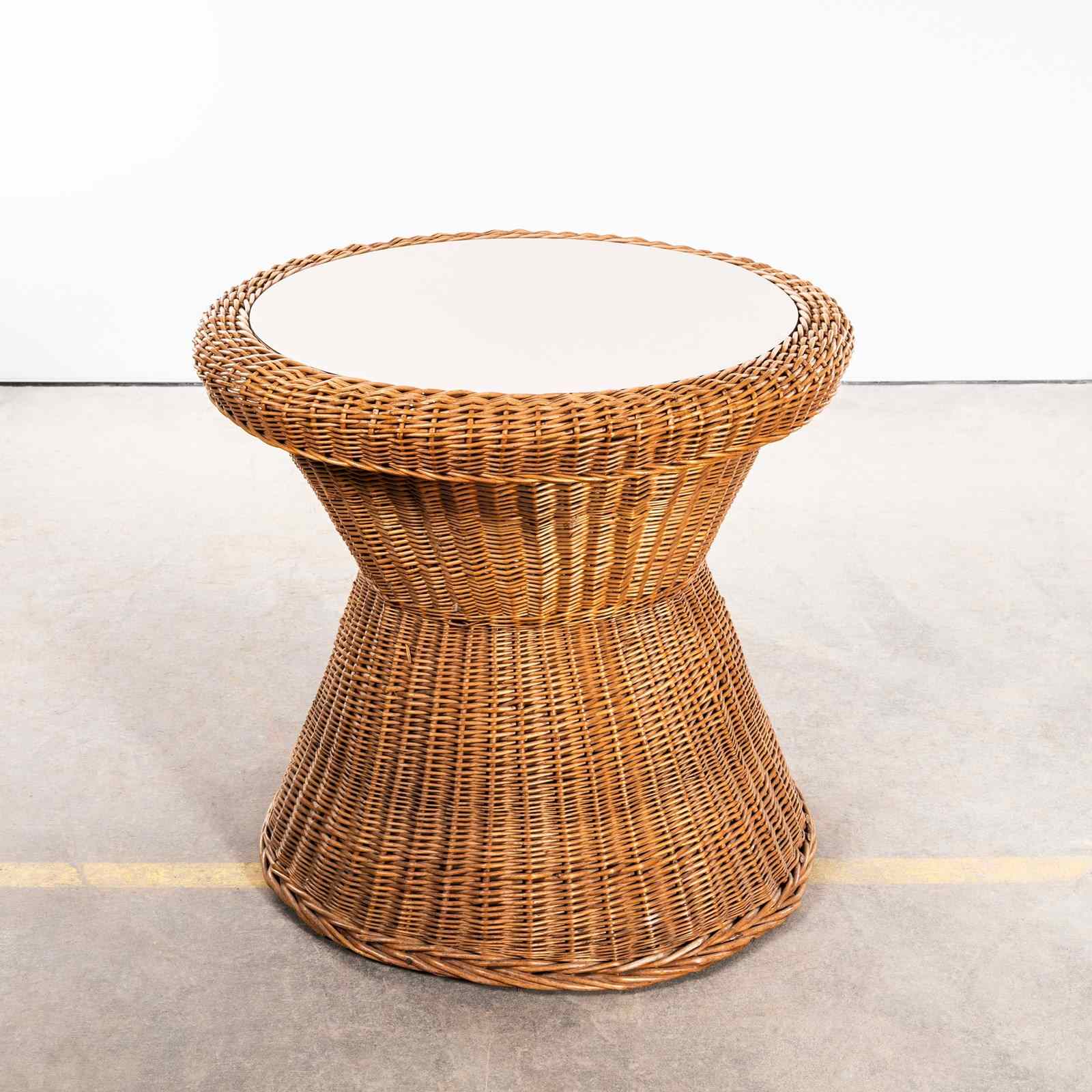 Good simple French wicker table from the late sixties/seventies in very good original condition with a solid woven base and laminate top.