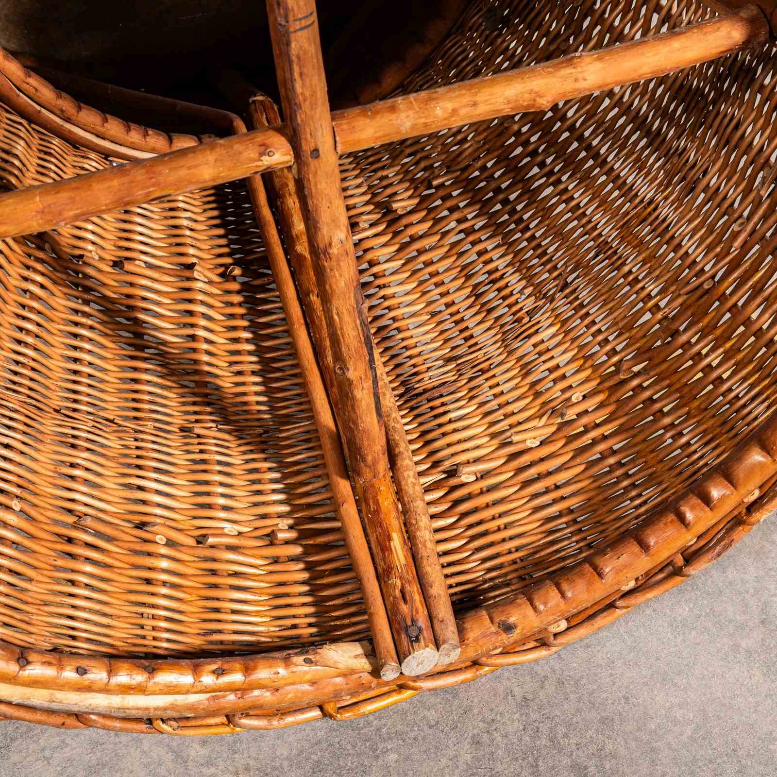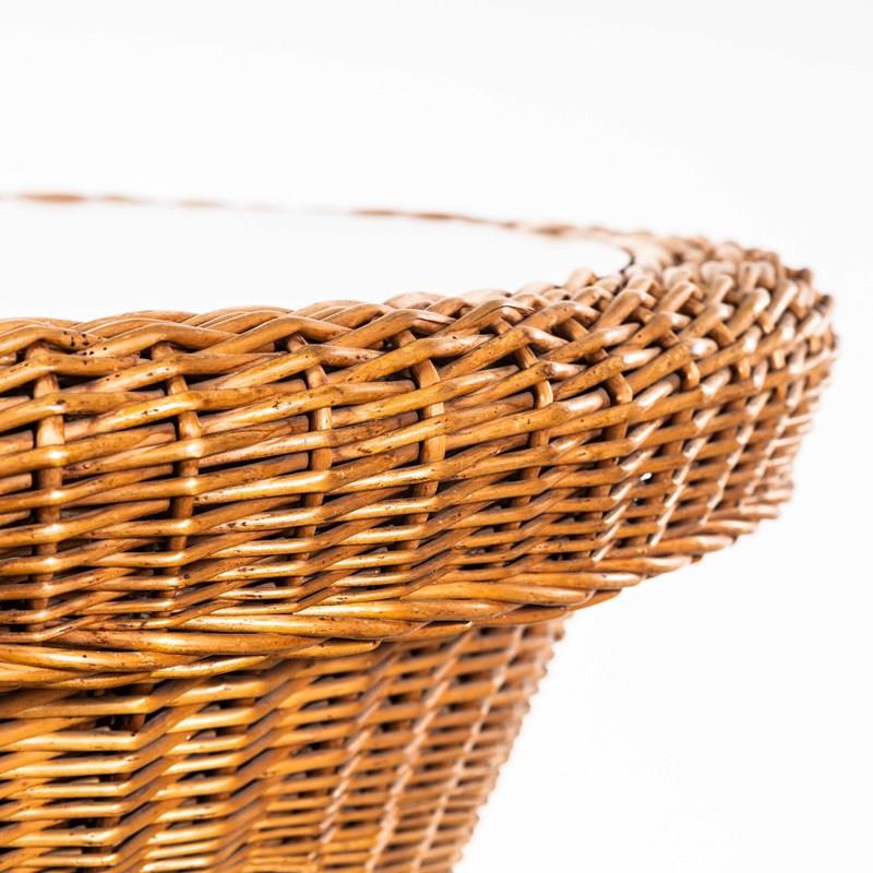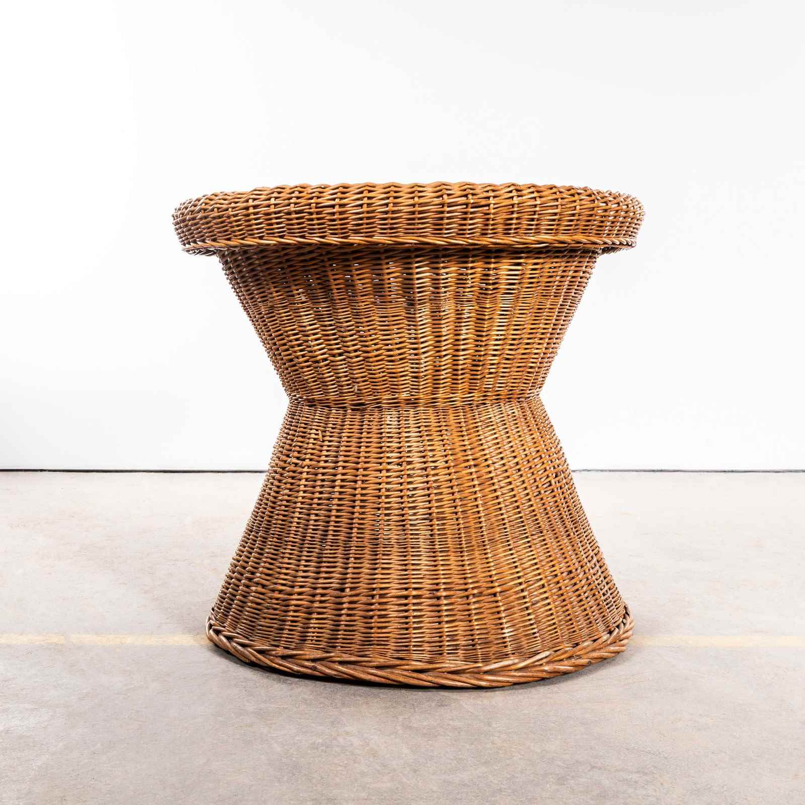 Good simple French wicker table from the late sixties/seventies in very good original condition with a solid woven base and laminate top.