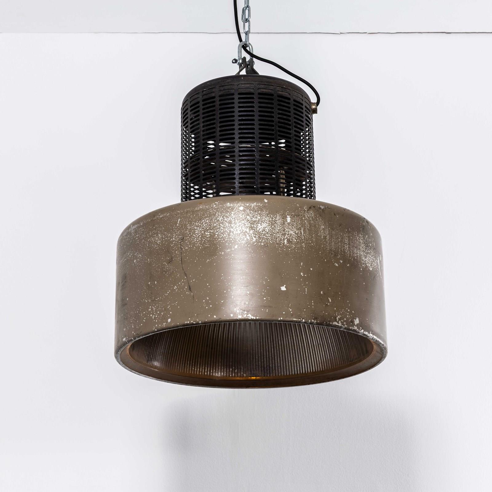 1970'S Large Holophane Industrial Pendant Lamps With Grill Top