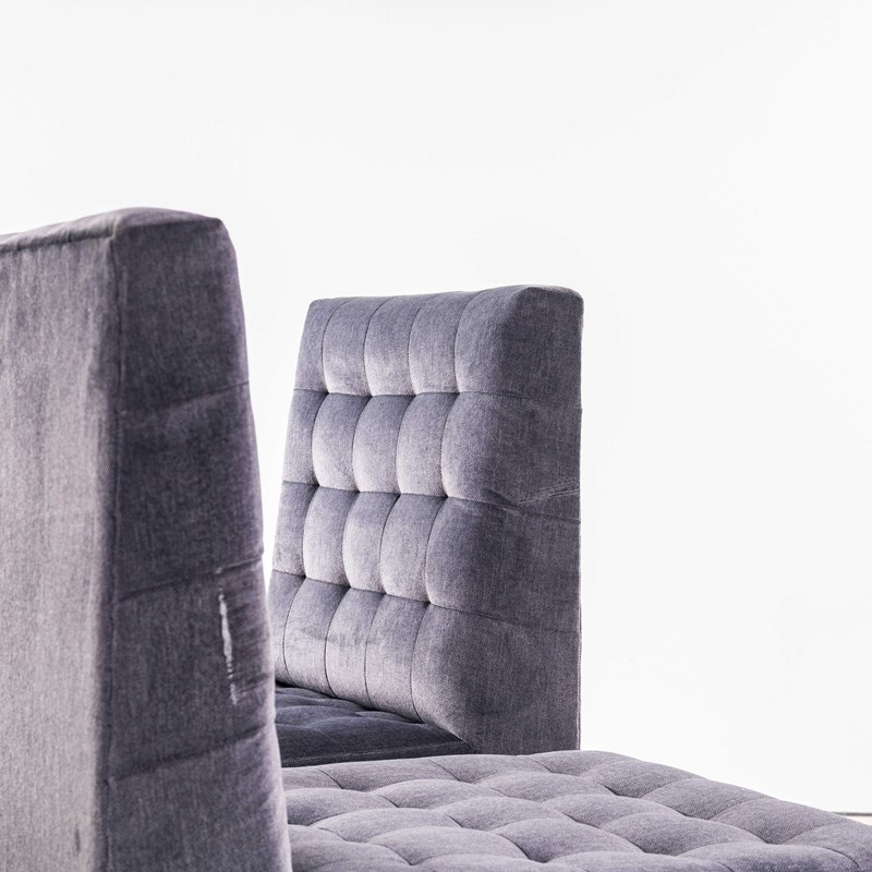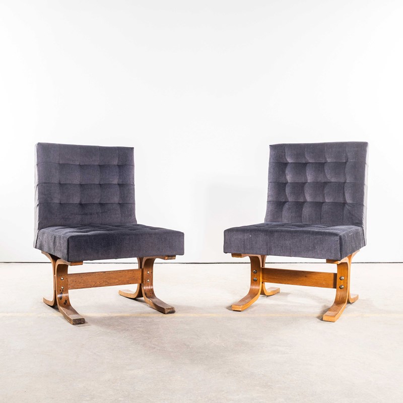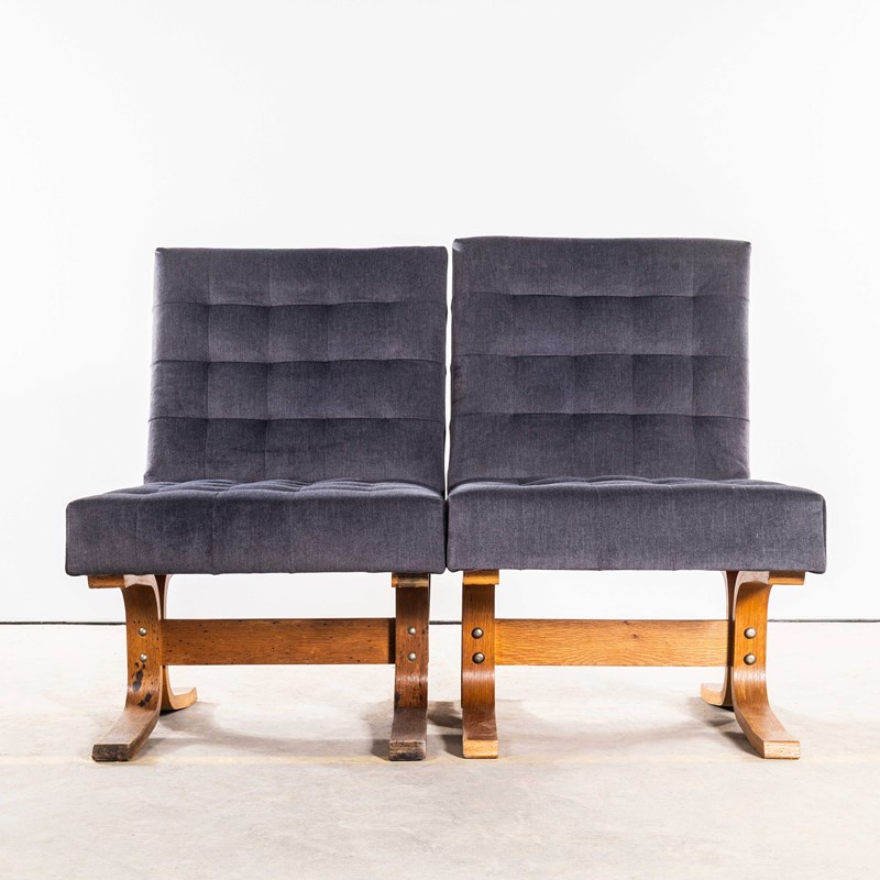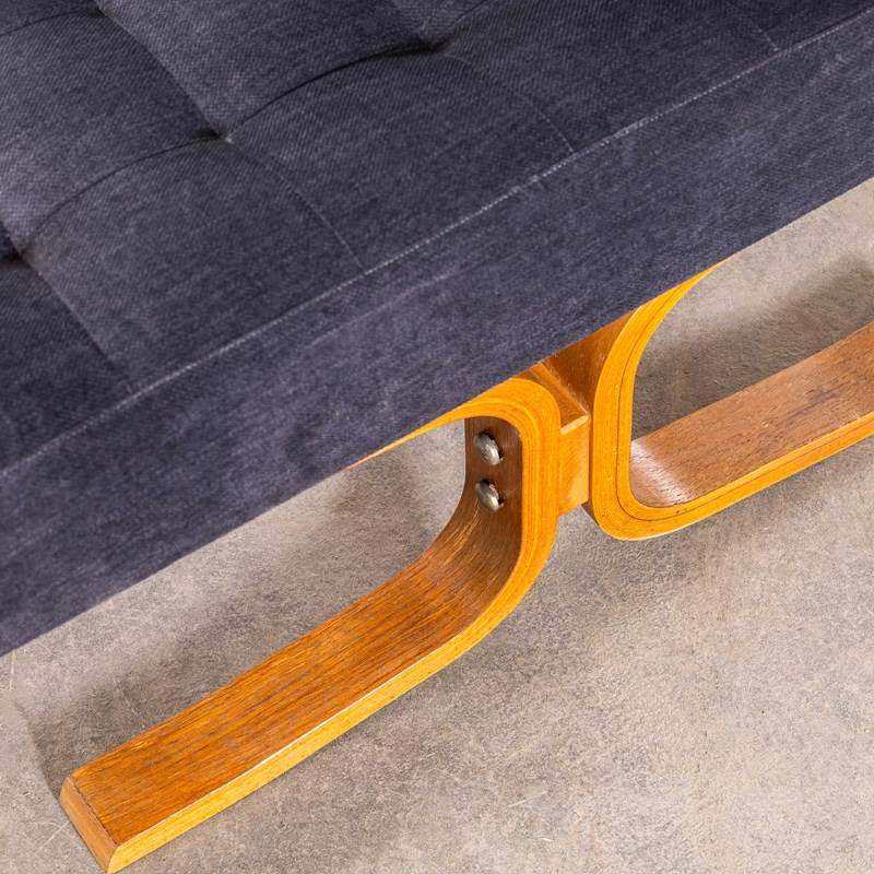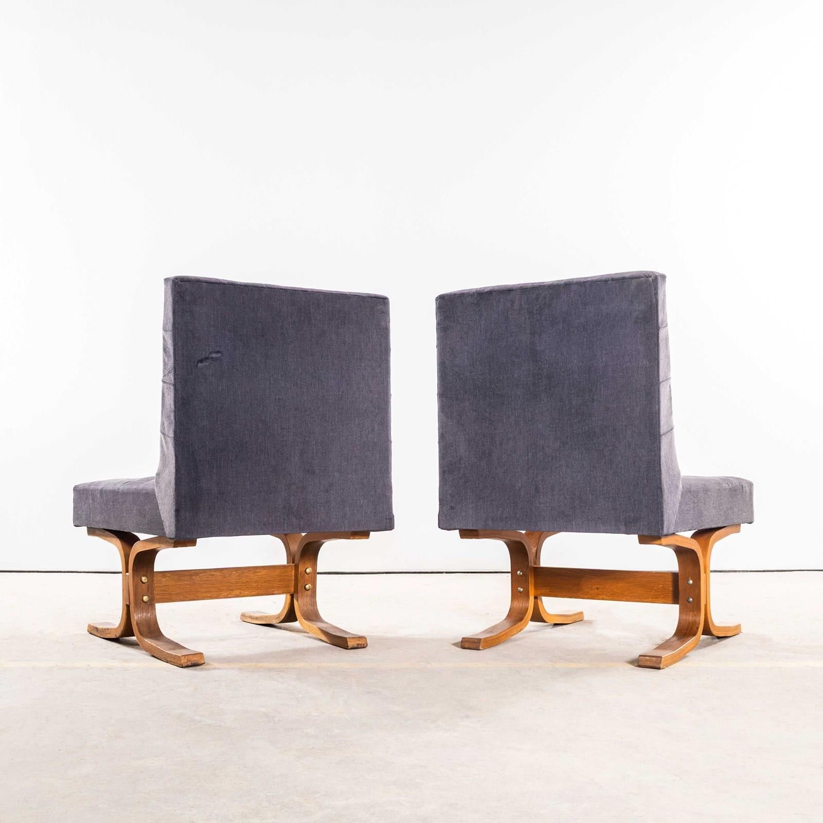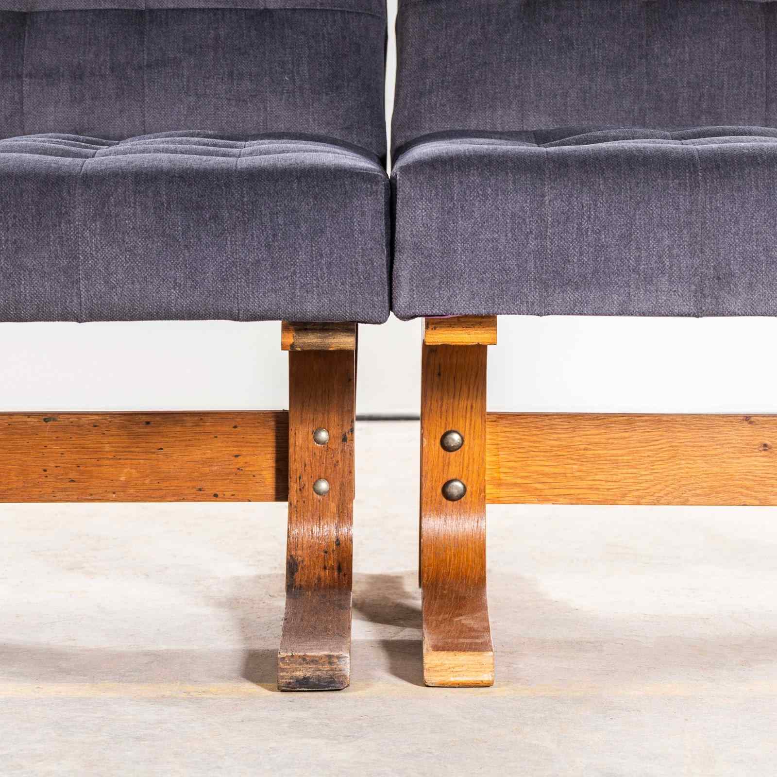 Sourced direct in the Czech republic, Volak is one of the most celebrated mid century designers best known for the organic room divider made by Drevopodnik Holesov. Volak was commissioned to make the Bratislava chair for the international airport of Slovakia. These mid century chairs are made with laminated beech frames and buttoned upholstery, our upholster has stripped the internal components and rebuilt and reupholstered them by hand. The chairs have been reupholstered in Grey Brushed Cotton. Please note the chairs are not compliant with UK fire regulations and can only be sold outside the UK. Seat Height: 38cm