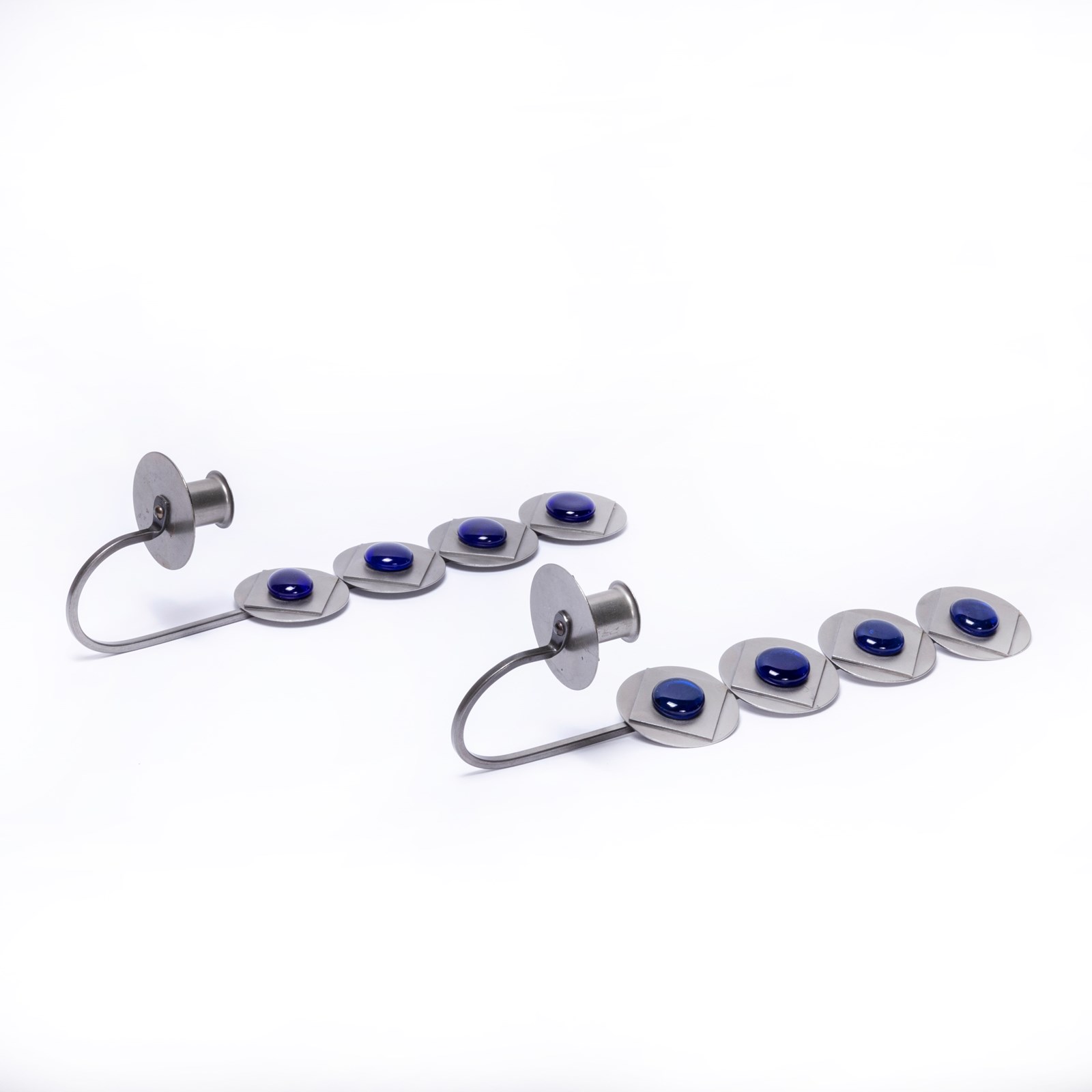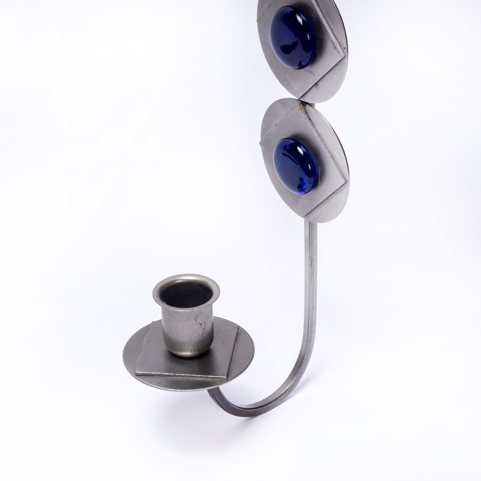 1970'S Pair Scandinavian Wall Sconces Metal And Blue Glass
