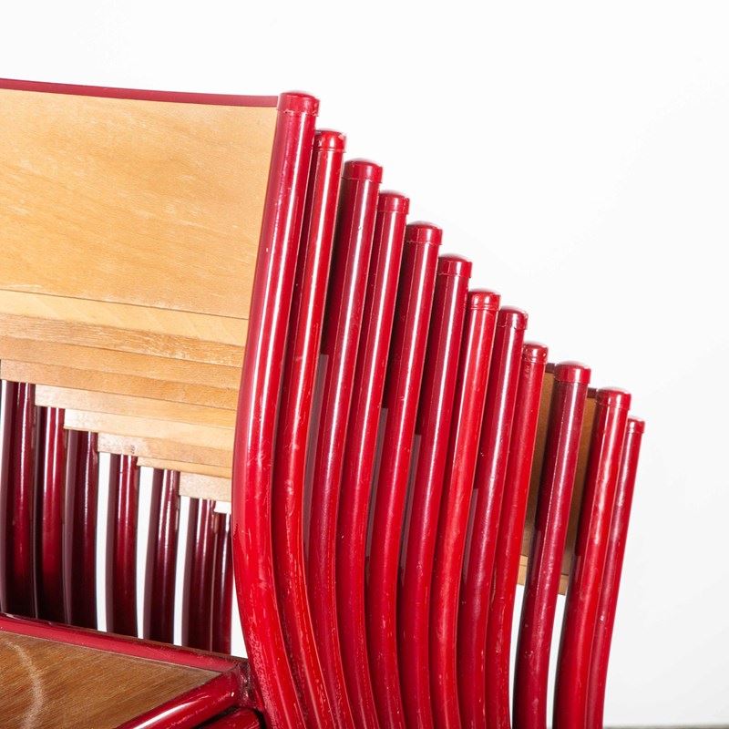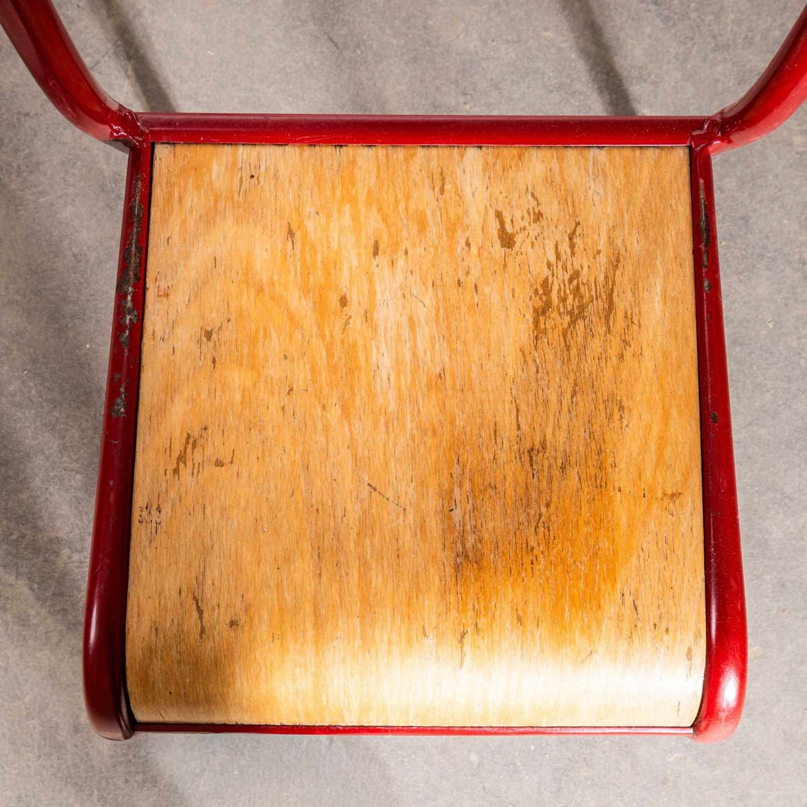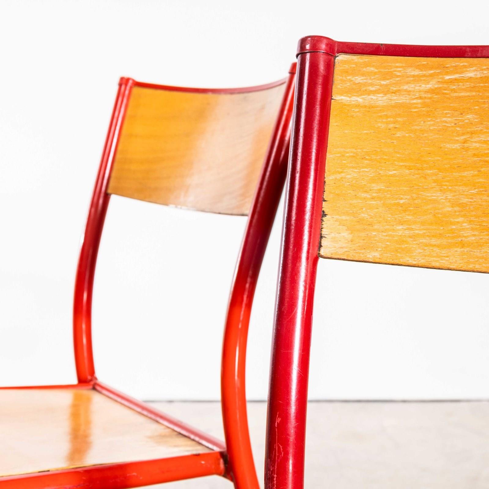 One of our most favourite chairs, in 1947 Robert Muller and Gaston Cavaillon created the company that went on to develop arguably the most famous French school chair. Sadly the company no longer exists but vintage chairs can still be found, beautifully made with a strong tubular frame with beech seats and back inserts. Ours date from the early 1970’s and are in good condition. In this batch of chairs we had some minor imperfections but these are shown in the photos. Super comfortable and stylish. We service each chair individually before they leave our workshop.