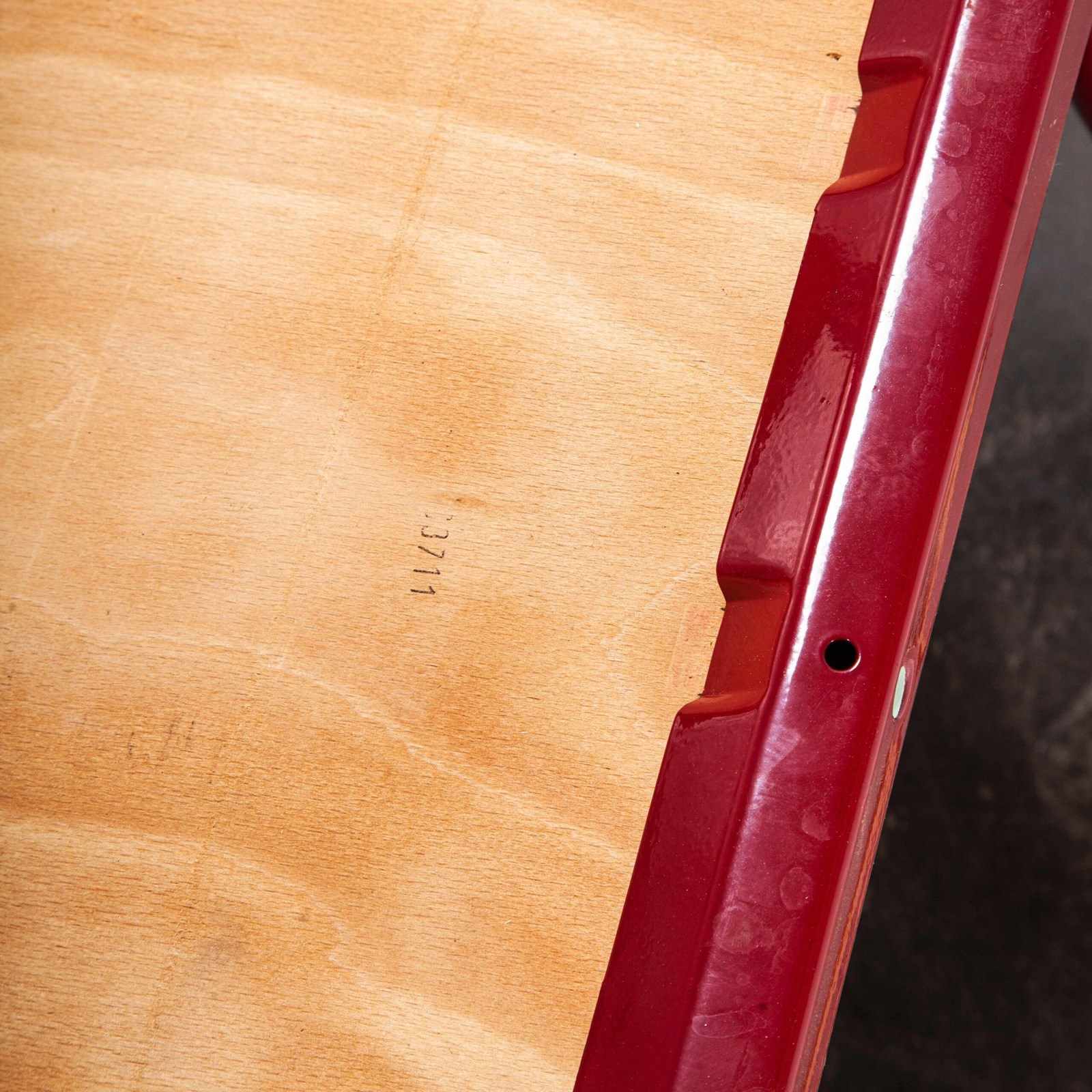 1970’s Red Mullca Stacking Dining Chair With Beech Seat.