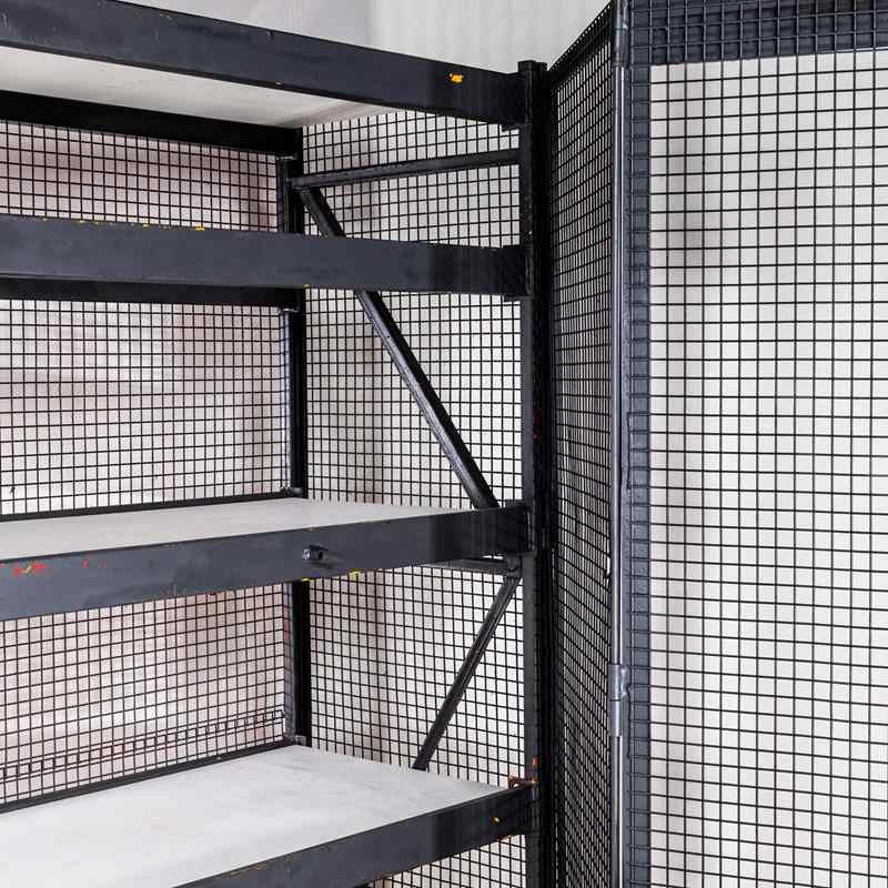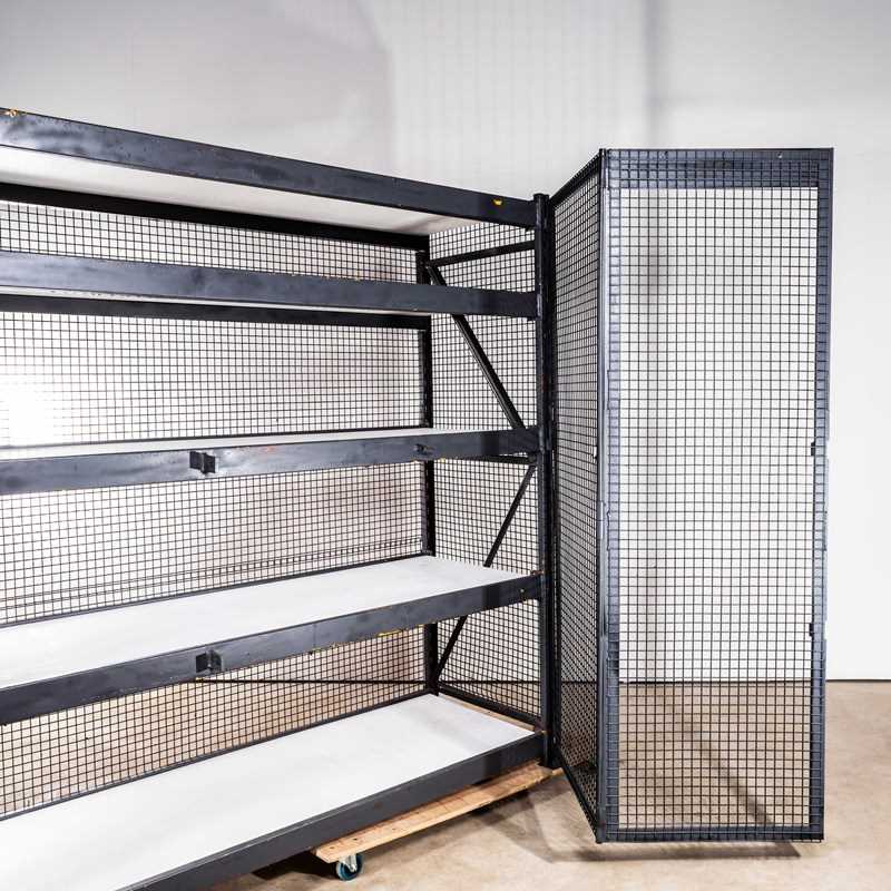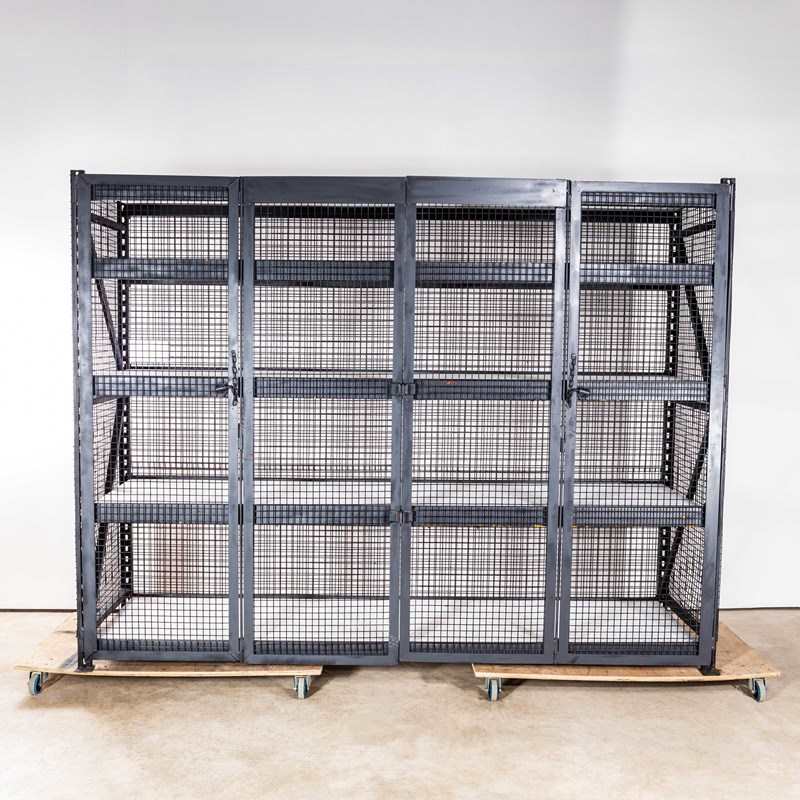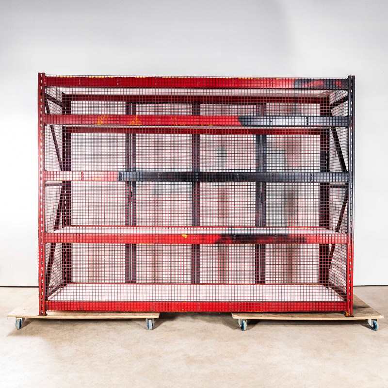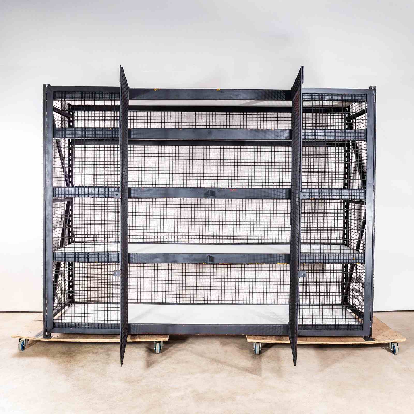 We call this the beast, it is a huge and very heavy industrial cabinet used for securely storing tools. The two large doors fold as shown and can be closed tight with pins. Shelves are crude painted ply. Our workshop has serviced the cabinet it is strong and stable. Weight is approximately 400kg and specialist delivery and handling is required.