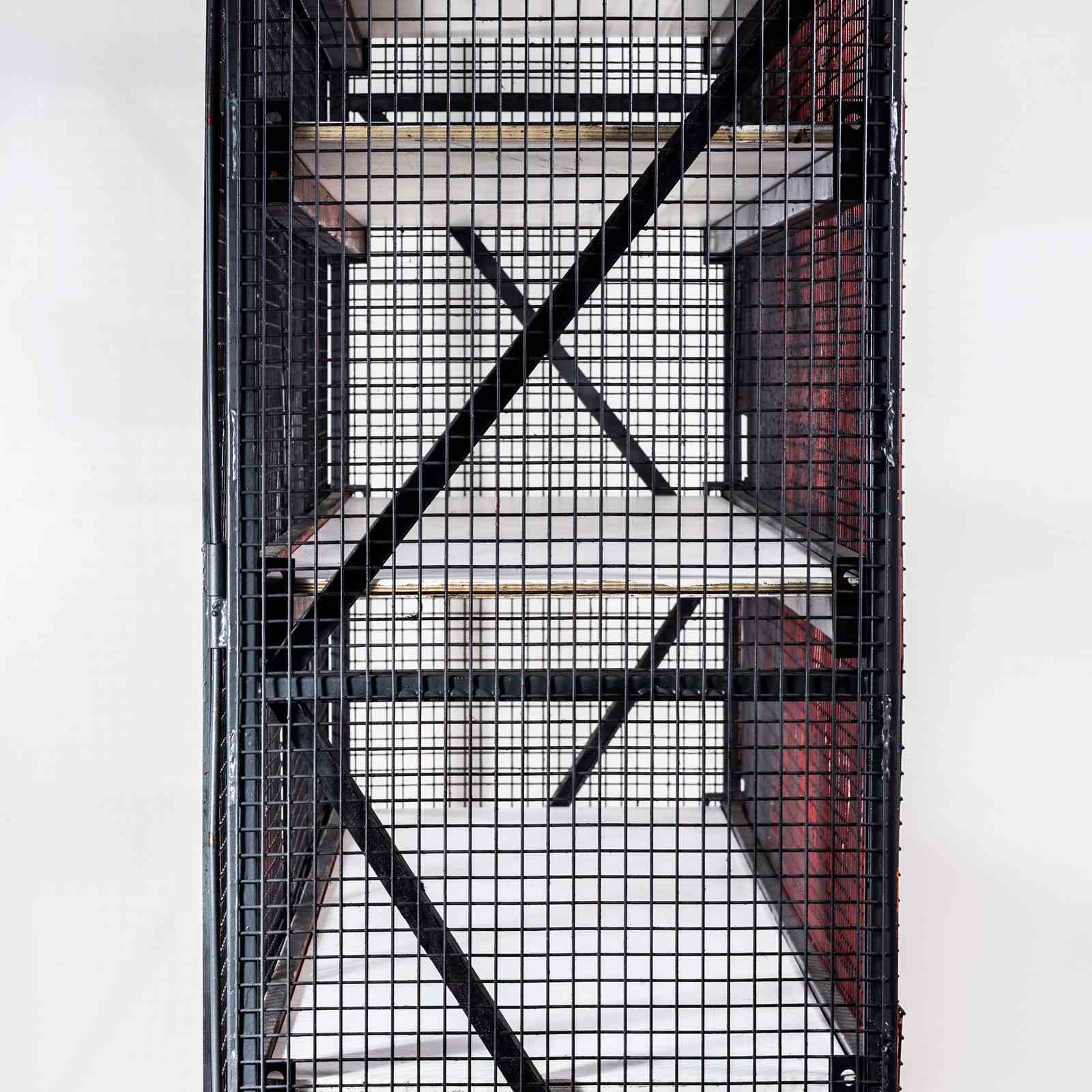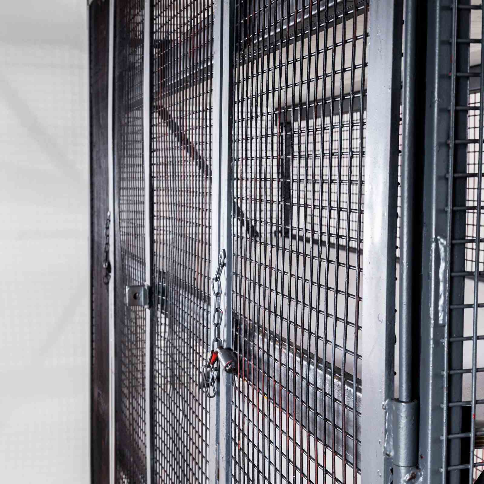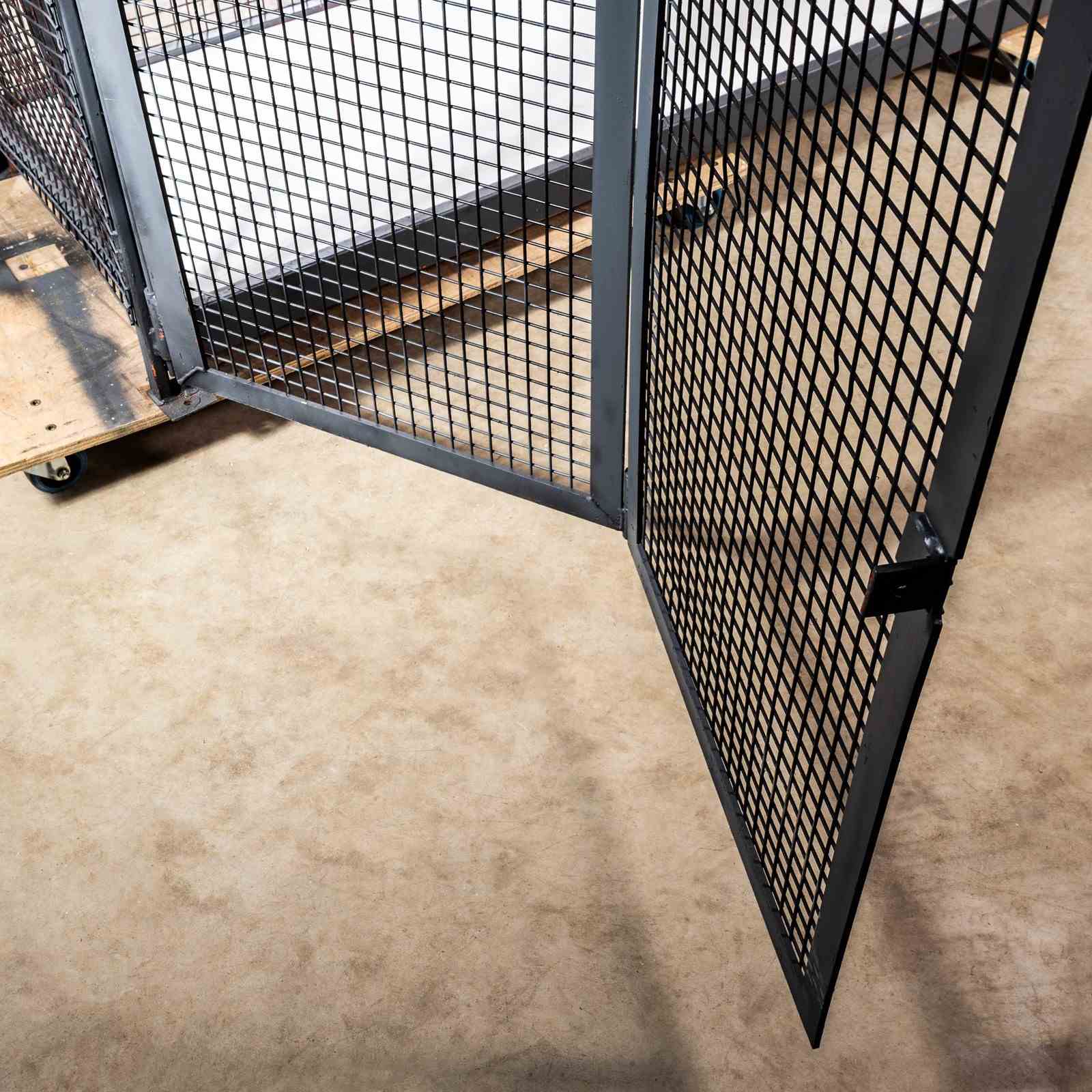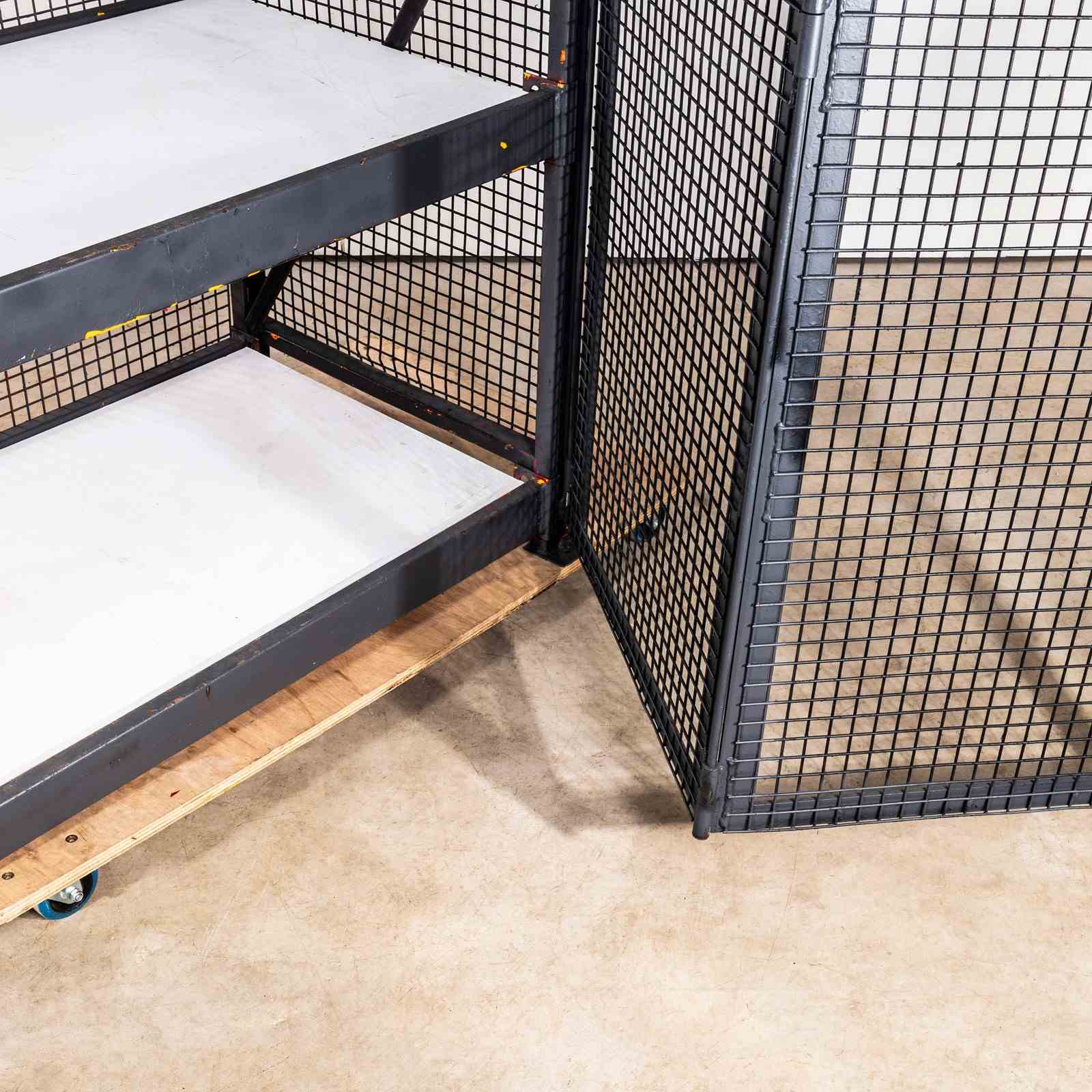 We call this the beast, it is a huge and very heavy industrial cabinet used for securely storing tools. The two large doors fold as shown and can be closed tight with pins. Shelves are crude painted ply. Our workshop has serviced the cabinet it is strong and stable. Weight is approximately 400kg and specialist delivery and handling is required.