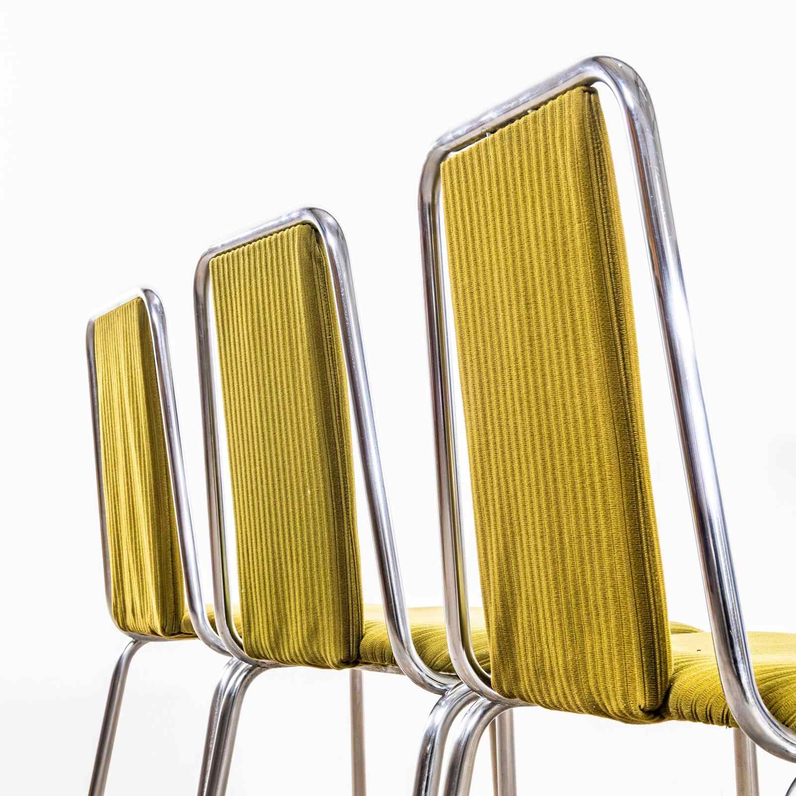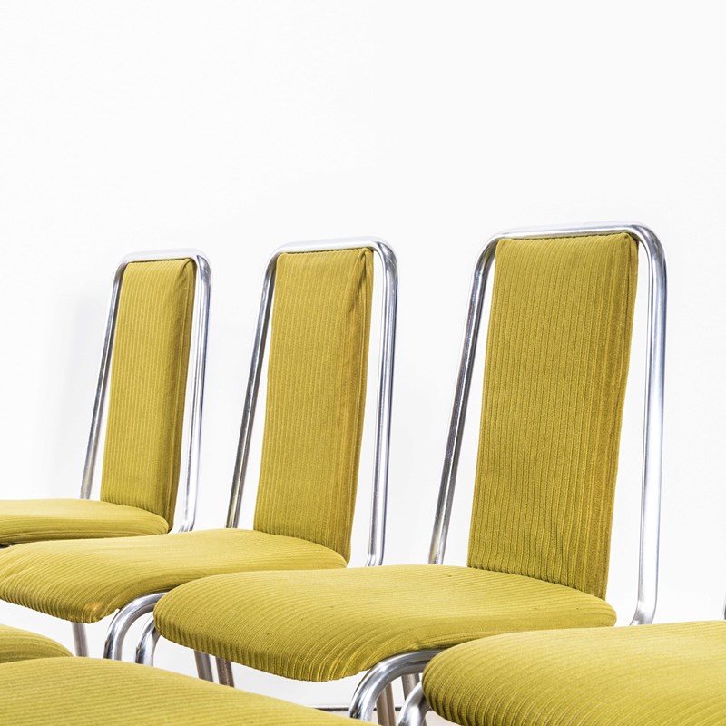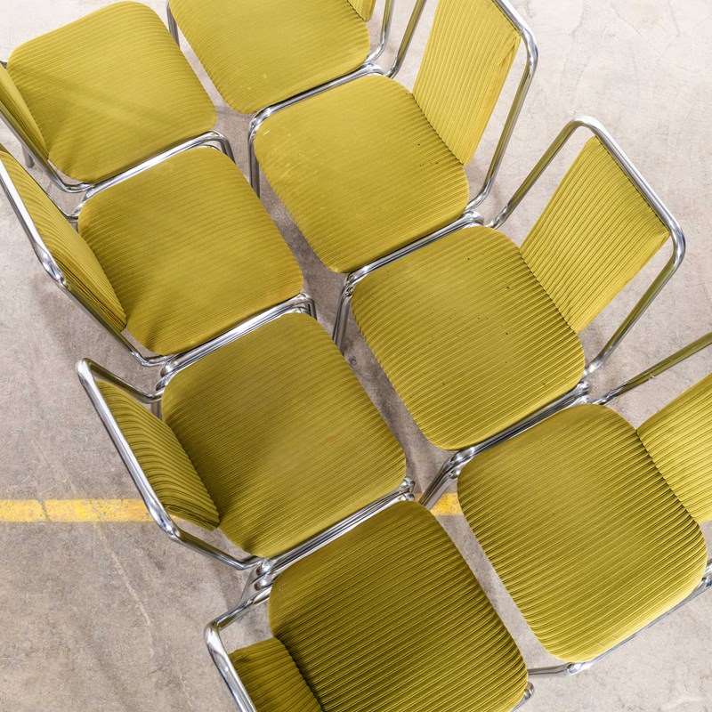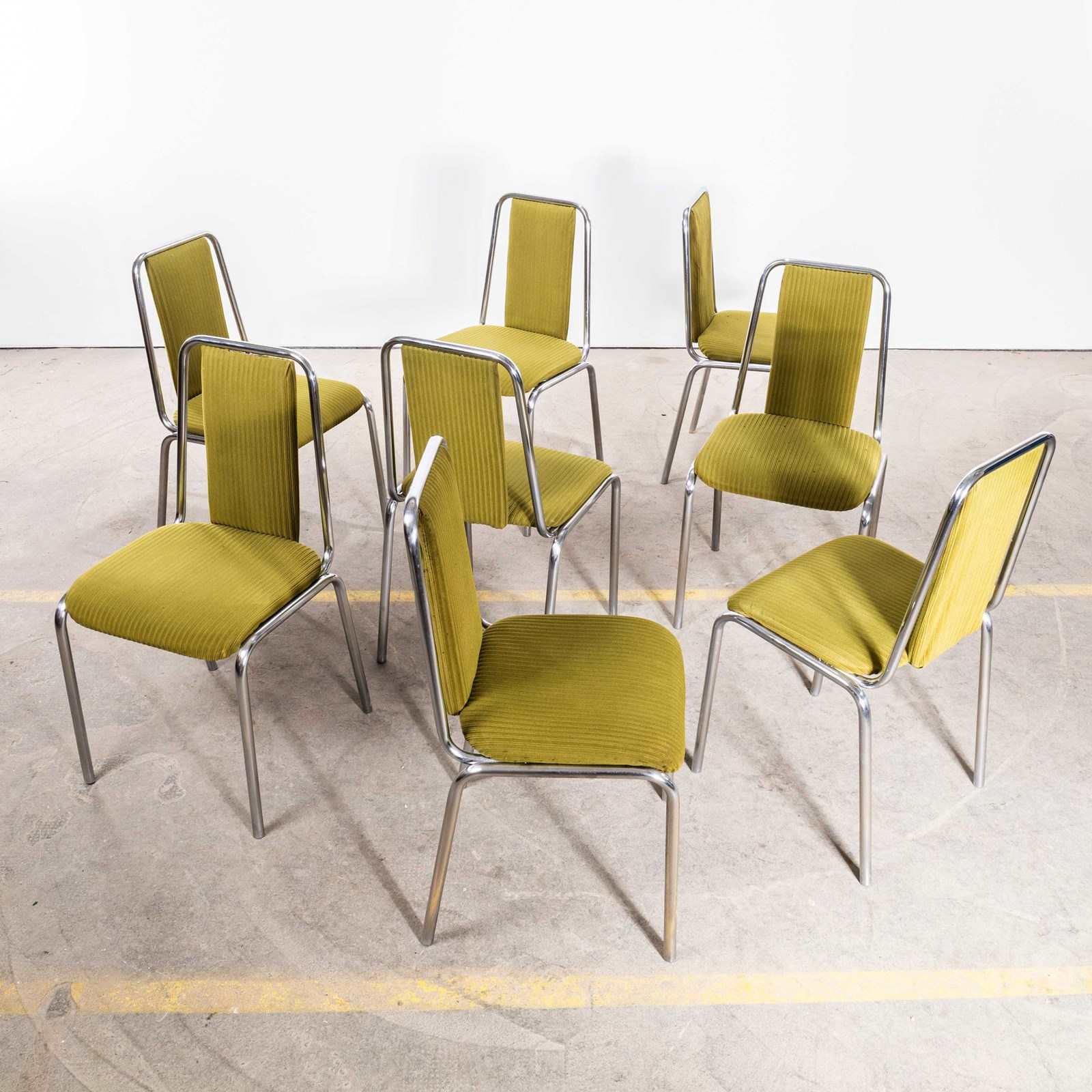 1980'S Olive Green Upholstered Chrome Framed Stacking Dining Chairs - Set Of Eig