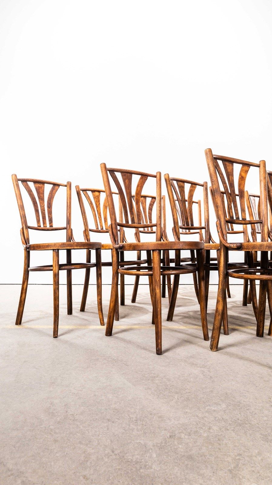 Good quality classic bentwood chairs with great colour and character in a mid oak shade. The chairs were made in Eastern Europe using solid steam bent beech. They are in excellent condition. Each chair is serviced individually in our own workshop.