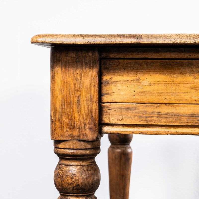Well proportioned characterful Welsh Victorian table with a rich golden colour and character. Beautifully made in solid chunky pine. The table is made with classic turned bobbin legs and good construction, the top has incredible grain and colour and is solid planked pine. Our workshop has serviced the table, it is strong and stable, waxed and ready to go.