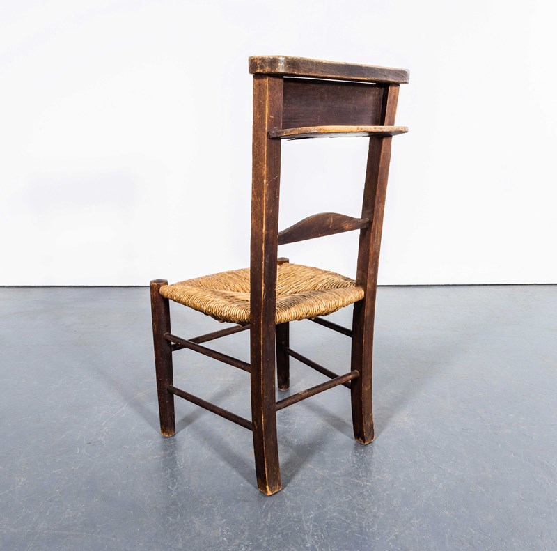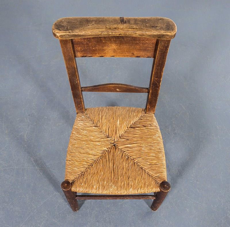 We came across this chair in our travels and we bought it simply because of our passion for simple church chairs. Very Shaker in style it simplicity is it's beauty, made of solid elm with the original hand woven rush seat. Please note the seat height is a low 38cm so it is more of a low side or bedroom chair. Seat Height: 38cm