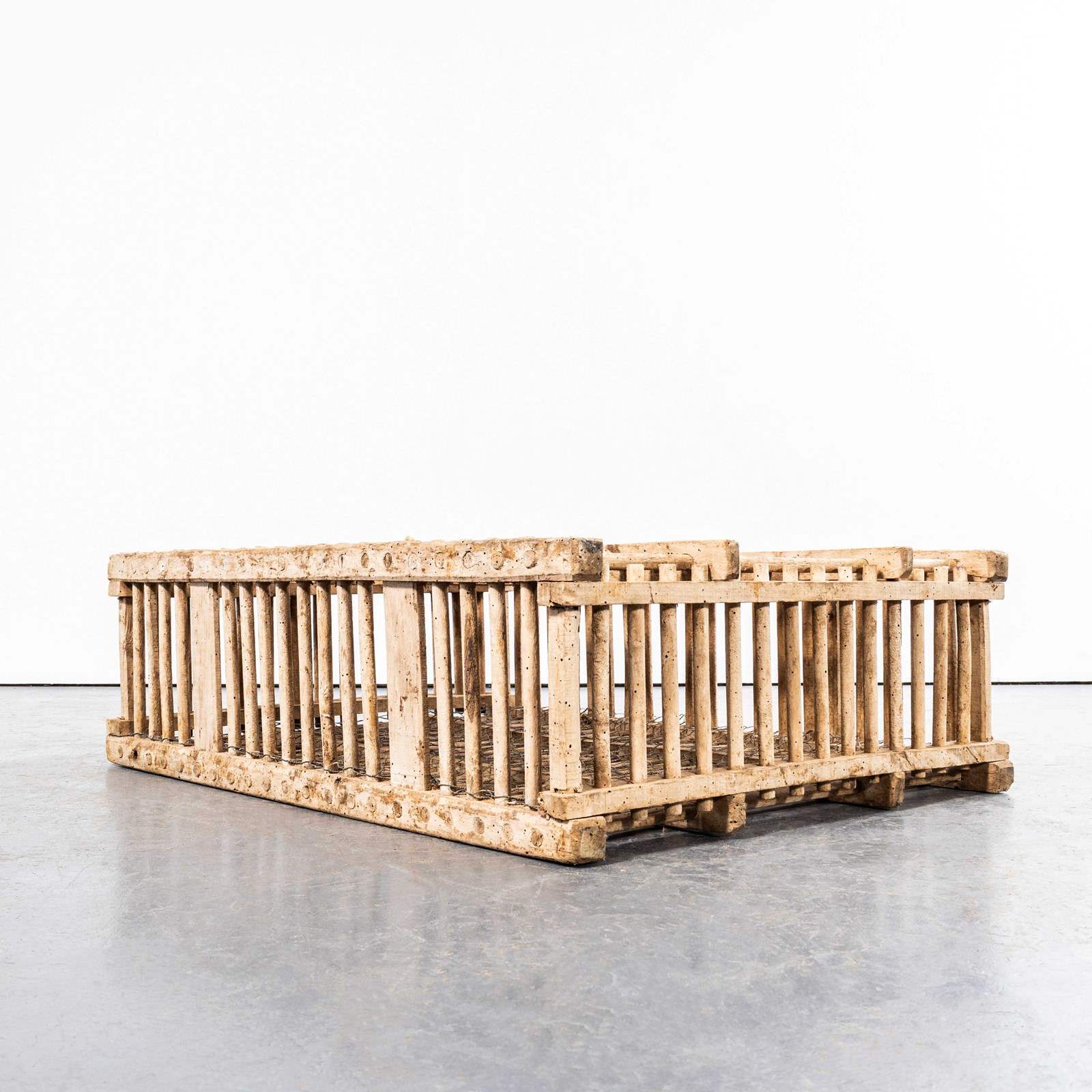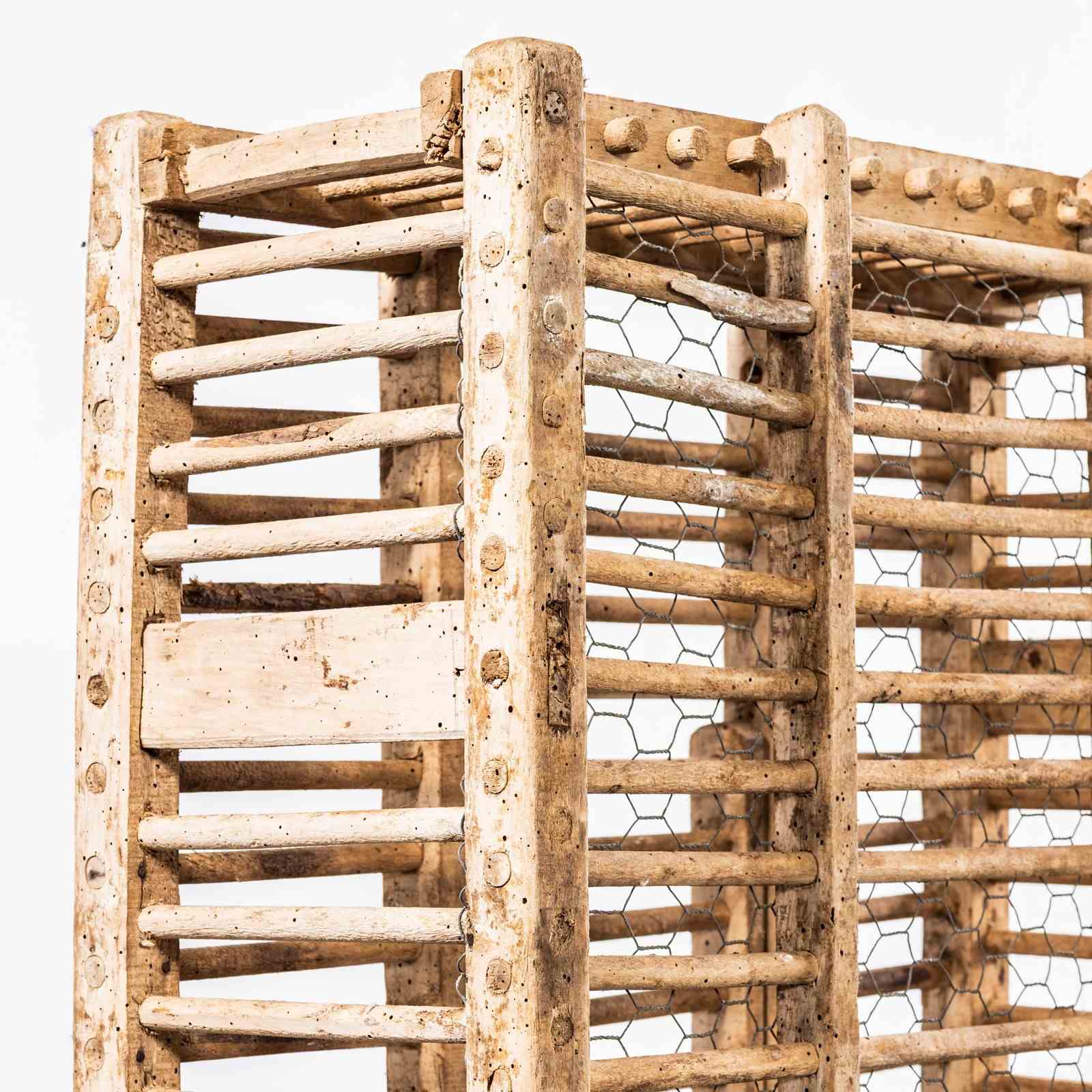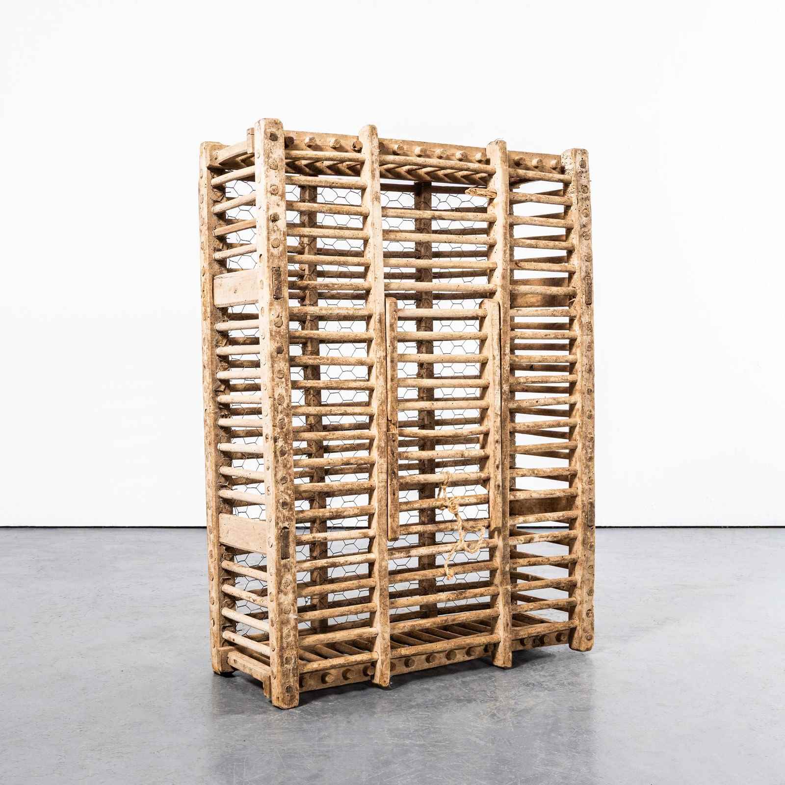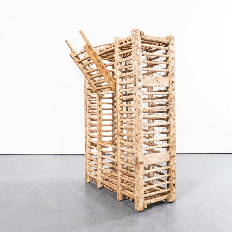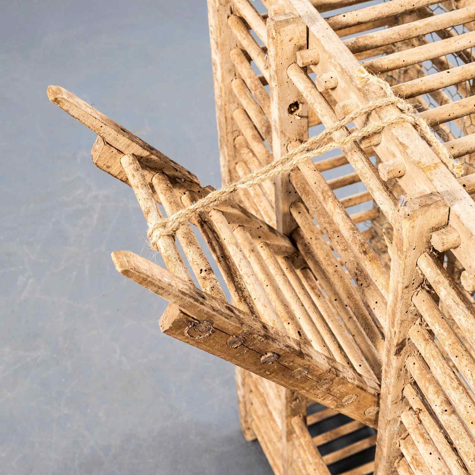 We stumbled across this on our travels in Wales, often confused for a trap of some sort it is in fact a ‘cage’ for transporting game. Hand made with crudely turned and whittled pine. An amazing sculptural piece in great faded sun bleached condition.