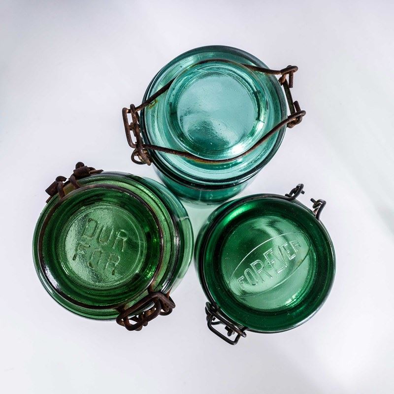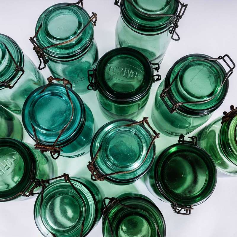 20Th Century French Solidex Green Preserving Glass Jars