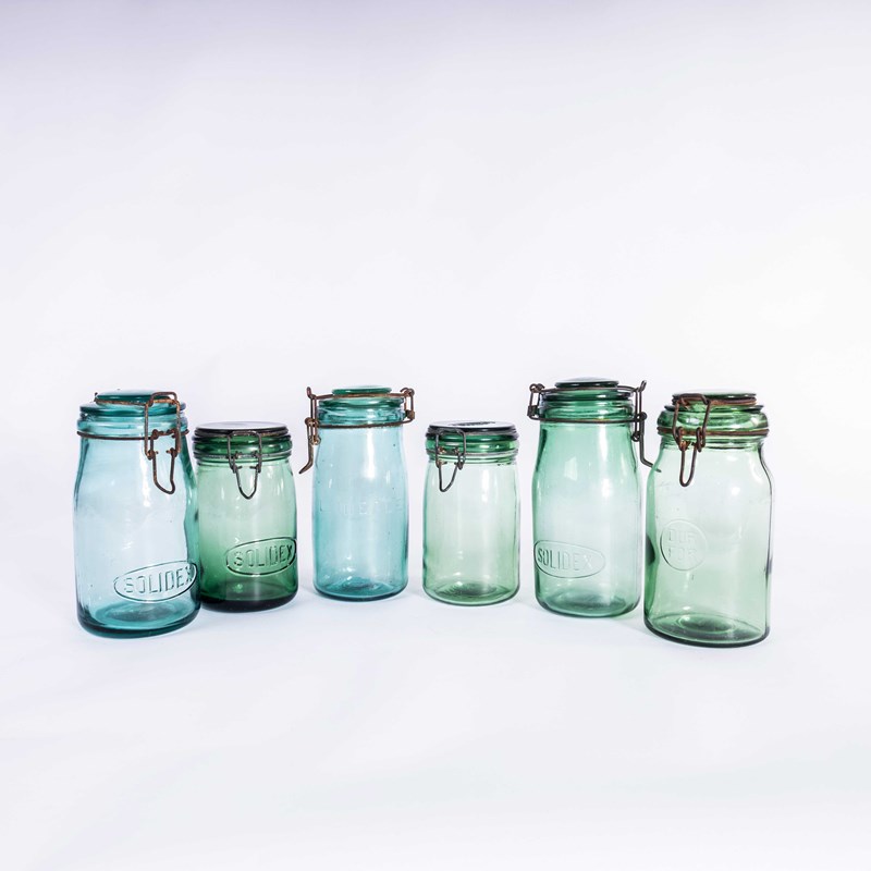 20th Century French Solidex Green Preserving Glass Jars.
