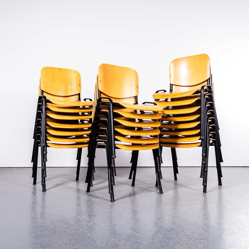 20th Century Heavy Italian University Stacking Chair – Small Batch Available.