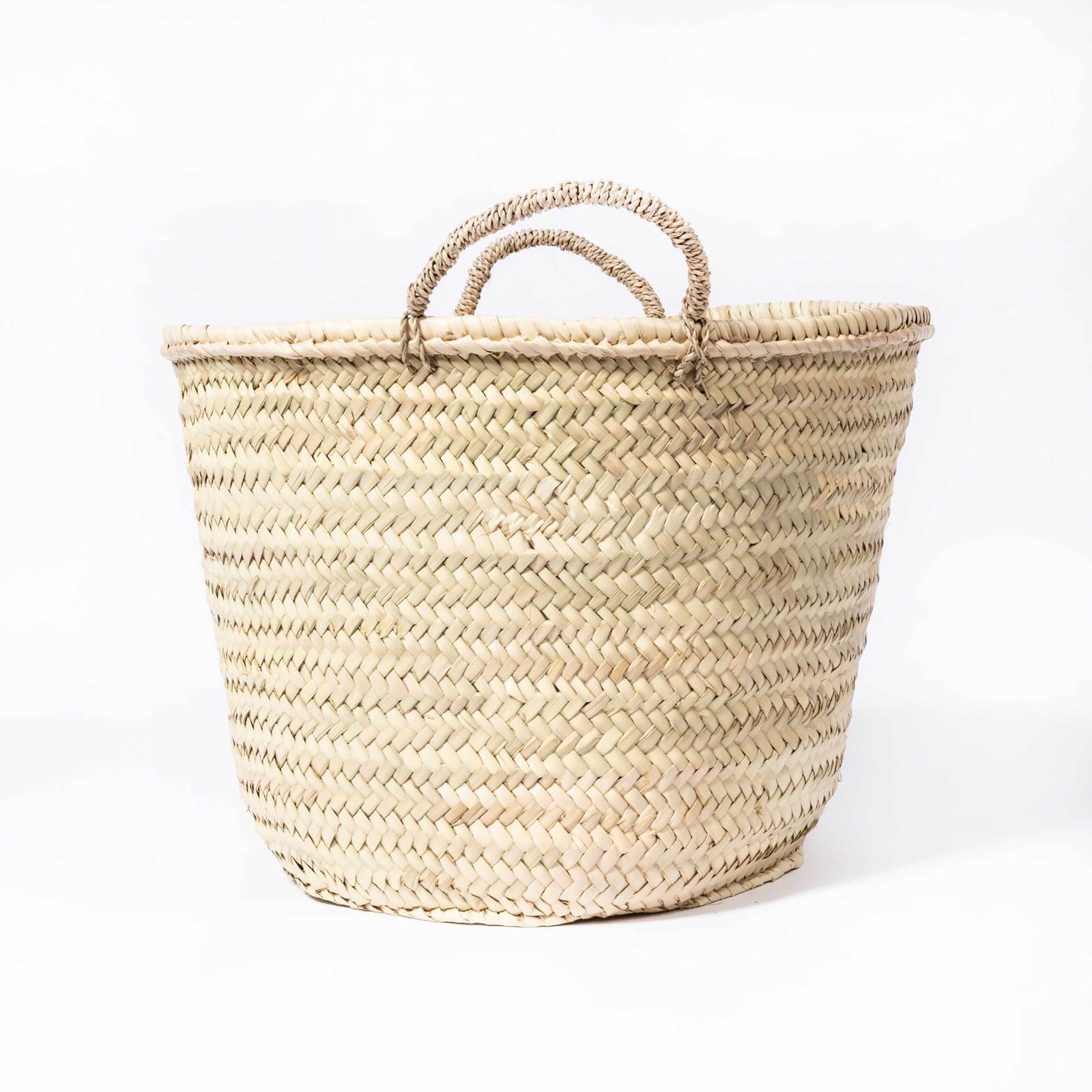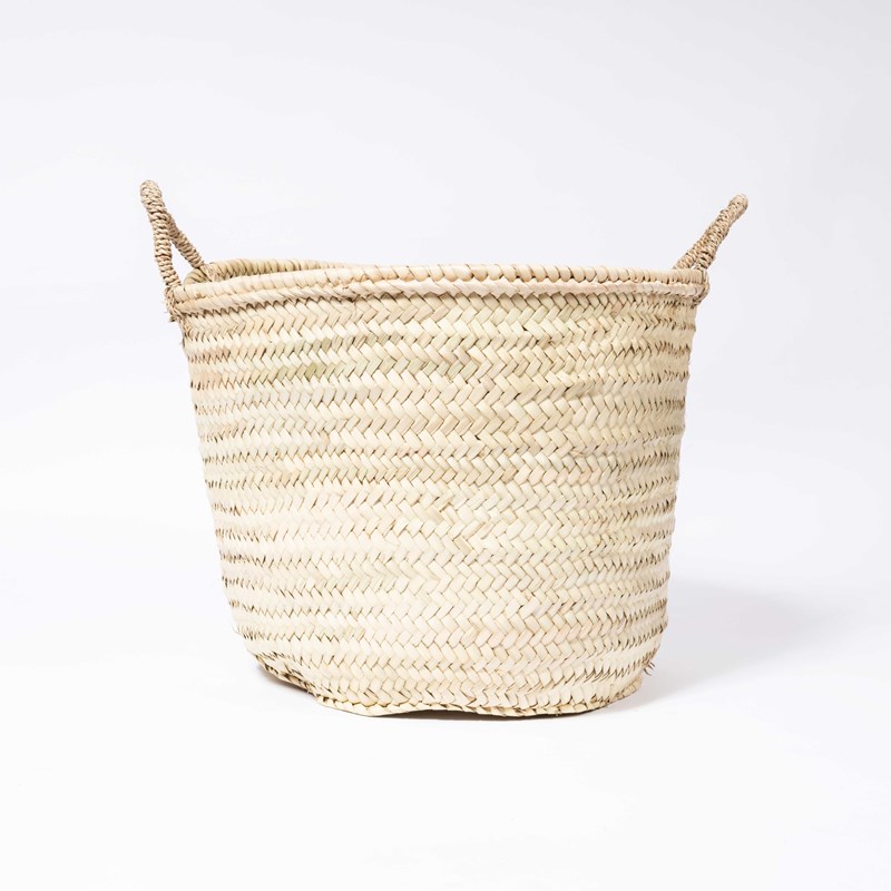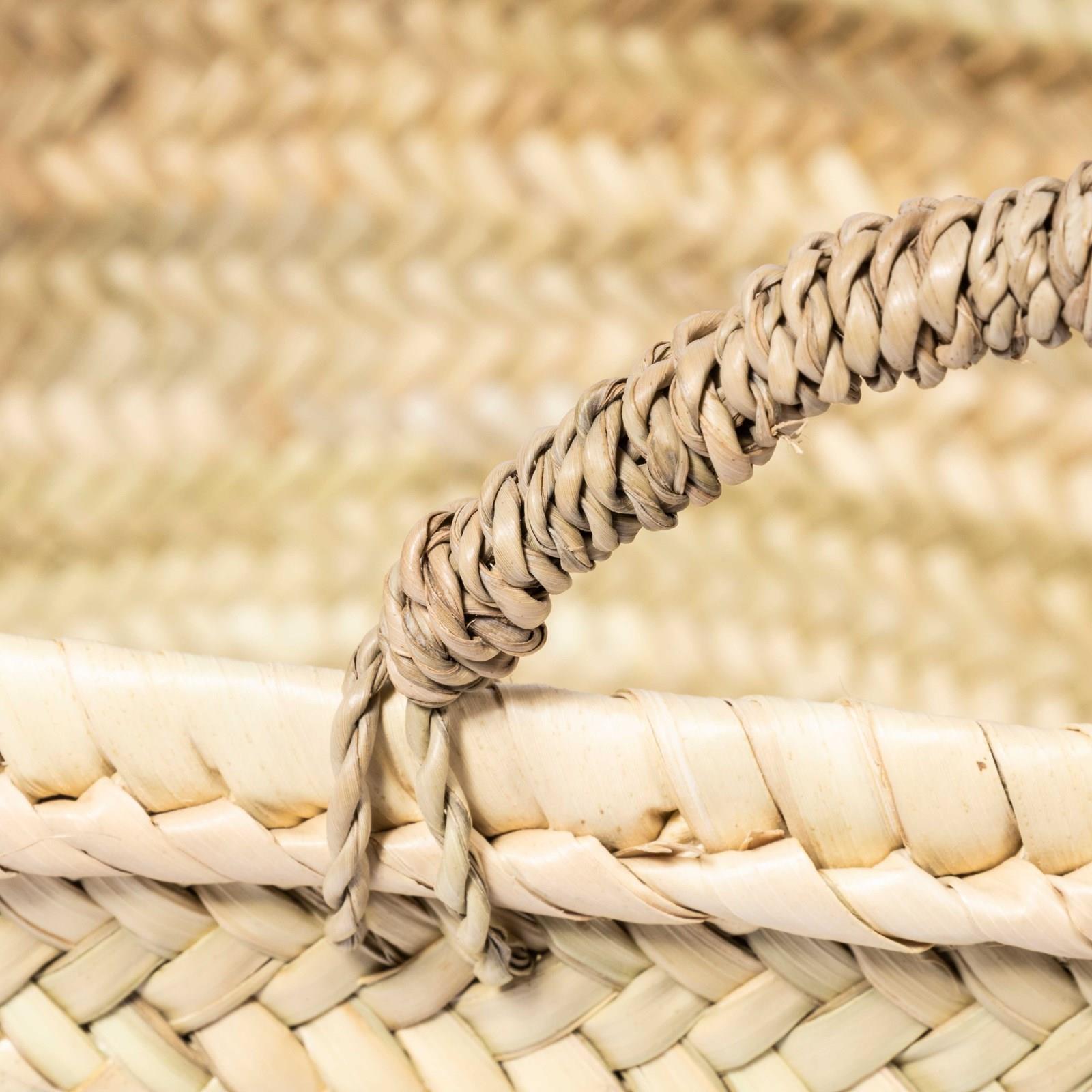 Woven for us on the western coast of Morocco using the distinct pale palm leaf tightly woven with simple handles.