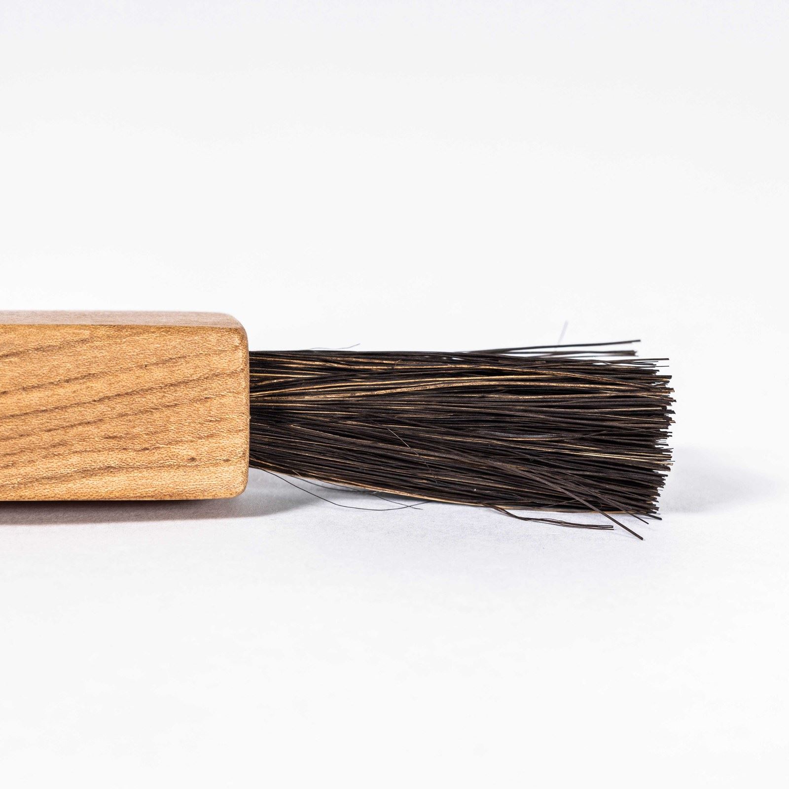 Contemporary brush made using locally sourced and foraged timbers, typically yew, spalted beech and monkey puzzle. Each brush is unique, for care we recommend cleaning with a slightly damp cloth as required and occasionally a very light application of a proprietary wood oil such as boiled linseed oil. Do not use chemicals, submerge brushes in water or clean the bristles. Small cracks may appear as wood is a natural product.