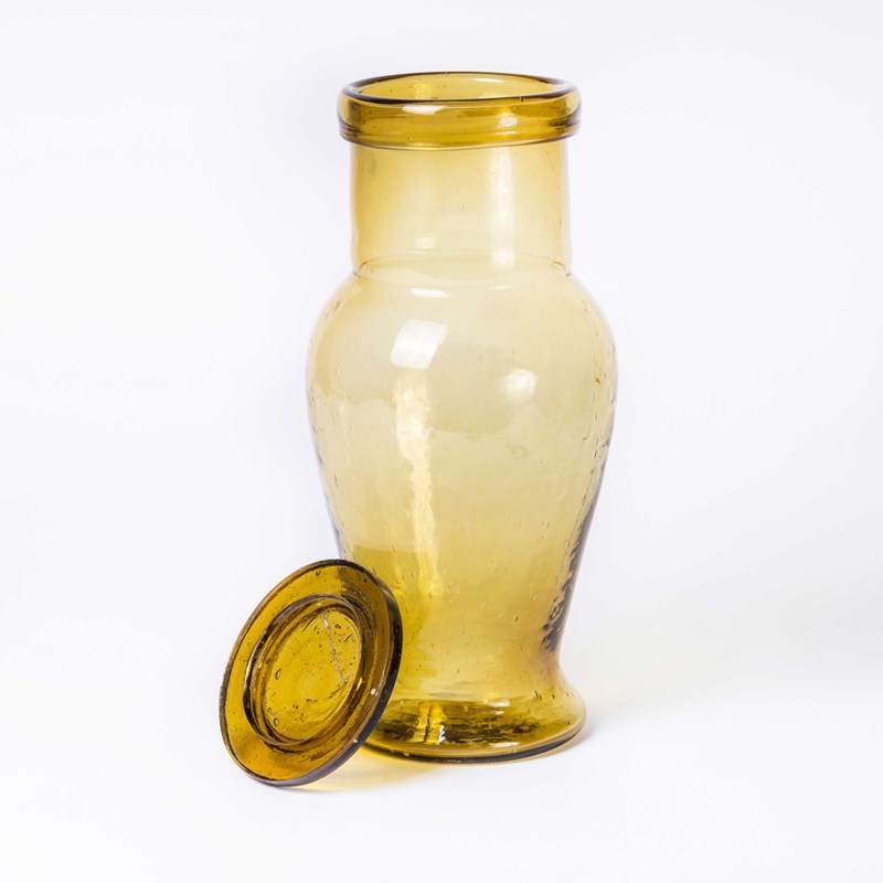 Contemporary Moroccan Mouth Blown Glass Jar - Amber