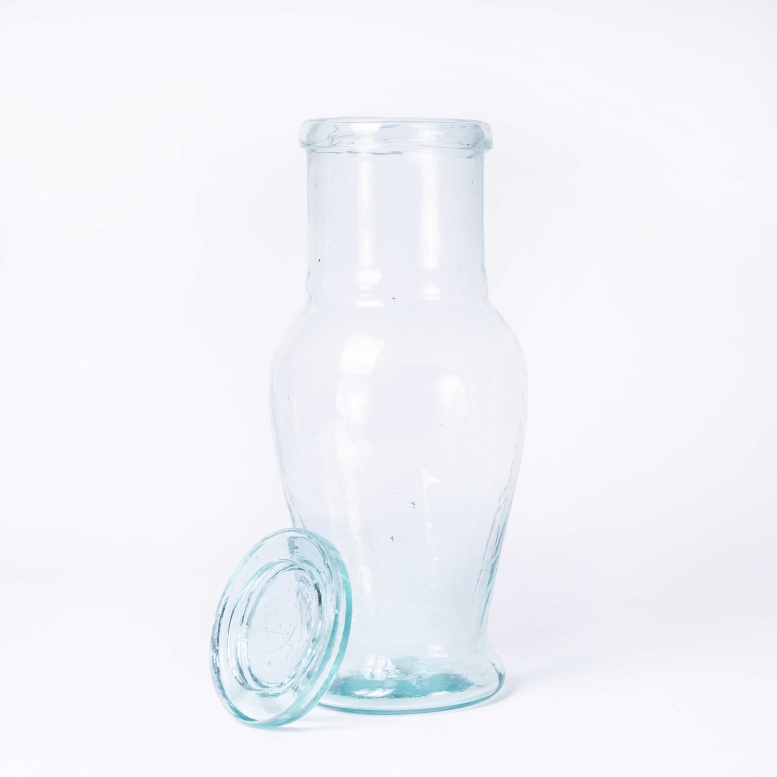 Contemporary Moroccan Mouth Blown Glass Jar - Clear. Hand-made in Morocco.