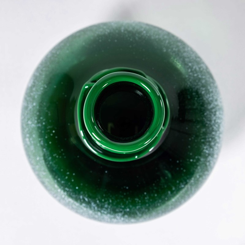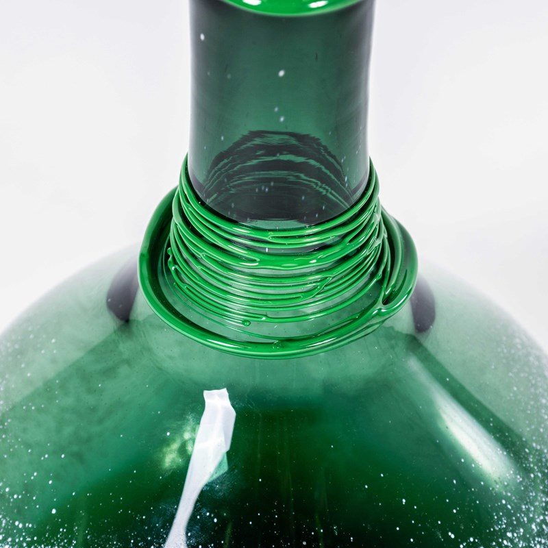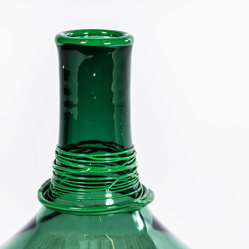 Contemporary Mouthblown Vessel Low Water - Jahday Ford. A recent graduate from the Manchester School Of Art specialising in hot blown glass and mould design. Jahday is driven to explore the material of glass and its behaviours with compatible materials in a digital world. Jahday was commissioned to create a contemporary take on the use of glass bottles as everyday vessels in the context of our Vintage Supermarket. The vessel is mouthblown using a combination of traditional glass blowing techniques creating a unique piece incorporating depth of blended glass colour, wrapped glass detail and dusted colour bringing a creative depth to a vessel used since time in memorial. There are additional inspirational images from our Vintage Supermarket, showing the contemporary maker and their works created for our event – these are additional images for inspiration, the listing is for the specific product only as described.