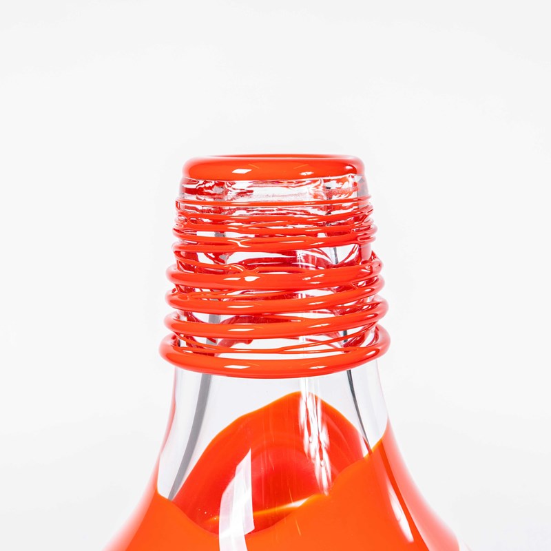 Contemporary product blown by hand by Jahday Ford. Many of the techniques used are fragile so we recommend the bottle is not immersed in water but gently dusted with a soft brush and slightly damp cloth as required.