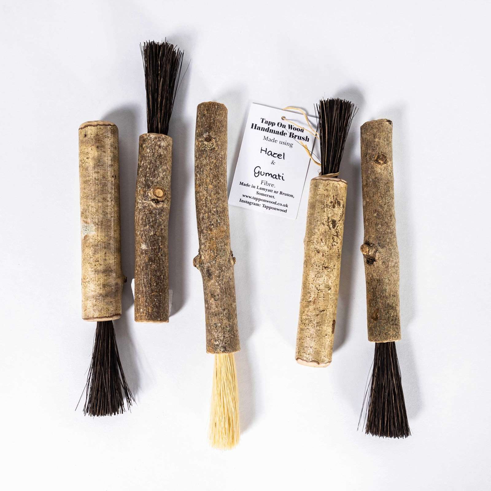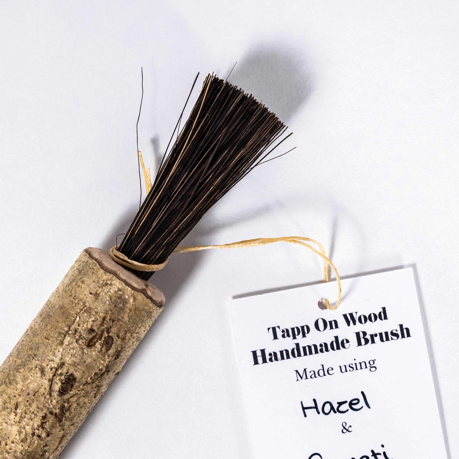 Contemporary brush made using locally sourced and foraged timbers, typically yew, spalted beech and monkey puzzle. Each brush is unique, for care we recommend cleaning with a slightly damp cloth as required and occasionally a very light application of a proprietary wood oil such as boiled linseed oil. Do not use chemicals, submerge brushes in water or clean the bristles. Small cracks may appear as wood is a natural product.