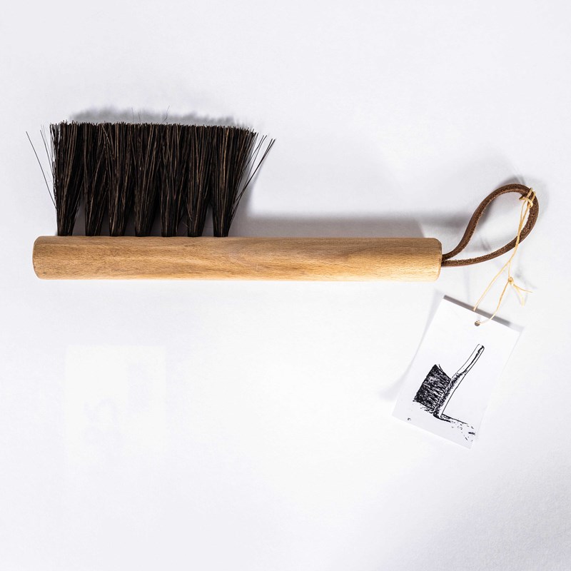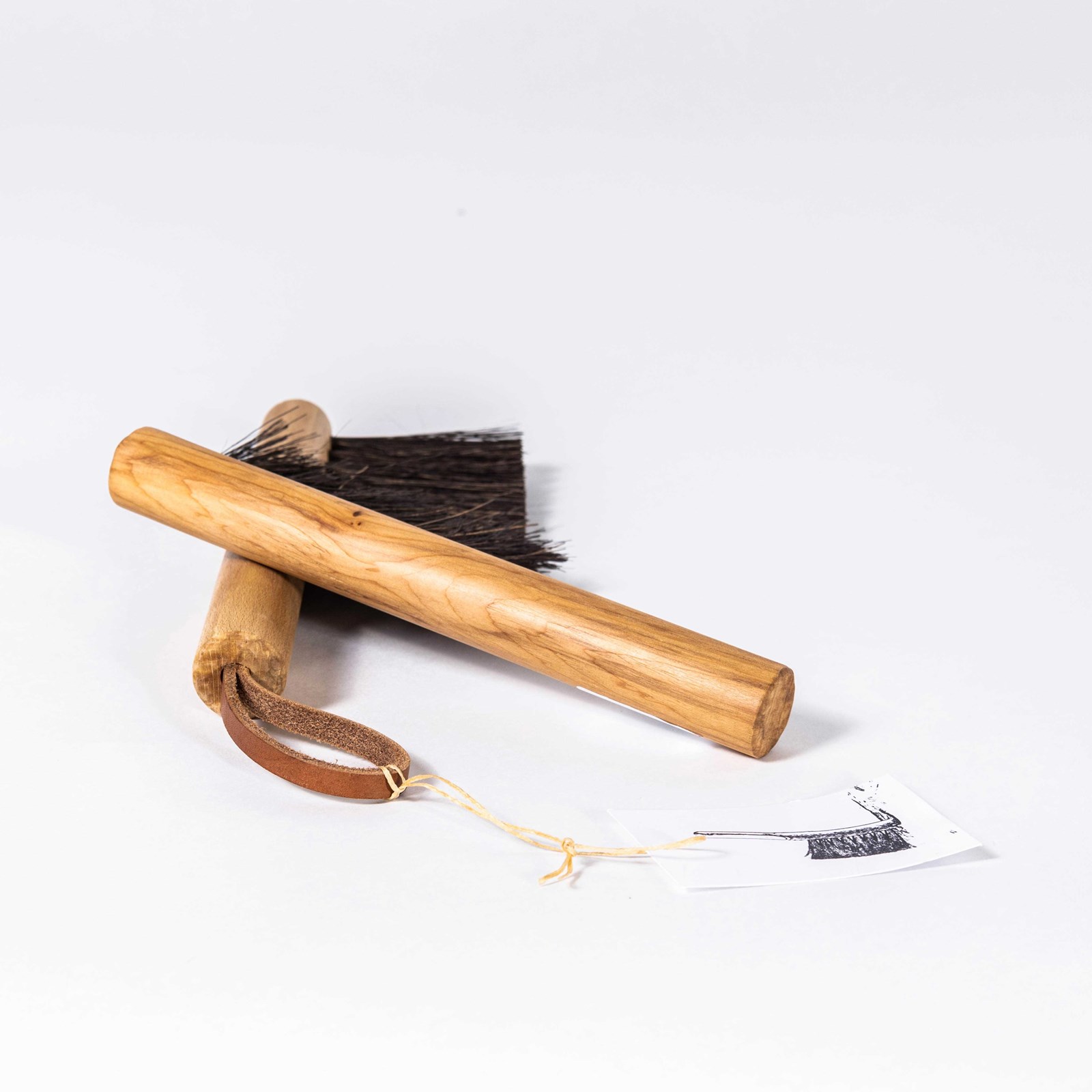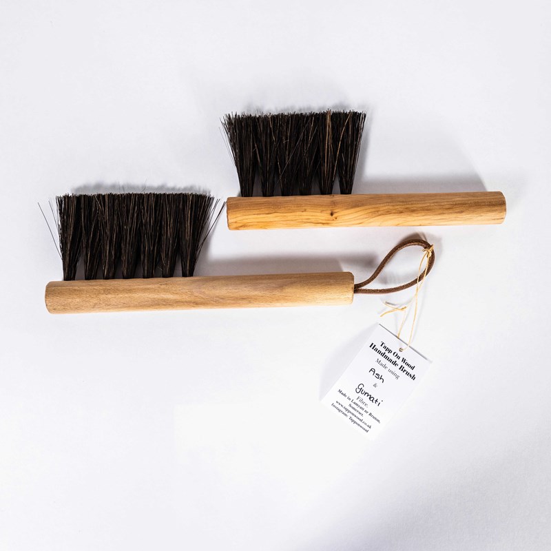 Contemporary brush made using locally sourced and foraged timbers, typically yew, spalted beech and monkey puzzle. Each brush is unique, for care we recommend cleaning with a slightly damp cloth as required and occasionally a very light application of a proprietary wood oil such as boiled linseed oil. Do not use chemicals, submerge brushes in water or clean the bristles. Small cracks may appear as wood is a natural product.