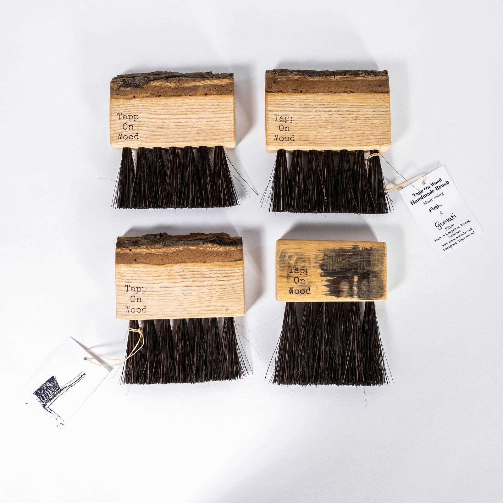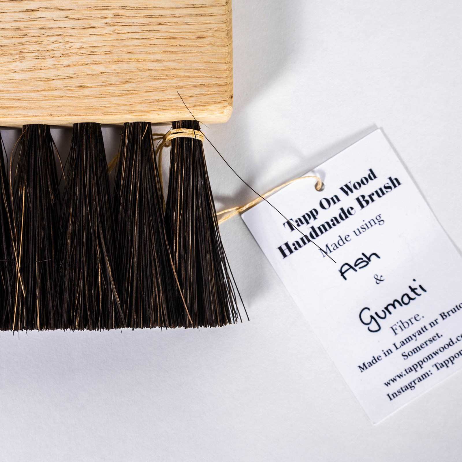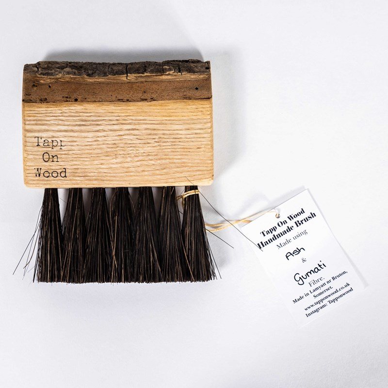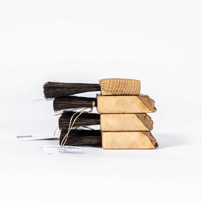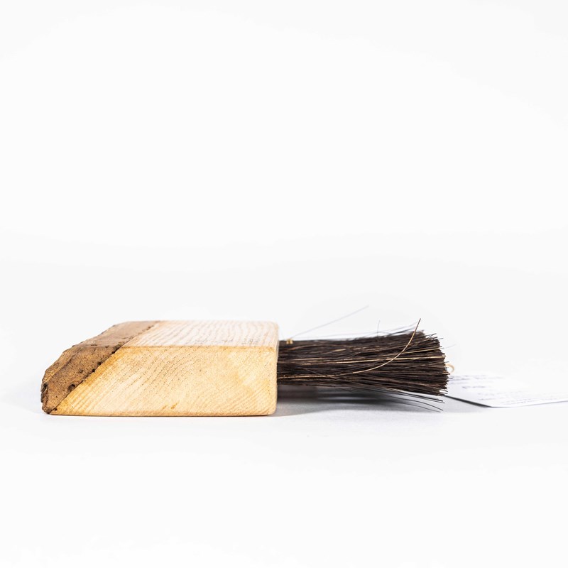 Contemporary brush made using locally sourced and foraged timbers, typically yew, spalted beech and monkey puzzle. Each brush is unique, for care we recommend cleaning with a slightly damp cloth as required and occasionally a very light application of a proprietary wood oil such as boiled linseed oil. Do not use chemicals, submerge brushes in water or clean the bristles. Small cracks may appear as wood is a natural product.