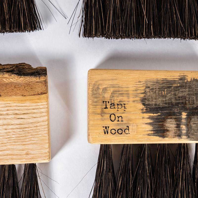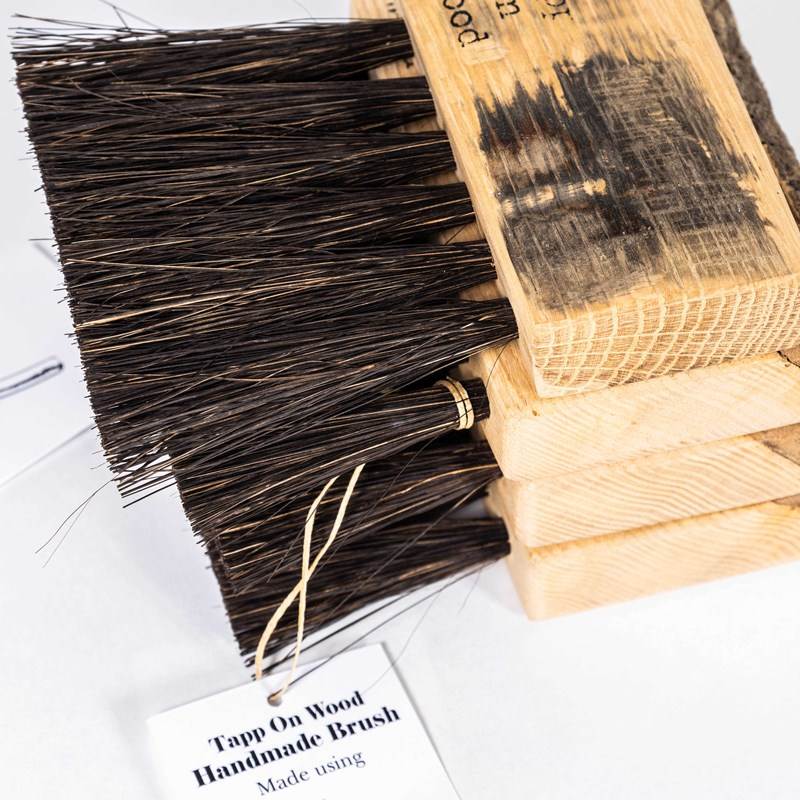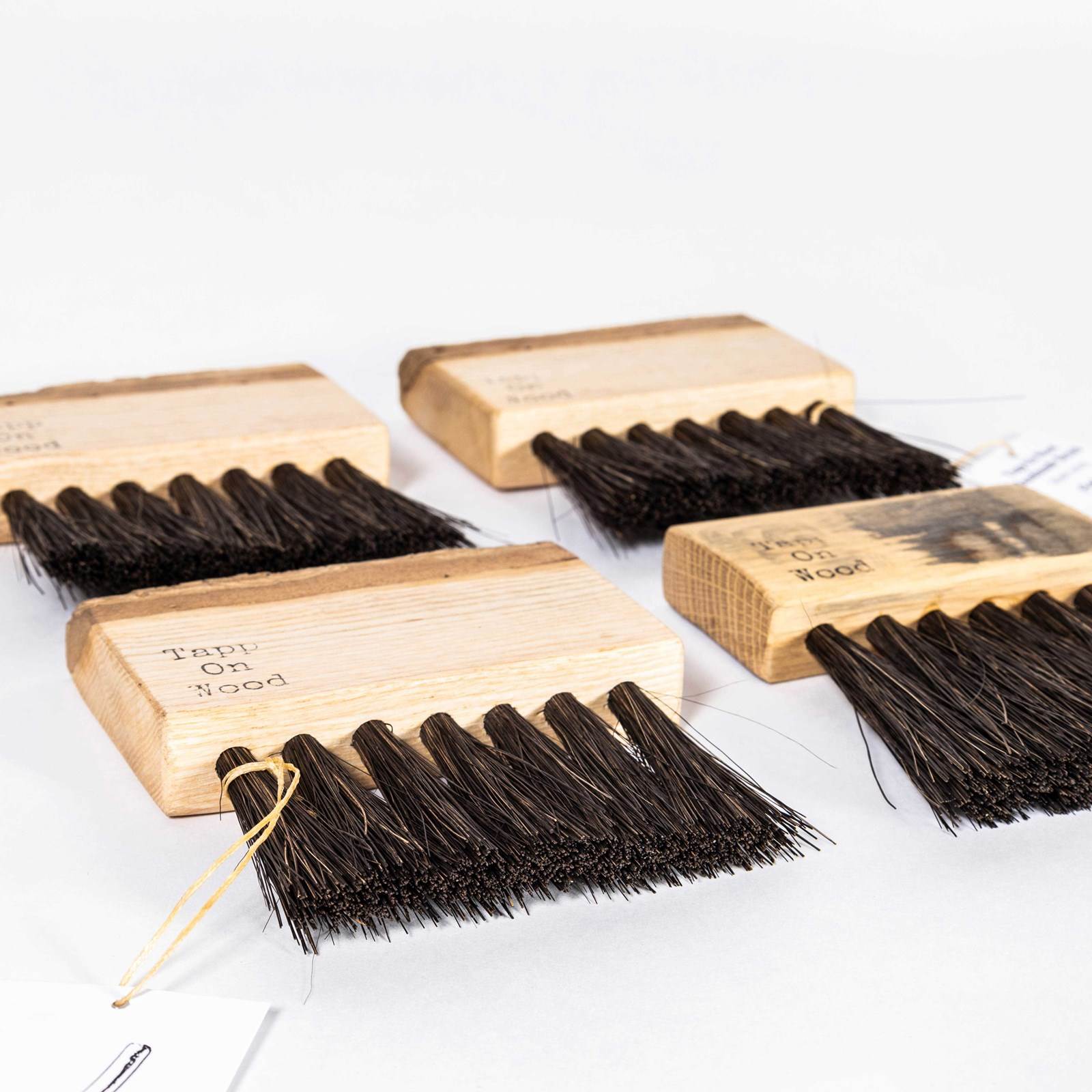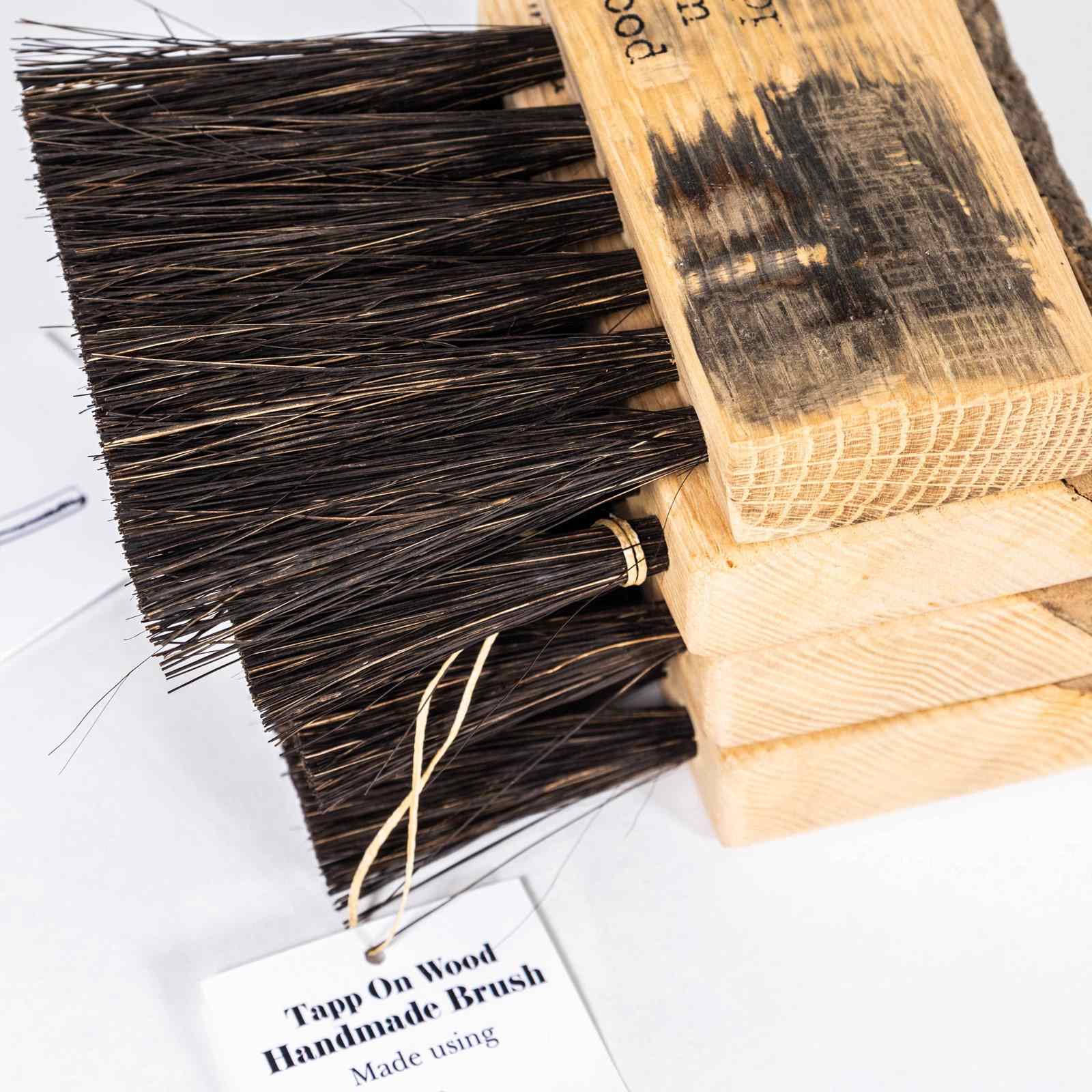 Contemporary brush made using locally sourced and foraged timbers, typically yew, spalted beech and monkey puzzle. Each brush is unique, for care we recommend cleaning with a slightly damp cloth as required and occasionally a very light application of a proprietary wood oil such as boiled linseed oil. Do not use chemicals, submerge brushes in water or clean the bristles. Small cracks may appear as wood is a natural product.