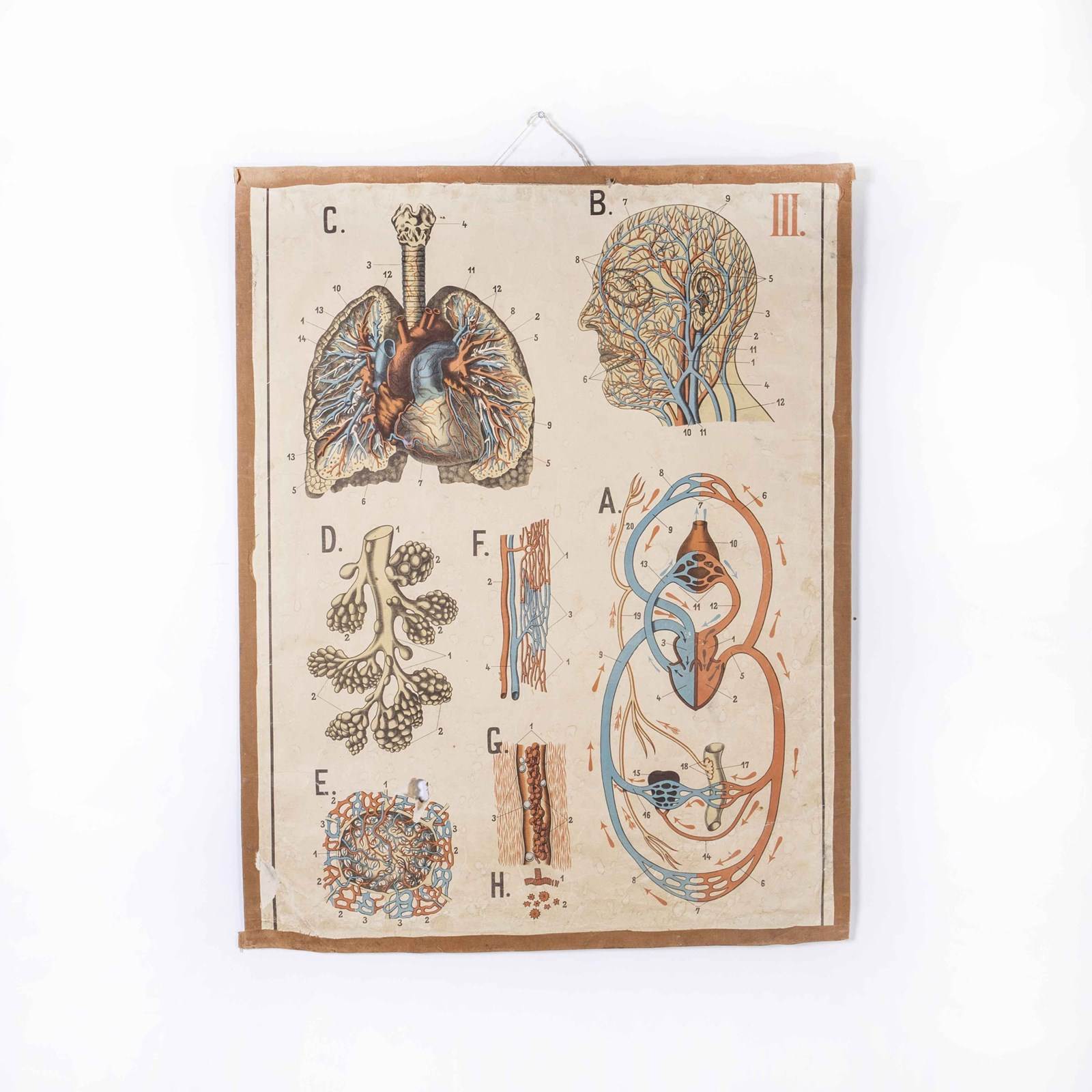 Early 20th Century Human Anatomy Educational Poster. Early 20th century Czechoslovakian educational chart. A rare and vintage wall chart from the Czech Republic illustrating the internal anatomy of a human. This heavyweight paper poster is in excellent condition for its age with the print still reflecting life like colours. These beautiful illustrative charts were widely used in schools and universities before the development of screens and projectors.