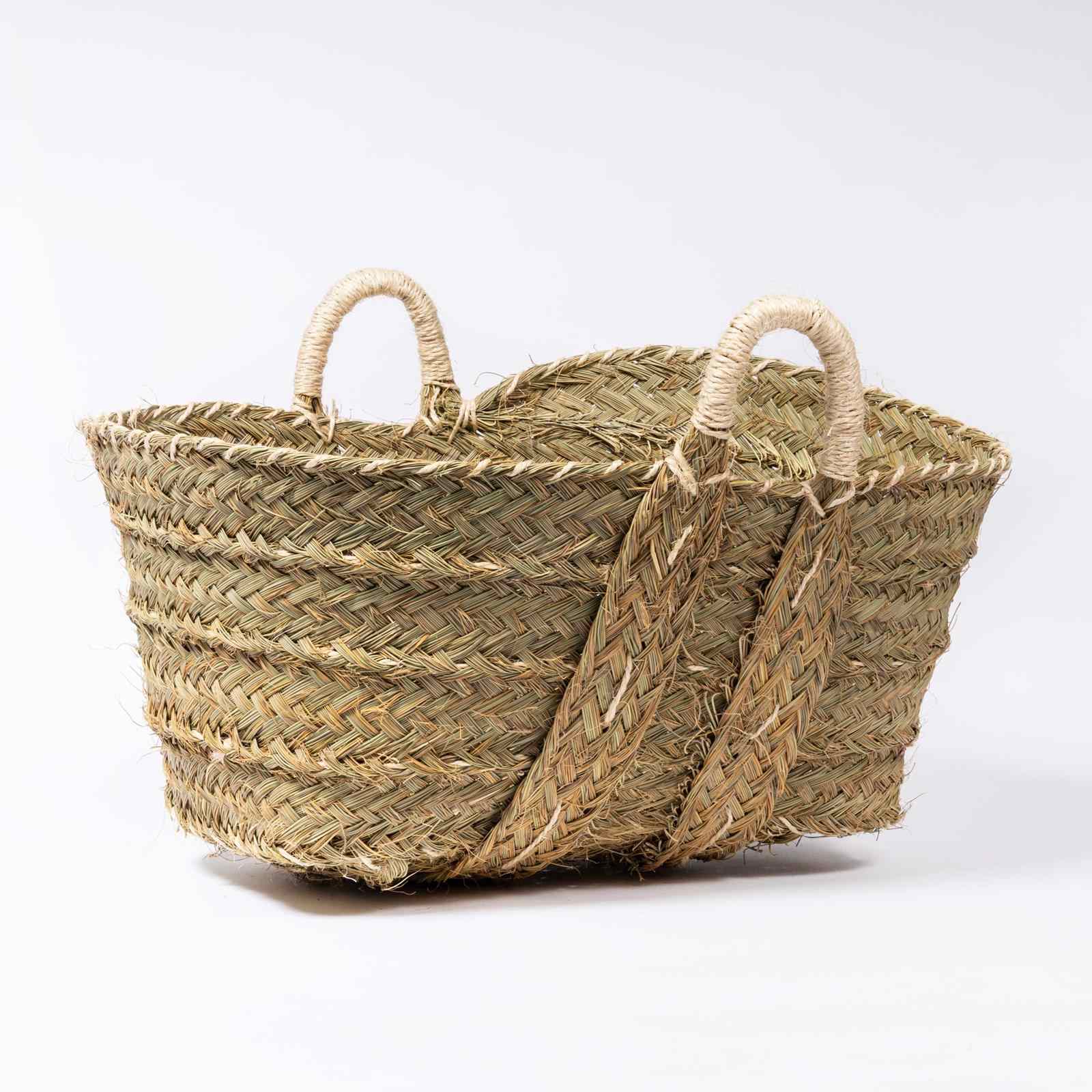 Large Low Carry Basket - Esparto Grass. Woven for us on the western coast of Morocco using the distinct coarse vegetable grass Esparto.