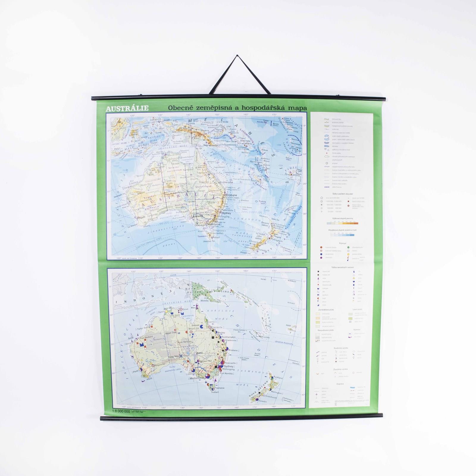 Late 20Th Century Educational Geographic Map - Australia Topography And Economy