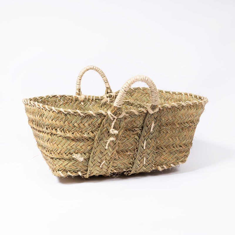 Medium Low Carry Basket - Esparto Grass. Woven for us on the western coast of Morocco using the distinct coarse vegetable grass Esparto.