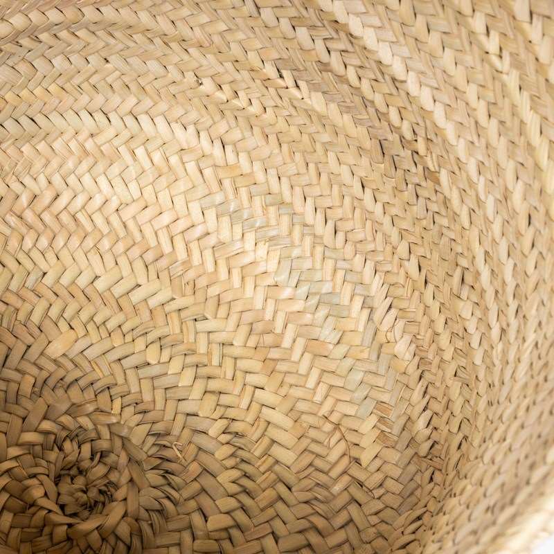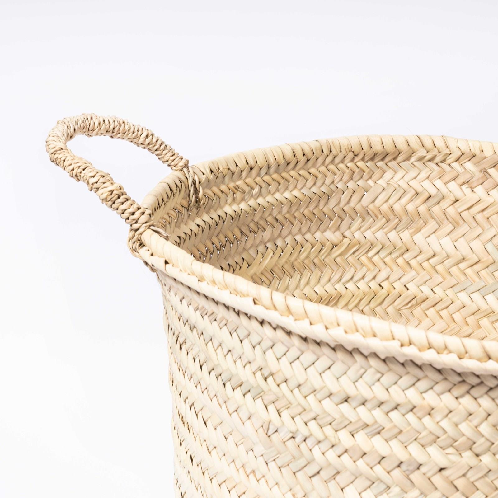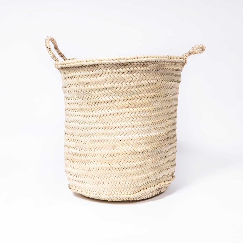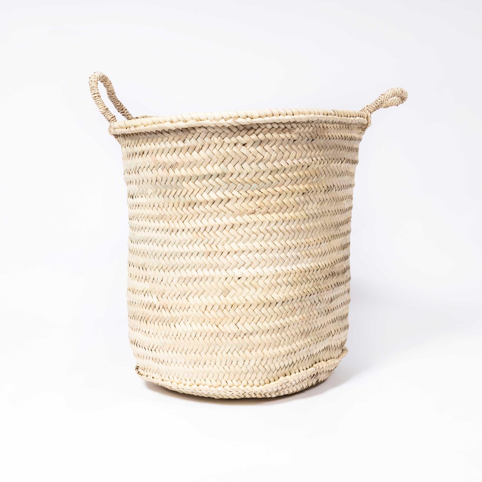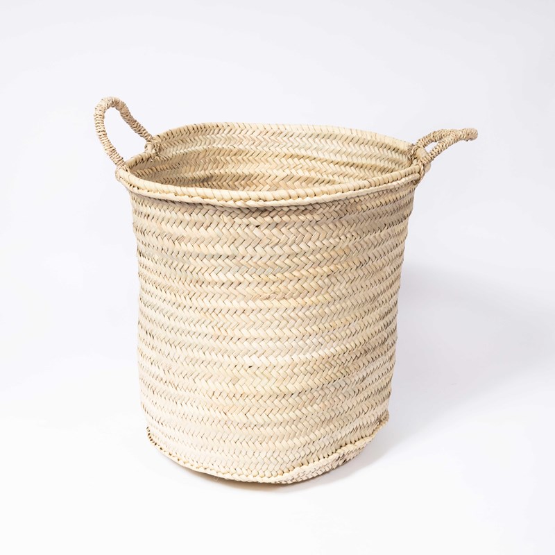 Tall Palm Leaf Basket. Woven for us on the western coast of Morocco using the distinct pale palm leaf tightly woven with simple handles.