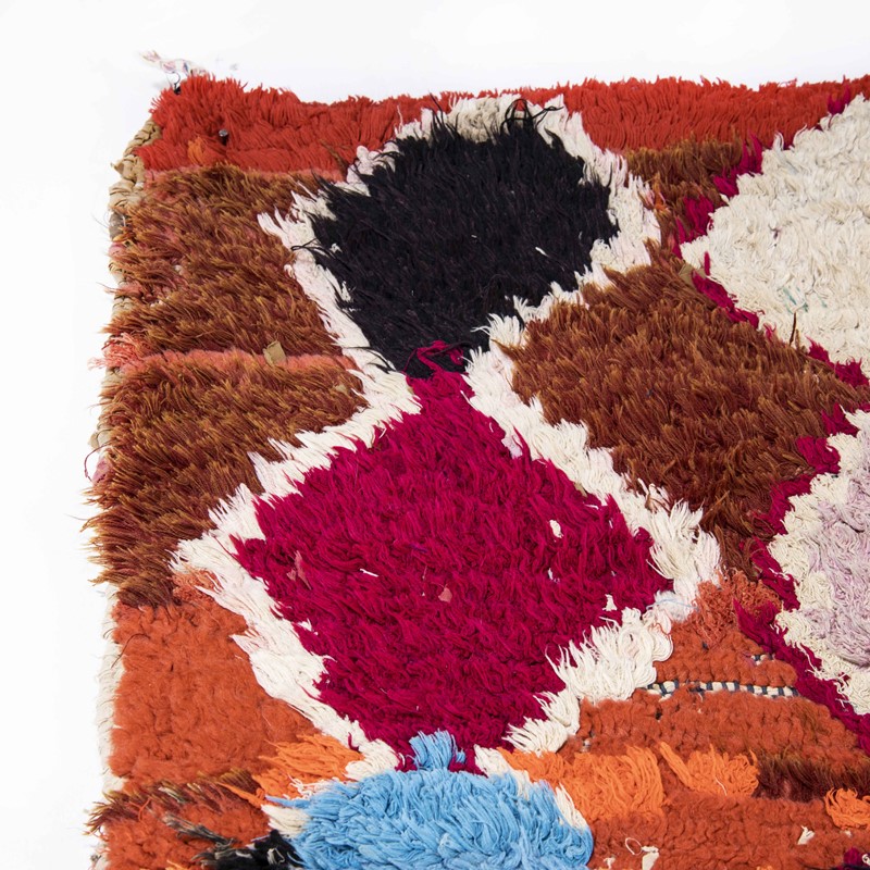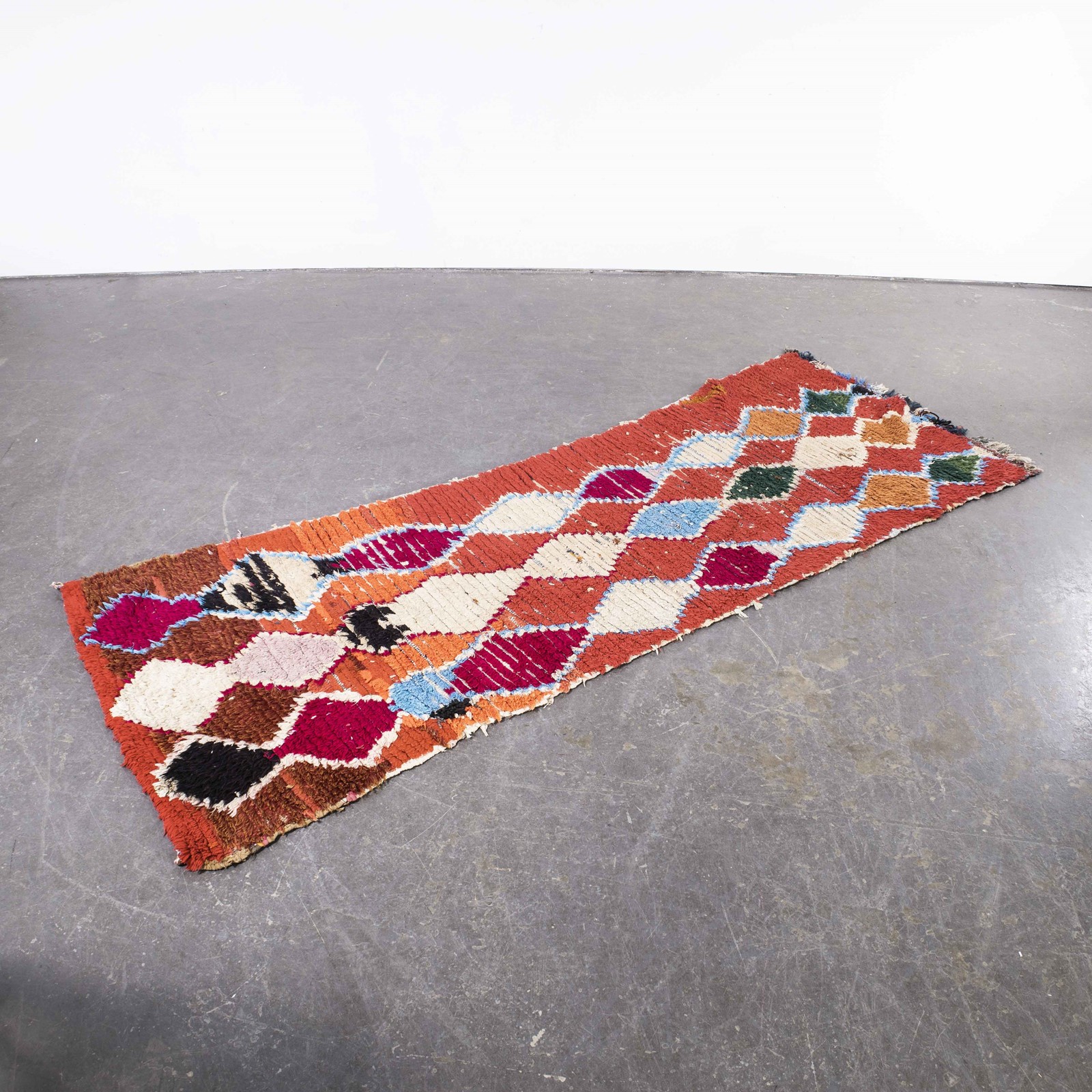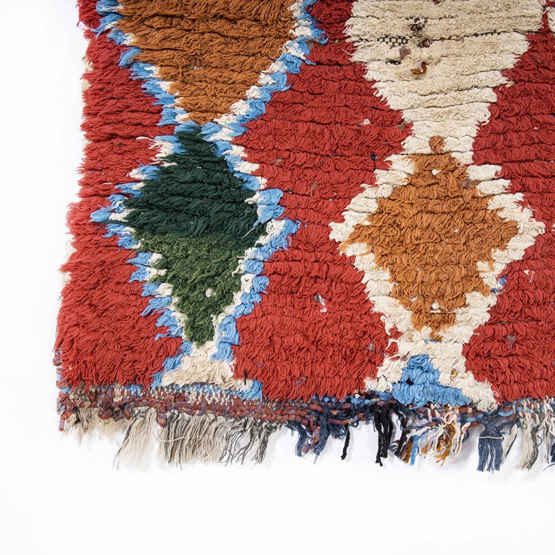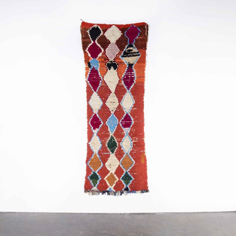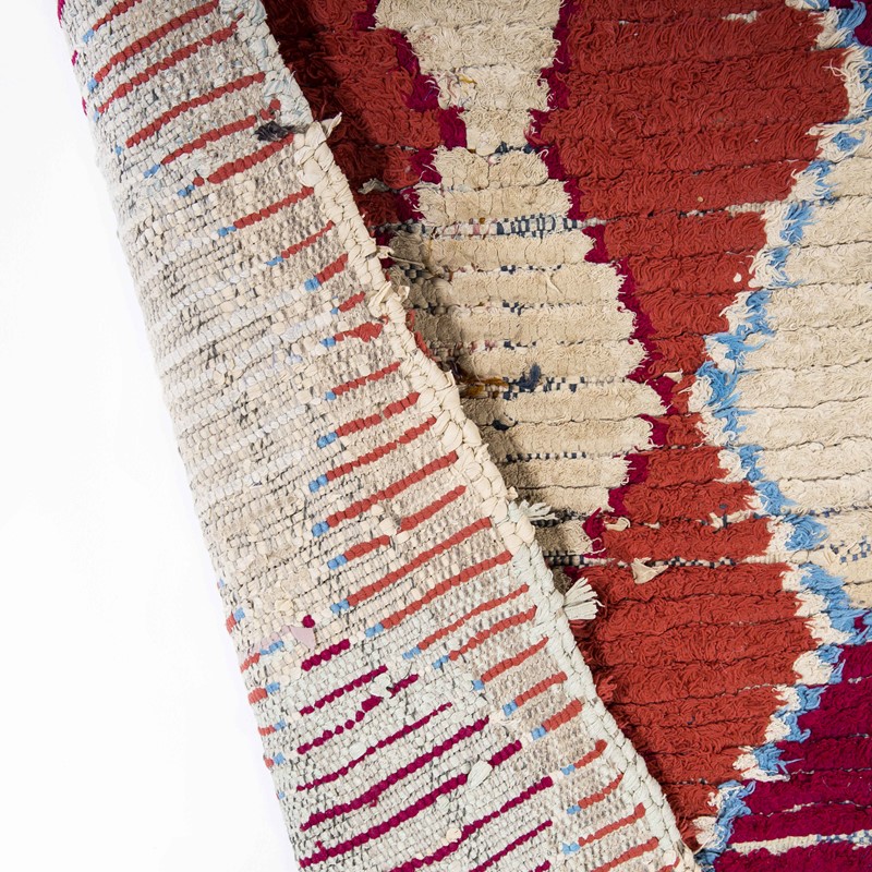 Vintage Berber Bold Reds Boucherouite Rug Vintage Berber Bold Reds Boucherouite Rug. Essentially the Berber version of a rag rug, made using old fabric (often from clothing) that is hand knotted and often quite heavy and crude. Typically these are smaller in size. 100% Cotton, Circa 1970’s. Berbers or Imazighen are an indigenous ethnic group from the Maghreb region of North Africa, specifically Morocco, Algeria, Tunisia, and Libya. Historically, Berber nations have spoken Berber languages. Most Berbers were in fact traditionally farmers, living a relatively nomadic existence in the mountains relatively close to the Mediterranean coast. WORKSHOP REPORT Our workshop team inspect every product and carry out any needed repairs to ensure that everything leaves us serviced and maintained ready for many more years of life. All of our vintage products show the rich beauty and history of their life with the knocks and bumps of many years of use and we try to minimise restoration to keep every piece as original as possible.
