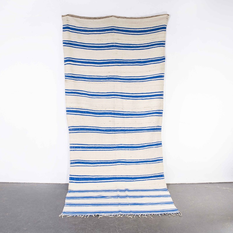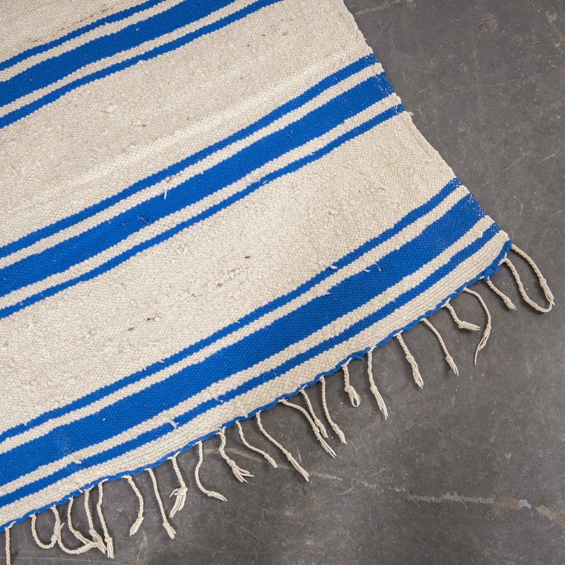 These are flat-woven rugs (Hanbel in Arabic) which are light in weight due to the lack of pile. They are often used on floors in hotter countries as they are easy to just shake outside if dusty or sandy. In cooler climates, they are suited to wooden floors as a decorative item, as bedcovers or blankets , or even wall hangings. Often they feature strong designs and patterns and may incorporate some low pile, knotted elements and hand embroidery. Berbers or Imazighen are an indigenous ethnic group from the Maghreb region of North Africa, specifically Morocco, Algeria, Tunisia, and Libya. Historically, Berber nations have spoken Berber languages. Most Berbers were in fact traditionally farmers, living a relatively nomadic existence in the mountains relatively close to the Mediterranean coast. 100% Wool, Circa 1970’s. WORKSHOP REPORT Our workshop team inspect every product and carry out any needed repairs to ensure that everything leaves us serviced and maintained ready for many more years of life. All of our vintage products show the rich beauty and history of their life with the knocks and bumps of many years of use and we try to minimise restoration to keep every piece as original as possible.